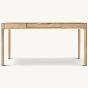 Drawer fronts and back of desk feature solid American white oak reeding