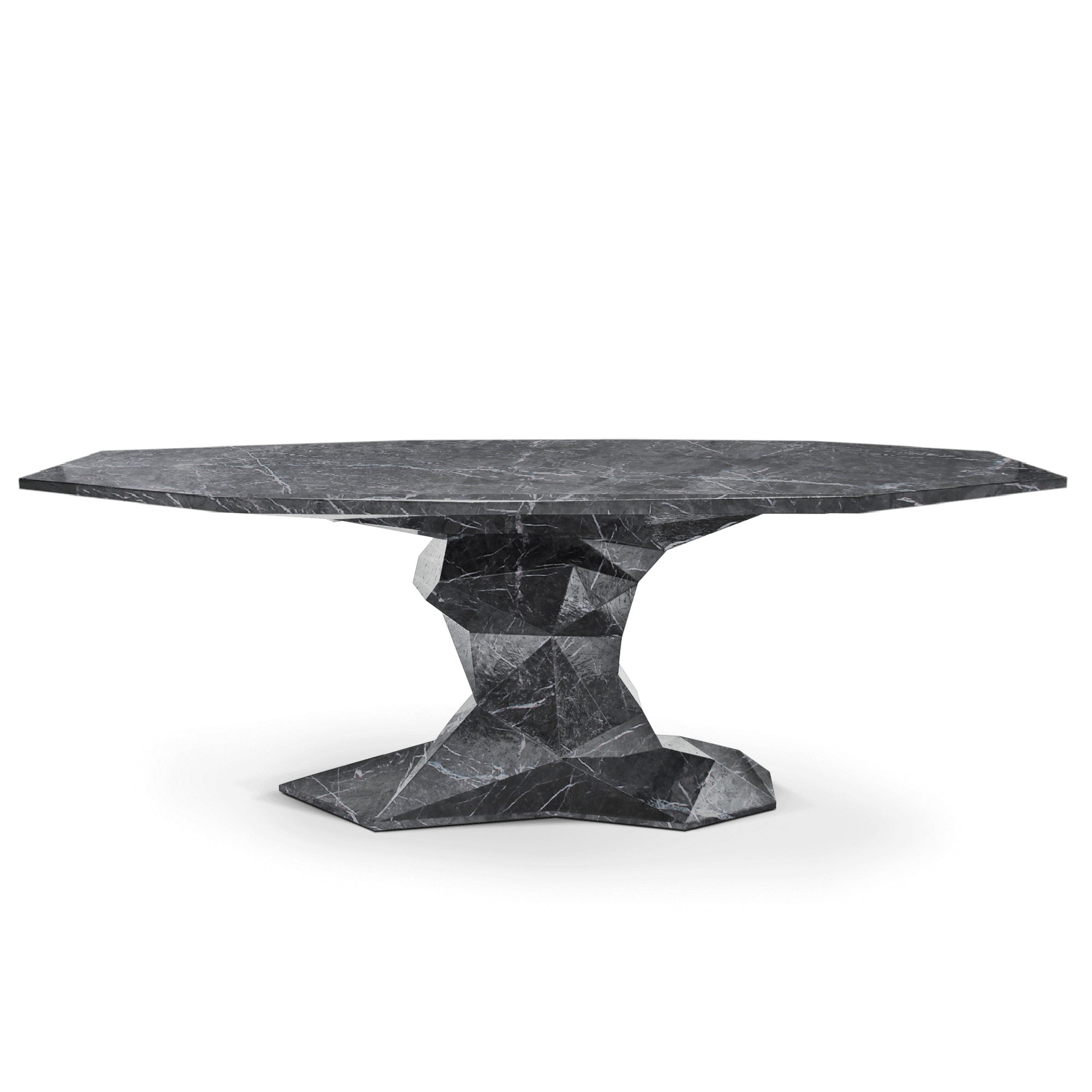 Table produced in fiberglass filled with expandable polyurethane. handpainted faux-marble, with an irregular surface finish and a unique faceted form.