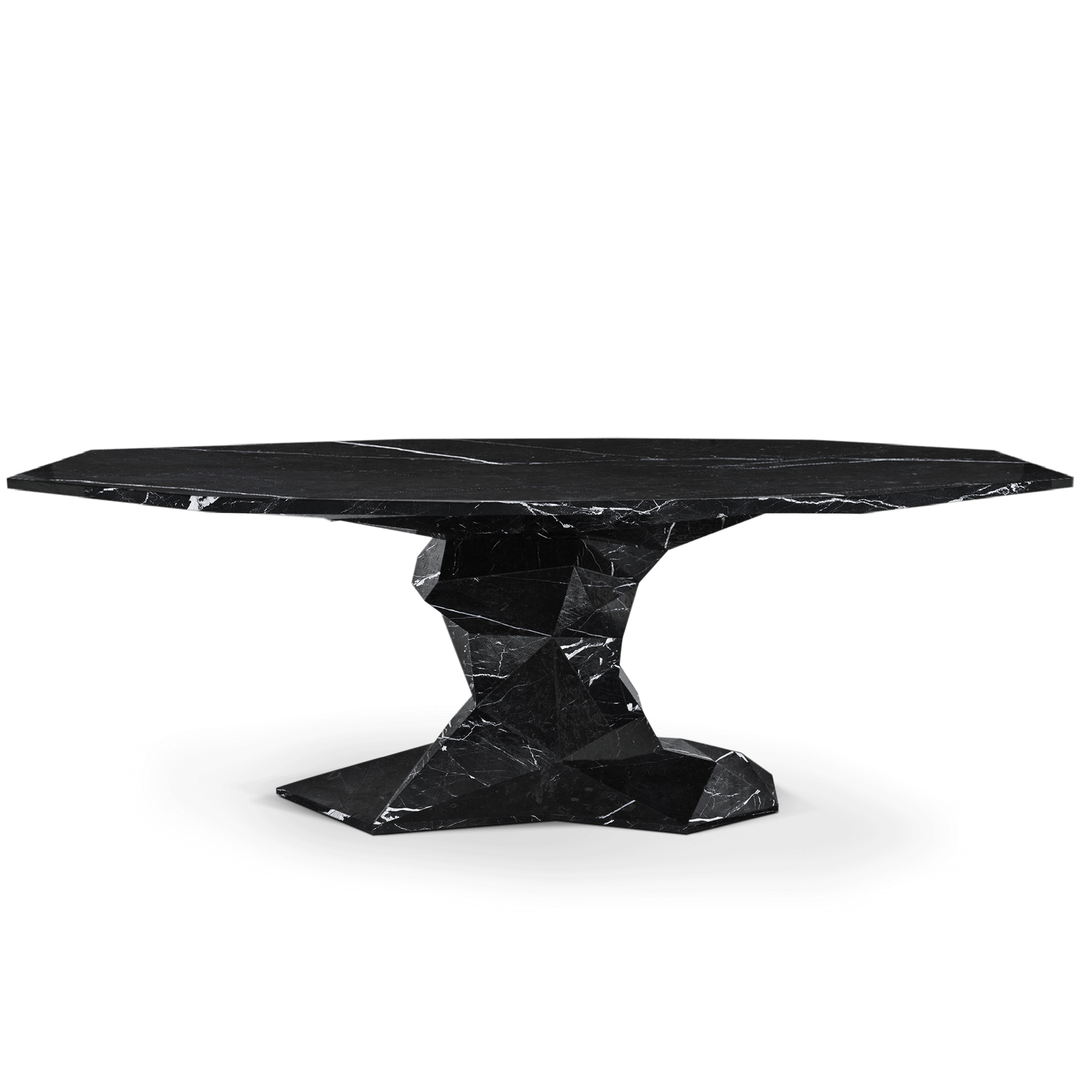 Table produced in marble with an irregular surface finish and a unique faceted form.