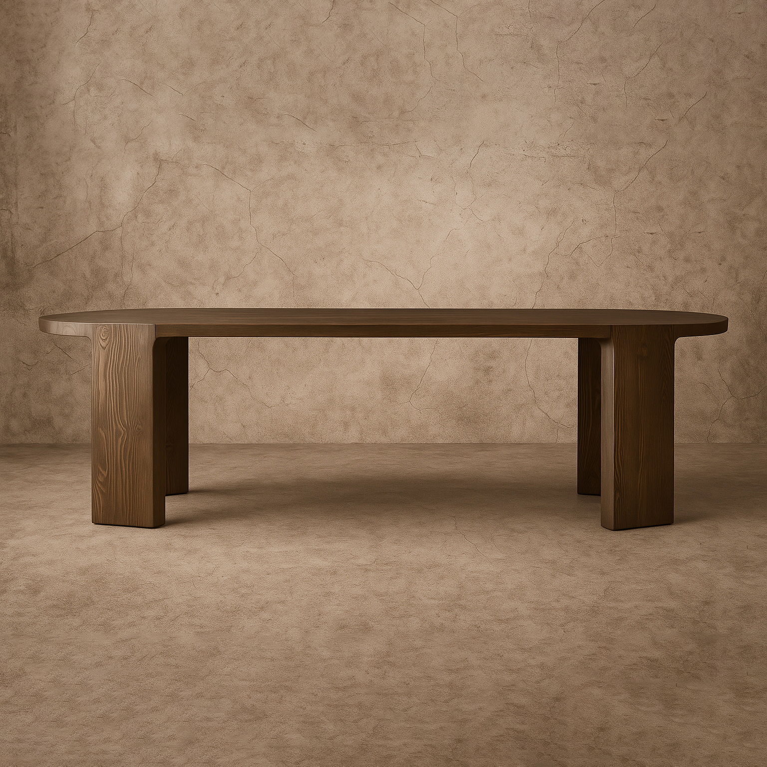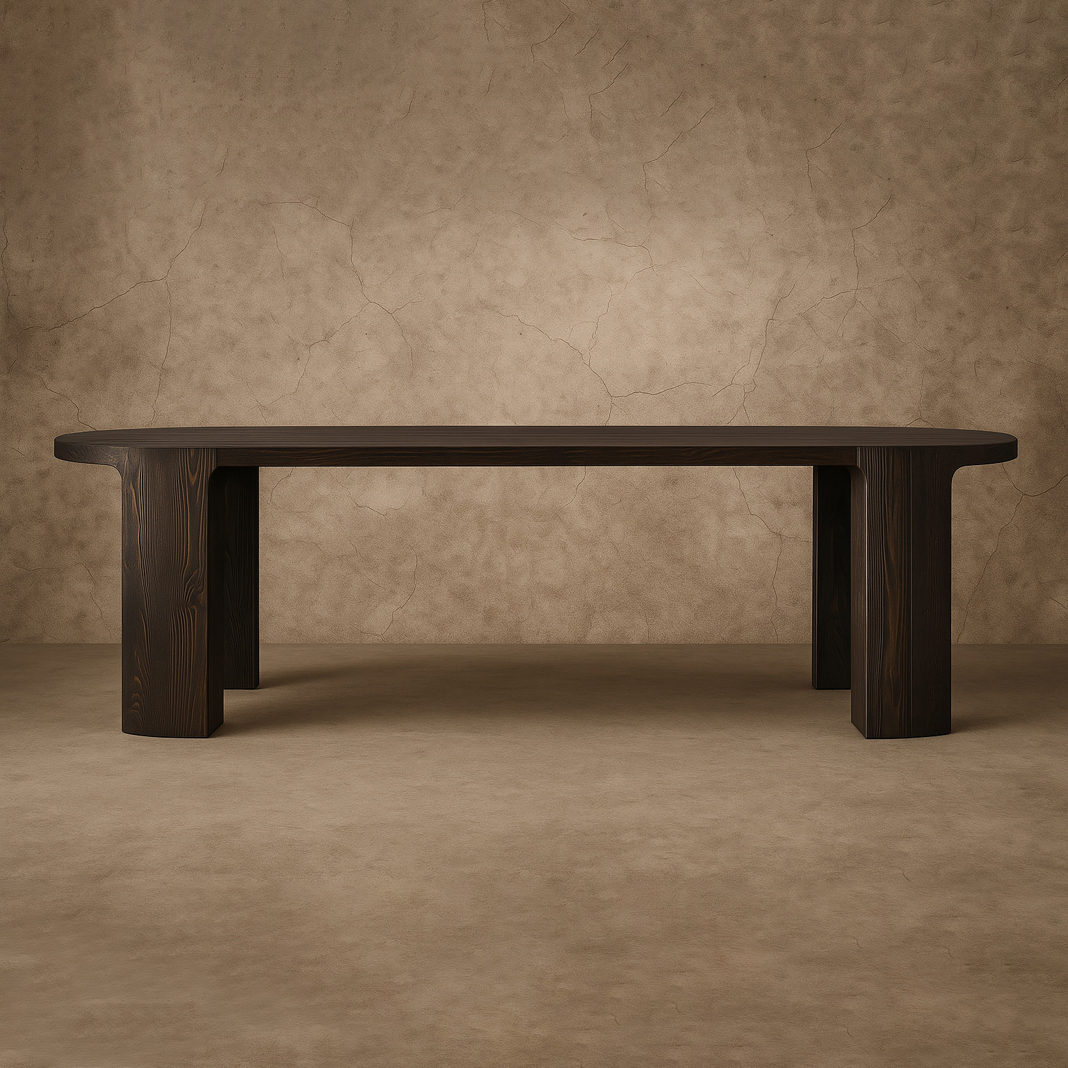 An intensive, multistep finishing process, including dry brushing and sanding, results in a matte surface with deeply textured grain