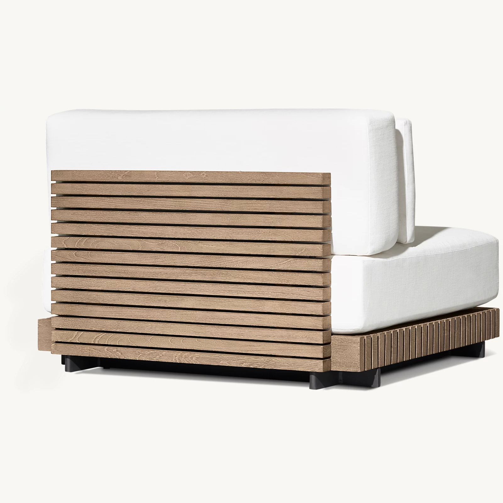 Handcrafted by Indonesian artisans from sustainably harvested premium solid teak, the Caicos collection features parallel slats and mortise-and-tenon joinery