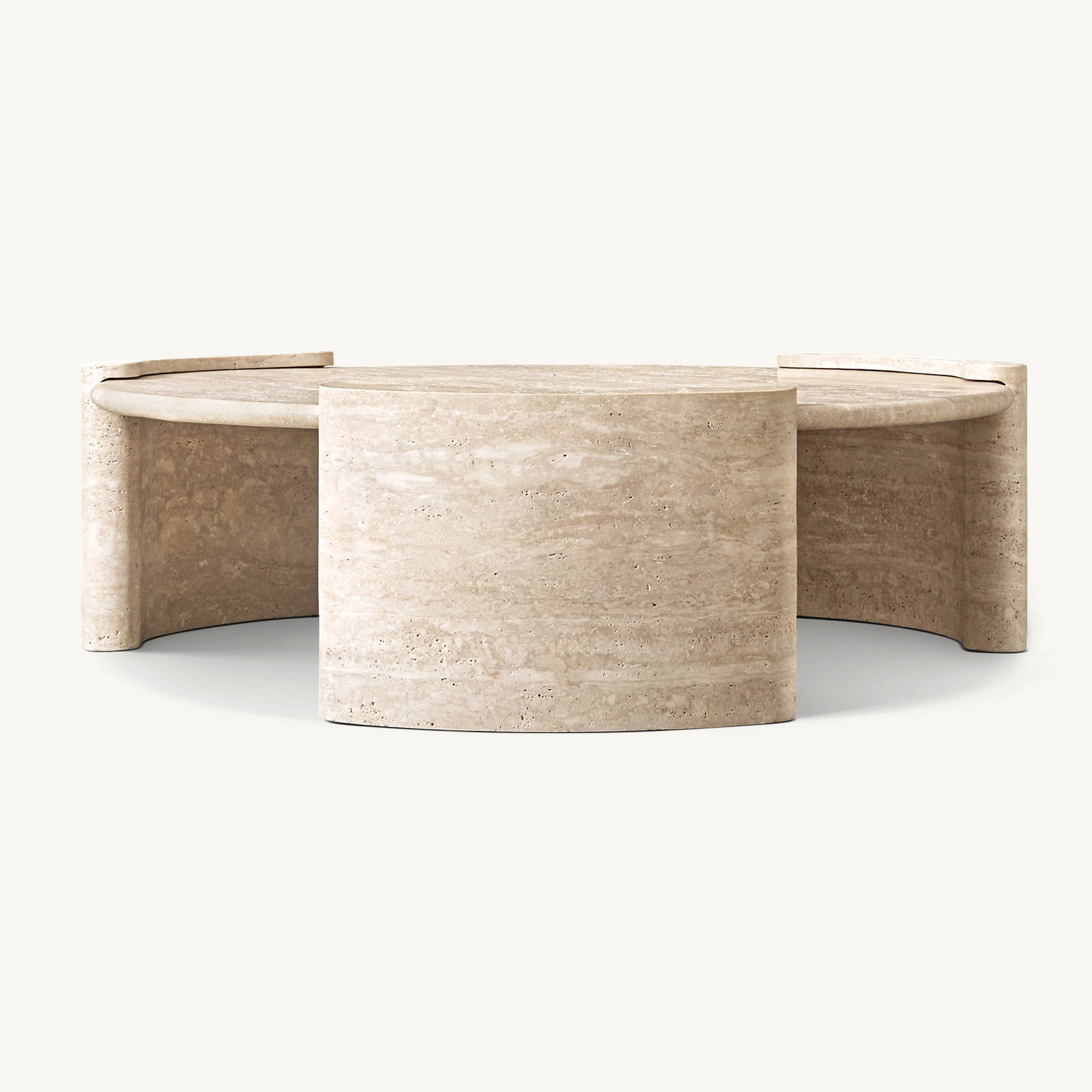 Handcrafted of solid vein-cut natural Italian travertine or solid Italian marble