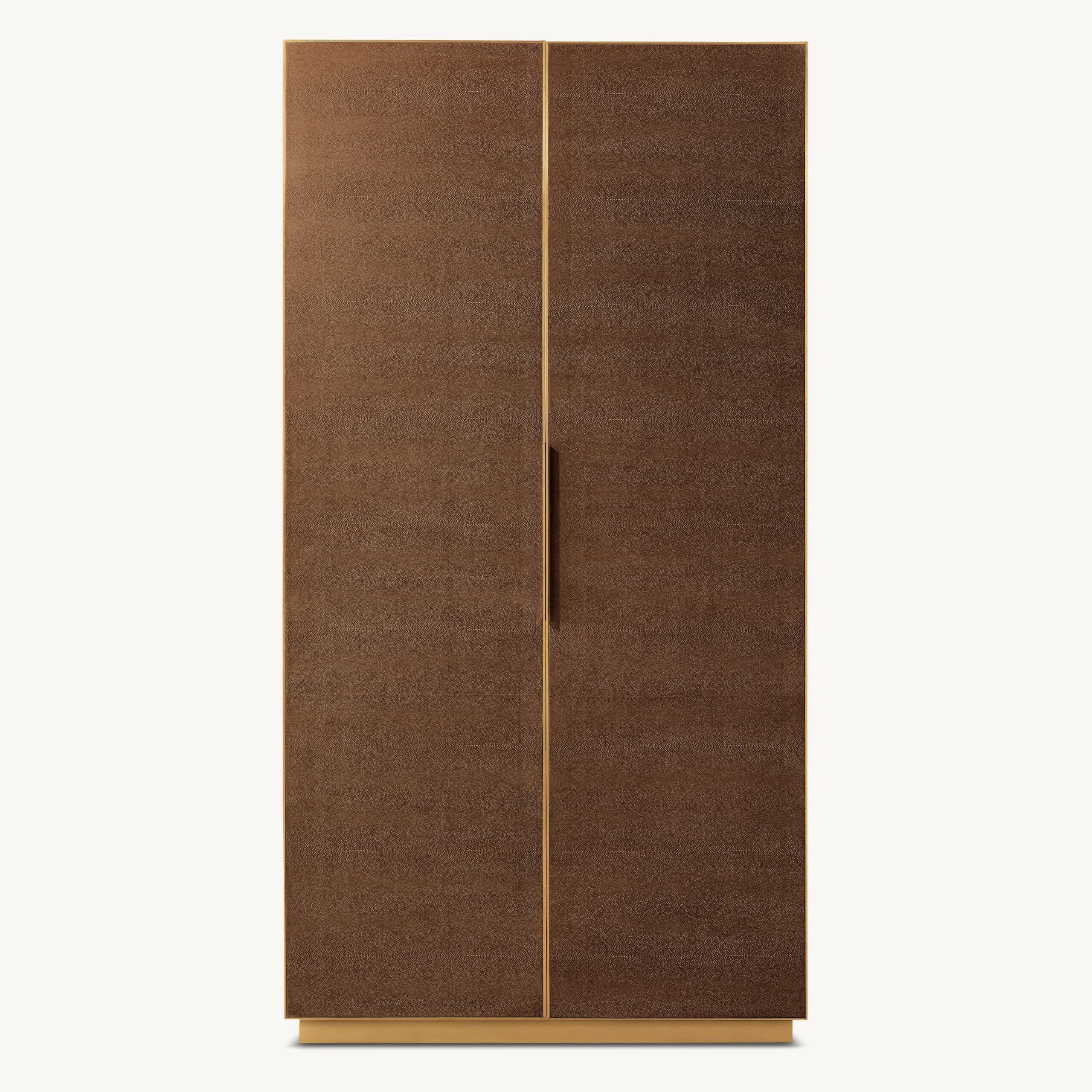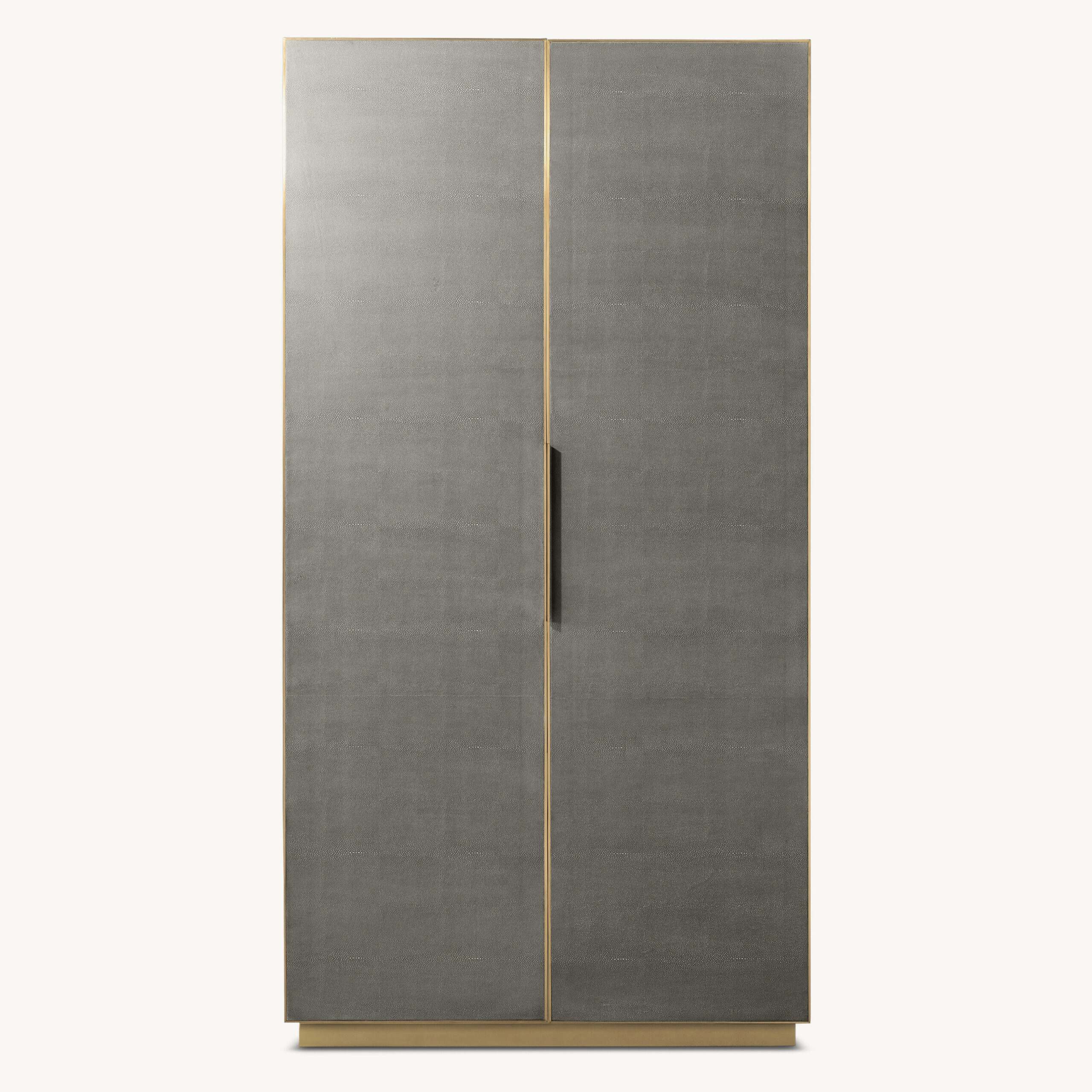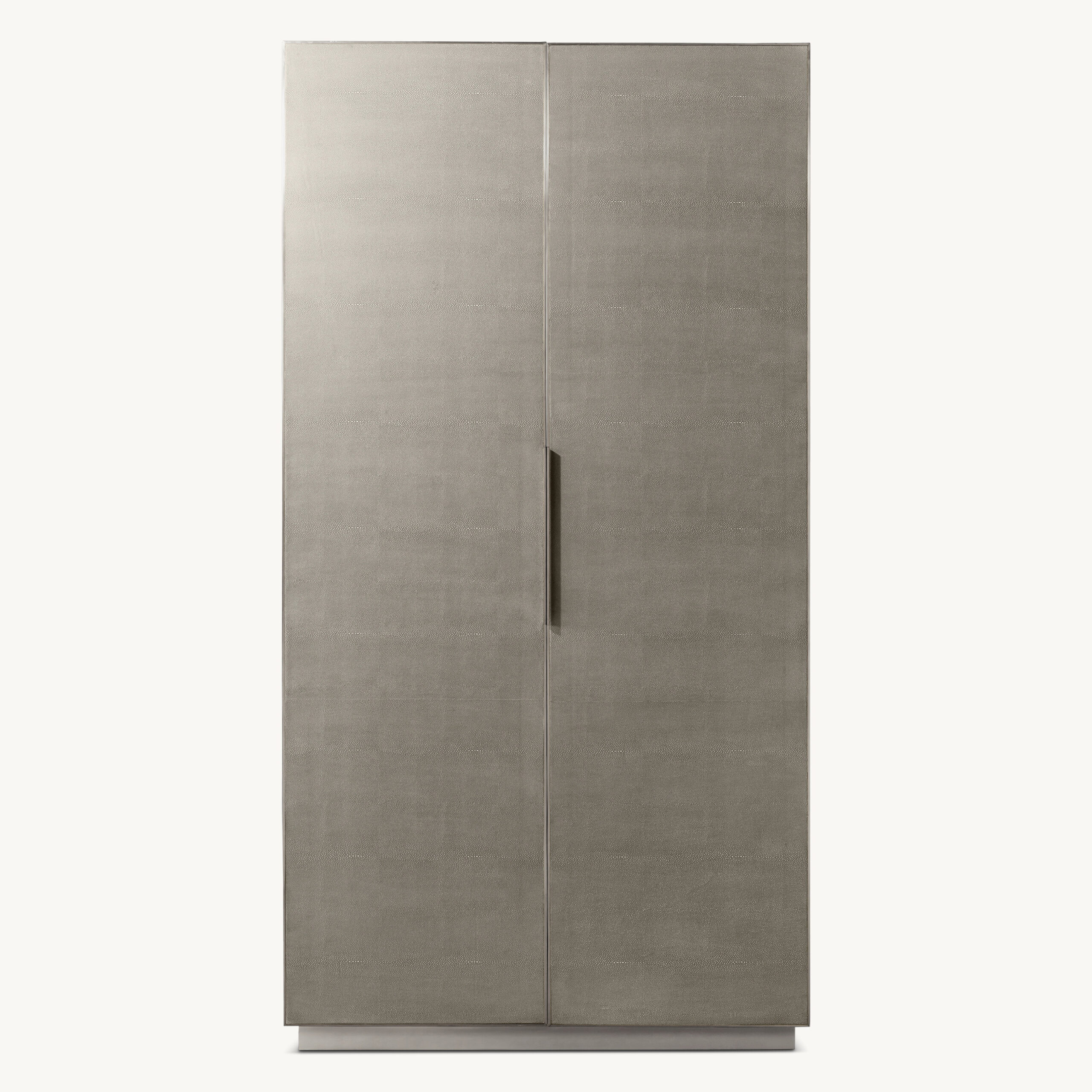 Design details include solid metal trim precisely crafted with triple-mitered corners, and meticulously pieced leather panels that reflect the look of classic shagreen