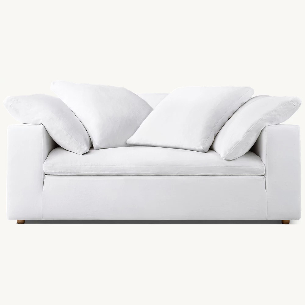 Ultra-comfortable seat cushions feature a soft feather and down wrap around a high-resiliency foam core for softness, support and stability; coordinating back cushions are a blend of feathers, down and polyfiber; arms feature a thick, high-resiliency foam core topped with polyfiber