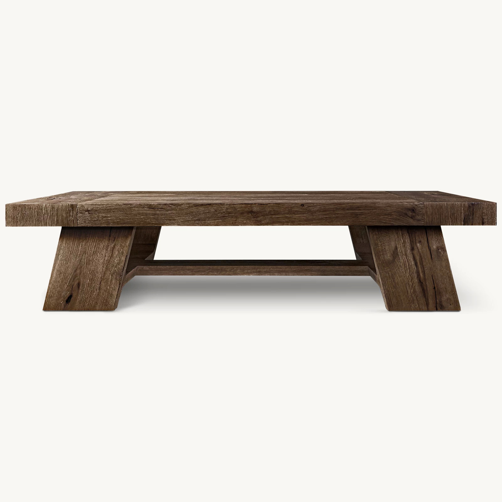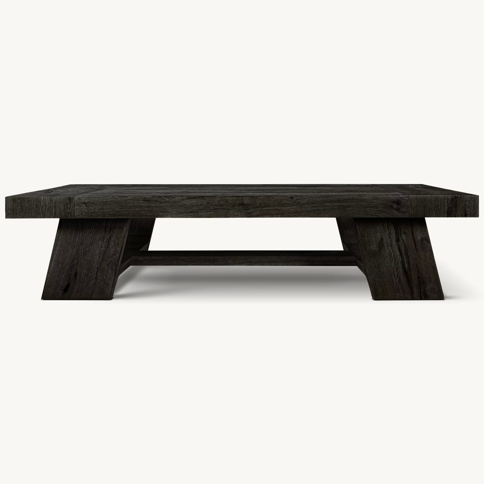 A multistep high-heat finishing process enhances the natural grain pattern and results in a rustic look with distinctive cracking and purposeful imperfections; after heating, the oak is wire brushed by hand and stained to a matte finish