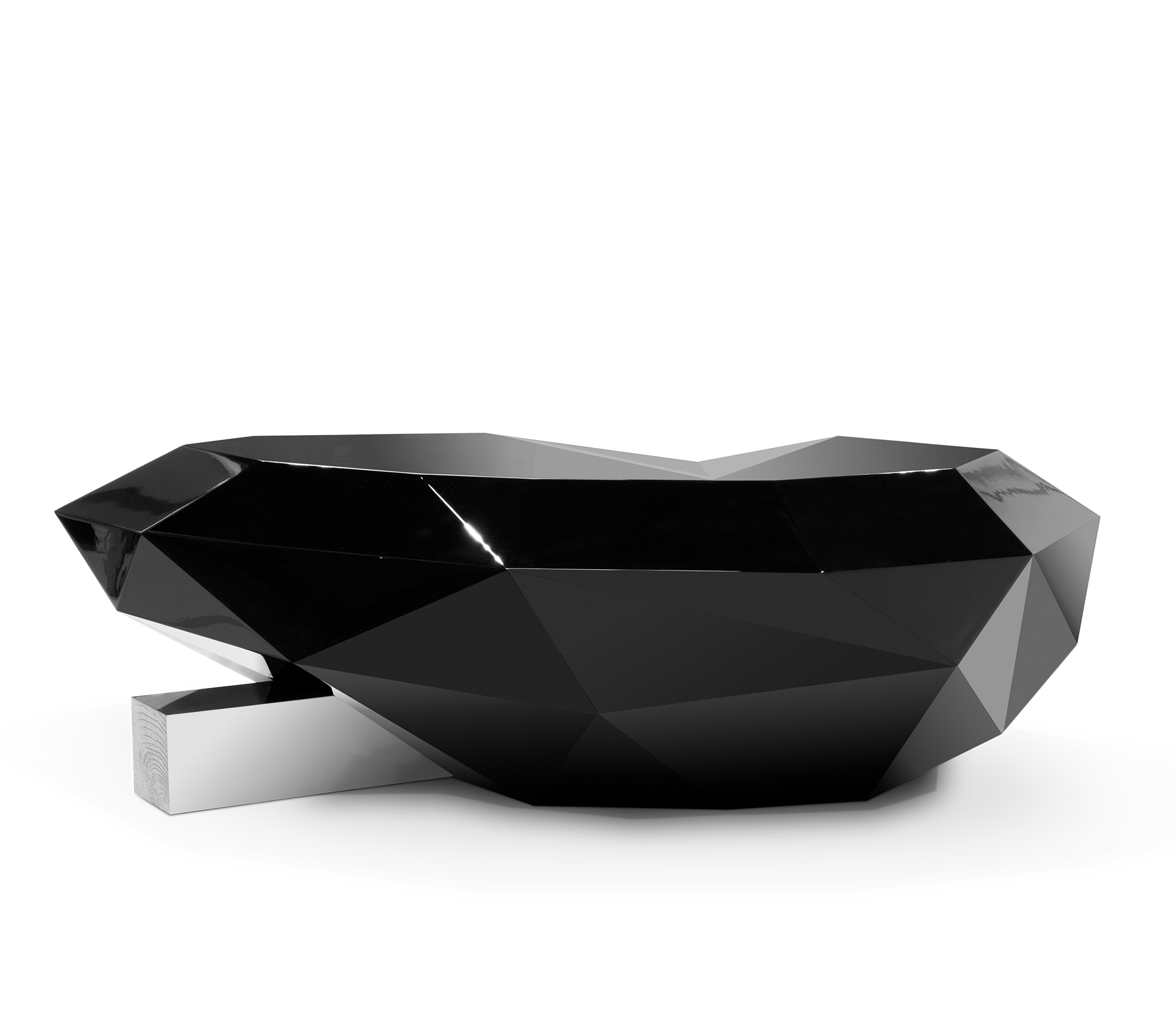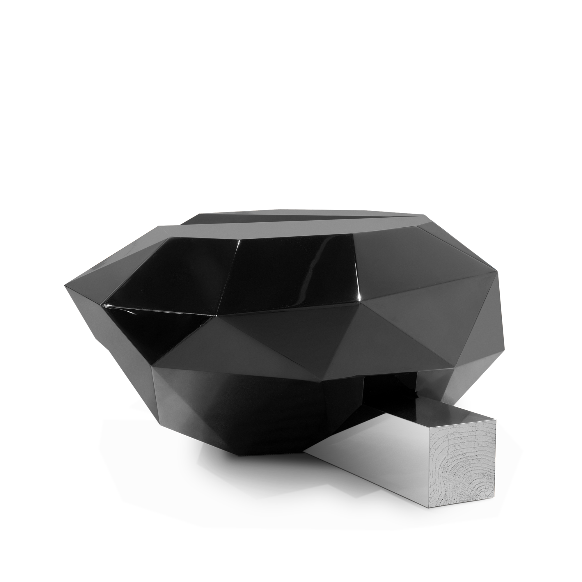 Projected to be the jewel in the crown of the Portuguese brand , the Diamond Center Table is a reflection of the furniture jeweler’s expertise and quintessence, undoubtedly deserving its title. This opulent object, full of resources and desire, has two carefully sculpted doors that reveal a gold lined interior with shelves and two drawers. This piece is inspired by the gothic furniture of the romantic period, with its capacity to take advantage of the power of imagination, prevision and escape, without forgetting its unique character.