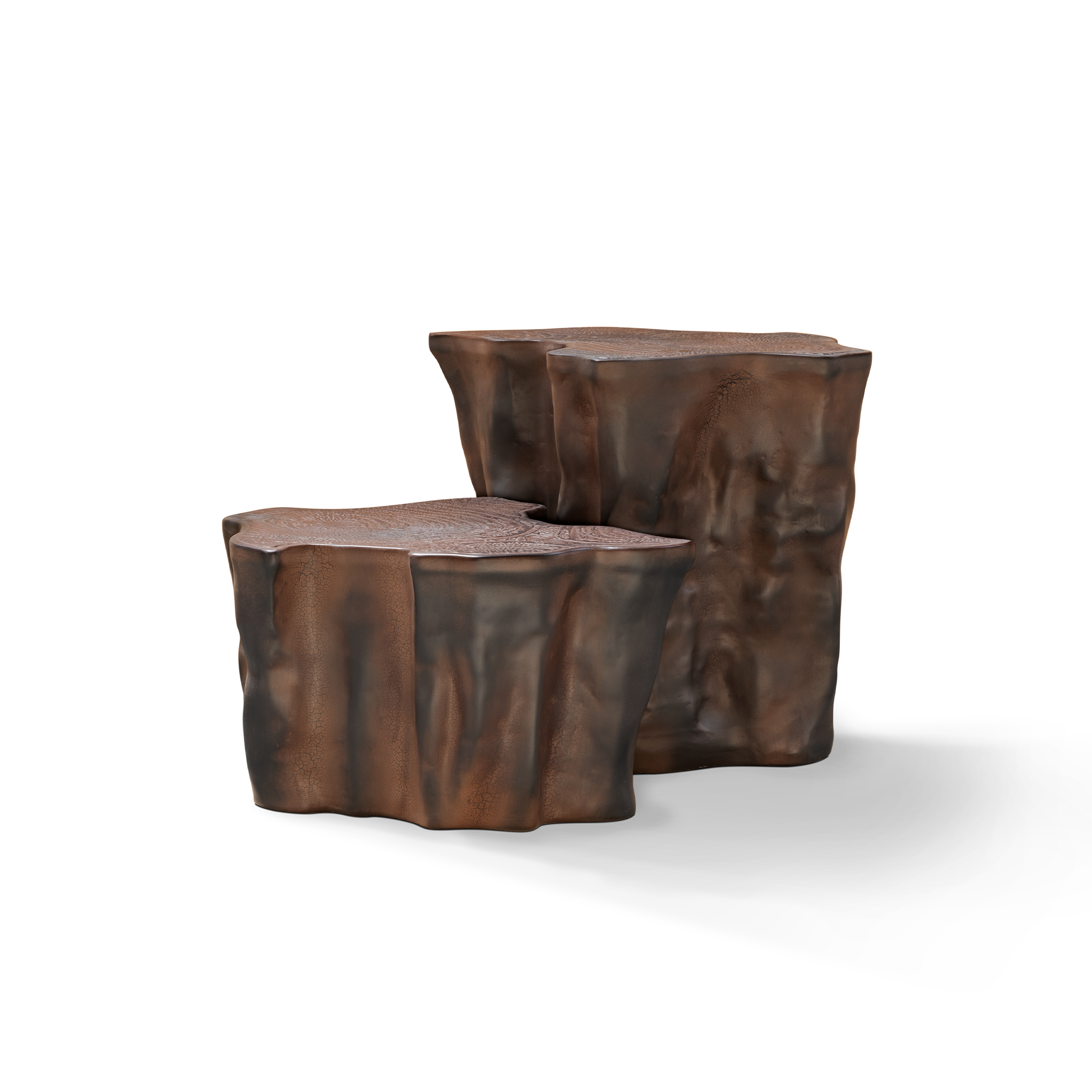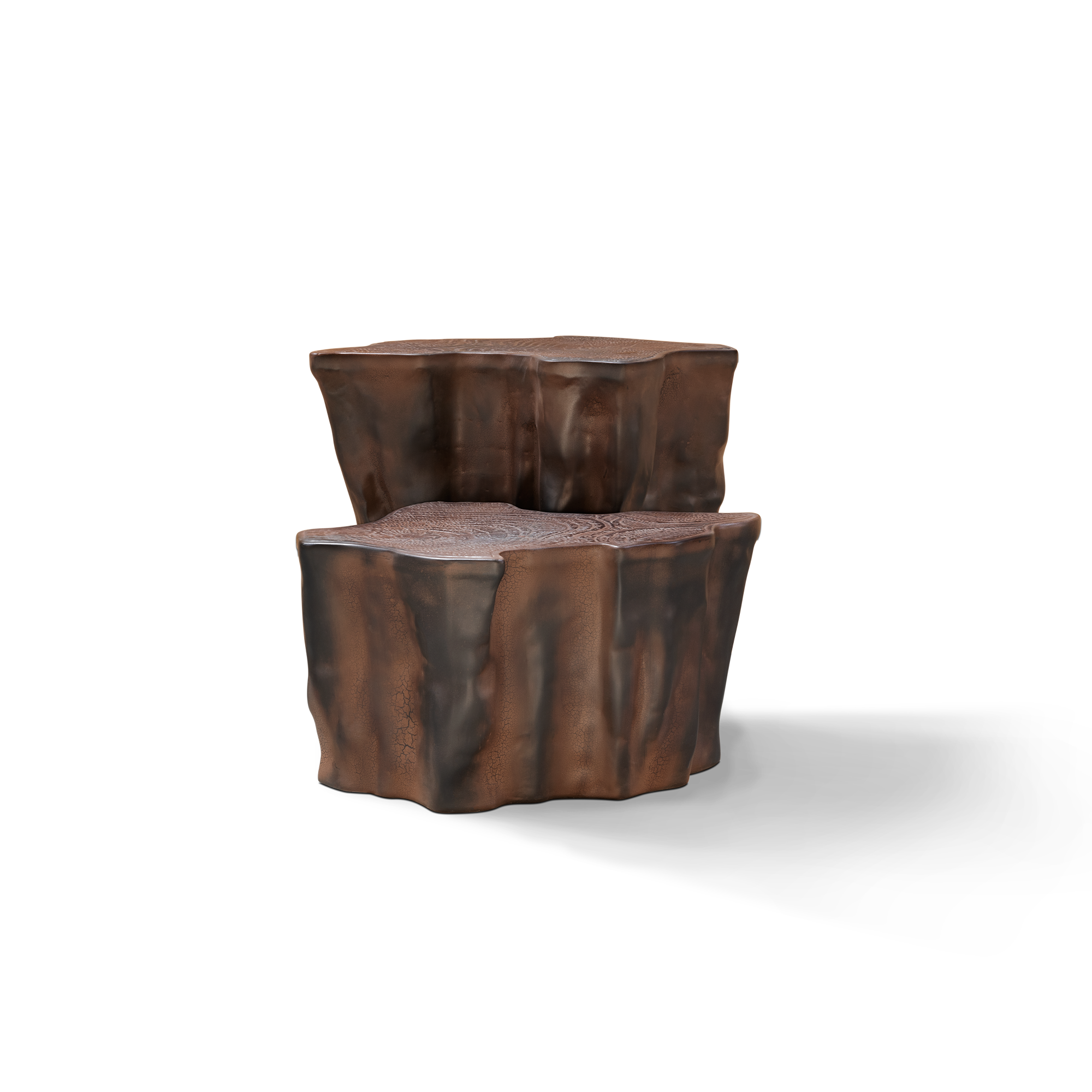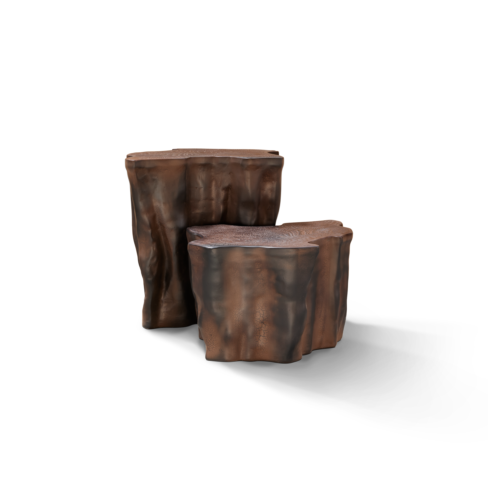 Eden is inspired by the mystic behind the name. This side table represents a part of the tree of knowledge and the tale of the birth of desire. Fully made of polished casted brass, with a delicately engraved top exposing the heart of a golden tree to the very heart of a home. Available a set of two side tables and also an elegant and highly decorative side table.