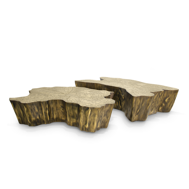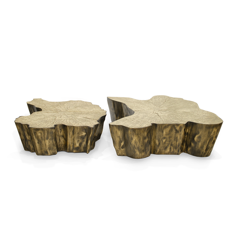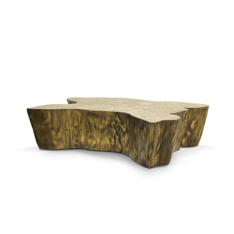 The mystic behind the name inspires Eden. This center table represents a part of the tree of knowledge and the tale of the birth of desire. uses the highest quality materials and textures, giving them shapes through objects that create a cosmopolitan luxury environment, finding the finest example in this table. Fully made of polished casted brass, with a delicately engraved top exposing the heart of a golden tree to the very heart of a home. Available a set of two center tables and also an elegant and highly decorative side table.
