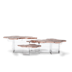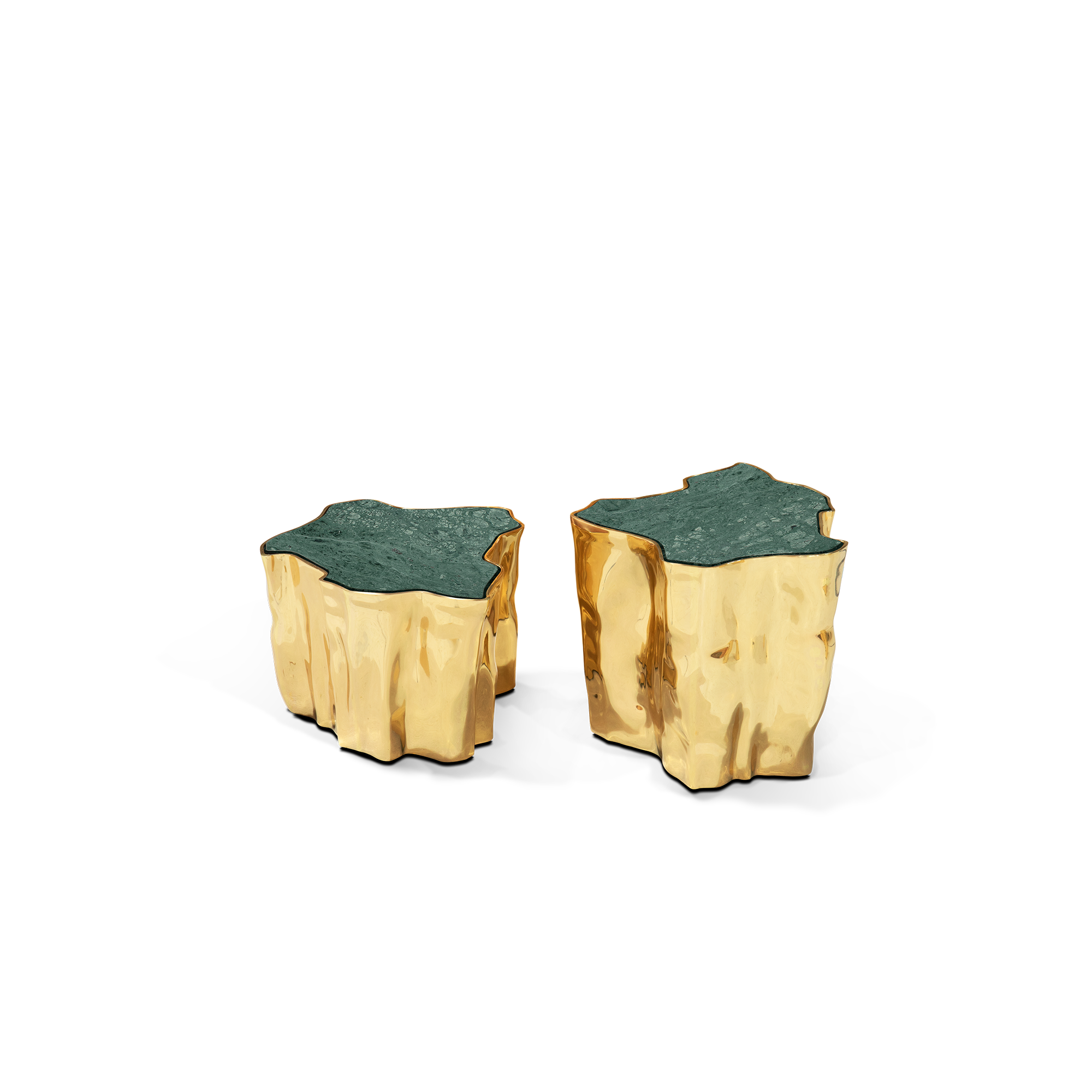 Introducing the Eden coffee table set, where mystique meets modern design. Inspired by the Tree of Life from the Garden of Eden, these unique accent tables feature an intriguing cut and captivating details. Crafted by skilled artisans, the tables effortlessly blend nature-inspired aesthetics with a touch of industrial flair. The manually engraved top reveals a golden tree, while the sinuous base adds enduring charm. The Eden coffee table series offers versatile combinations to complement both contemporary and modern interiors, showcasing impeccable craftsmanship and iconic design.