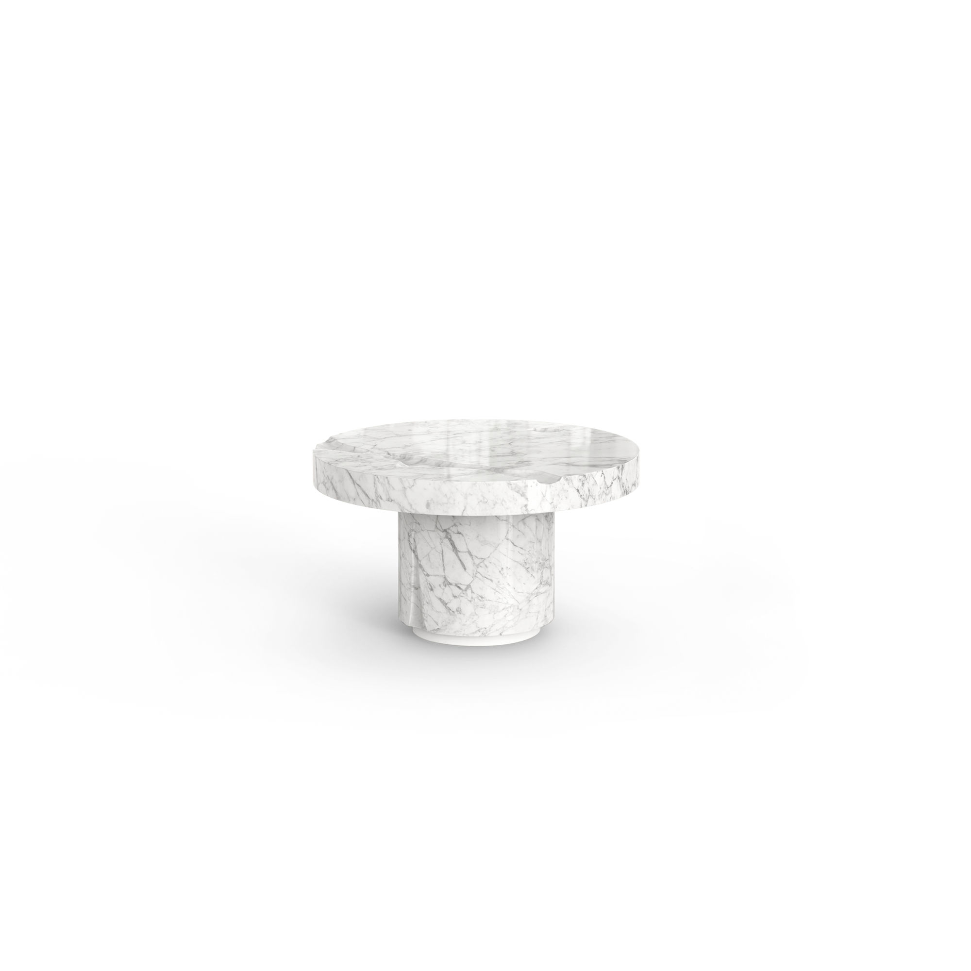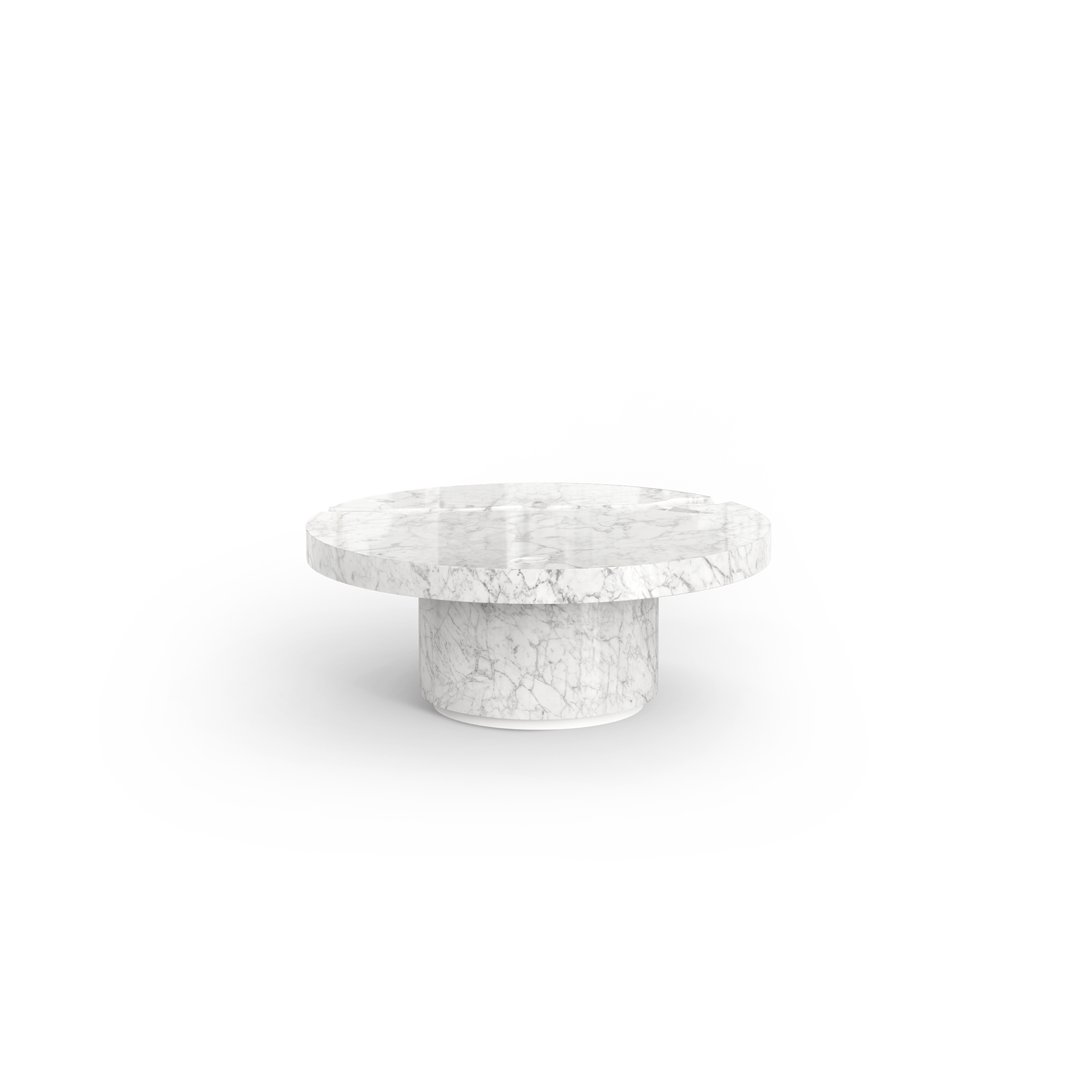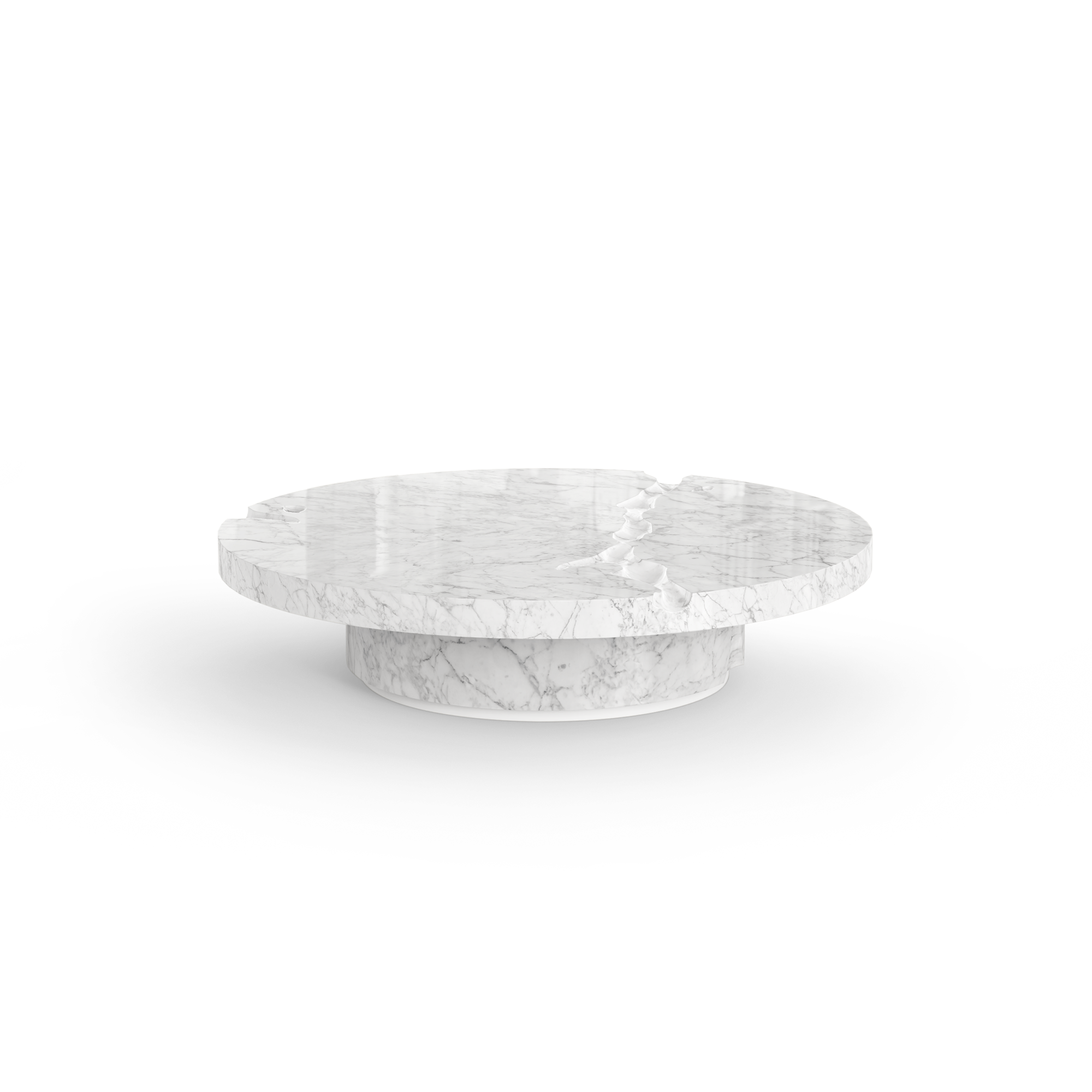 The Empire center table set is produced in Carrara Marble with a white matte lacquered footer.