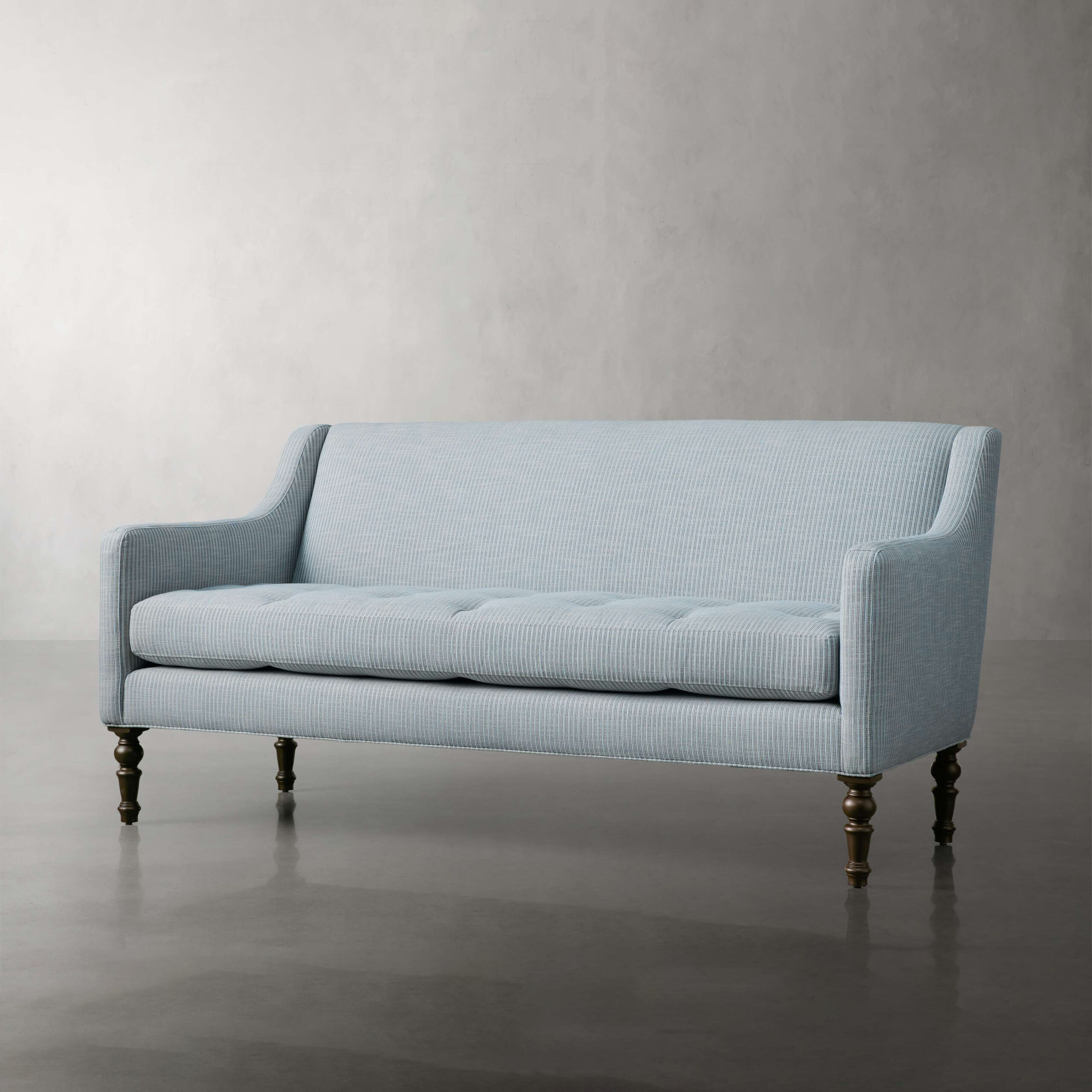 Cushions are wrapped in cotton, down-proof casings to maintain their shape. Channel-stitching keeps padding in place for added resilience.