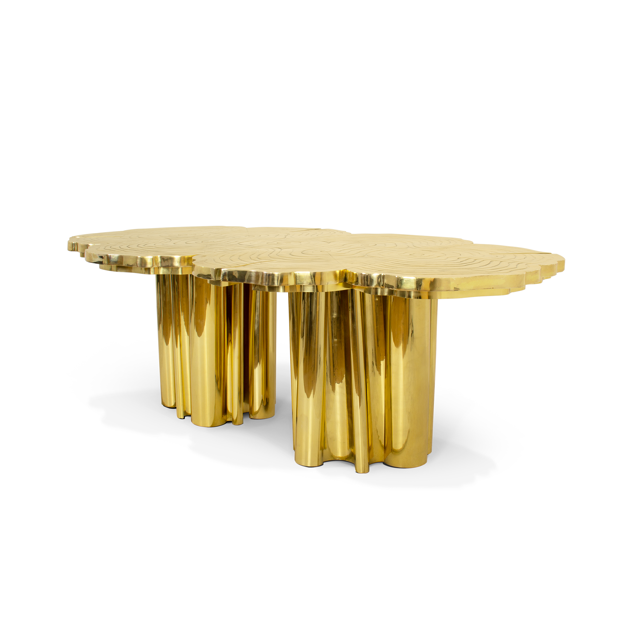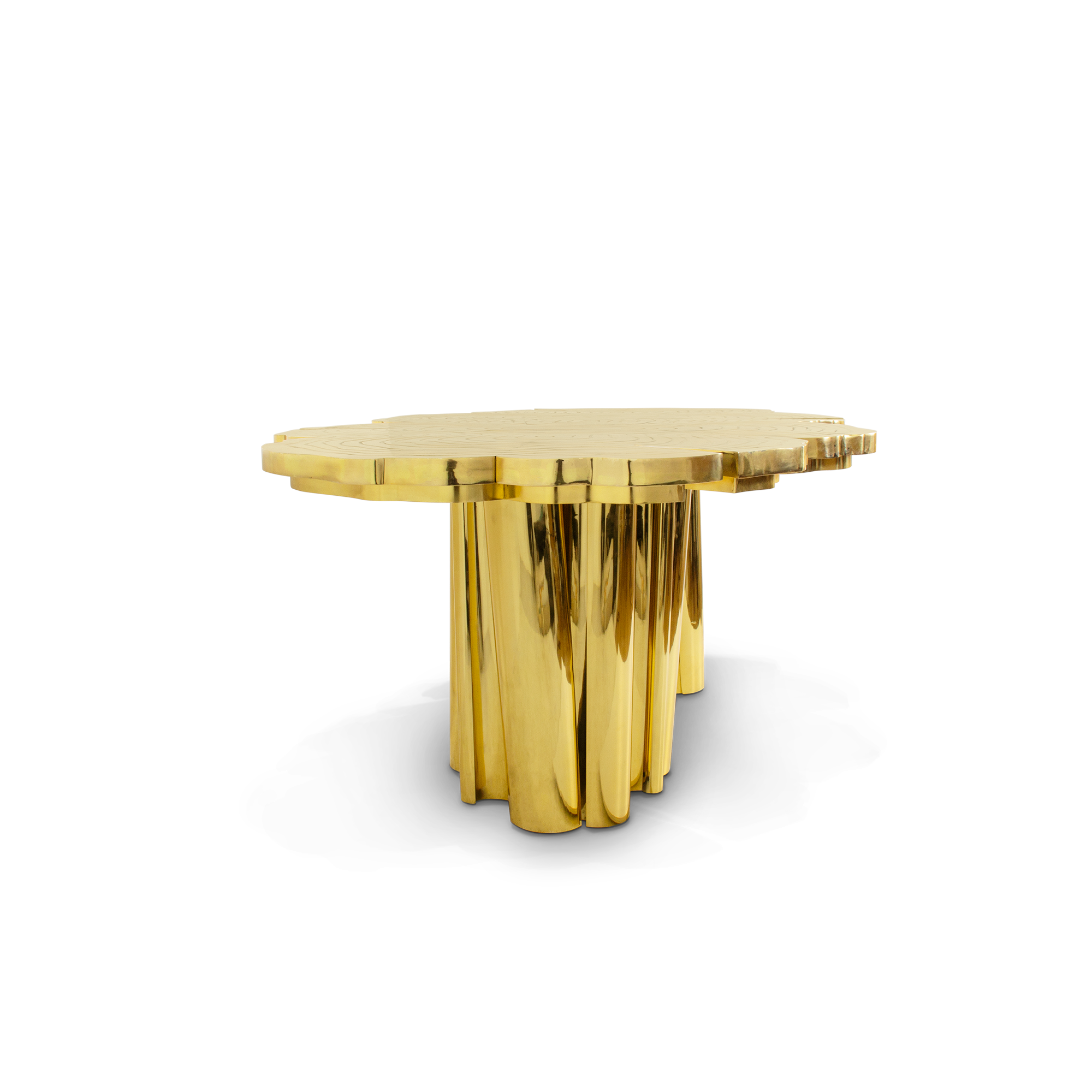 Fortuna is a contemporary dining table with one-of-a-kind design aesthetic and refined statement to the most influential minds. Representing the essence of empowerment, sophistication, and mystics, the Fortuna features an exclusive gold brass surface for ground-breaking dining rooms.