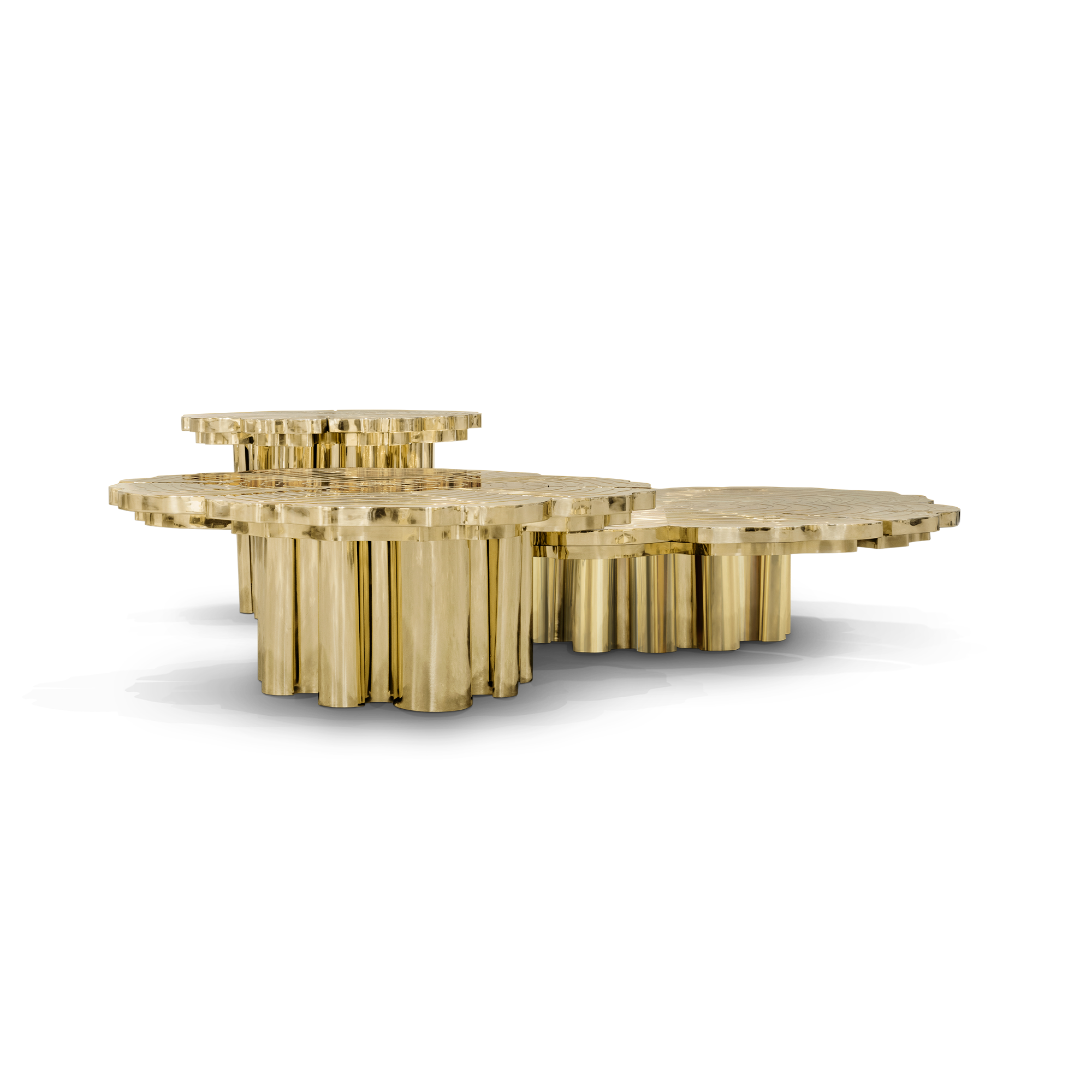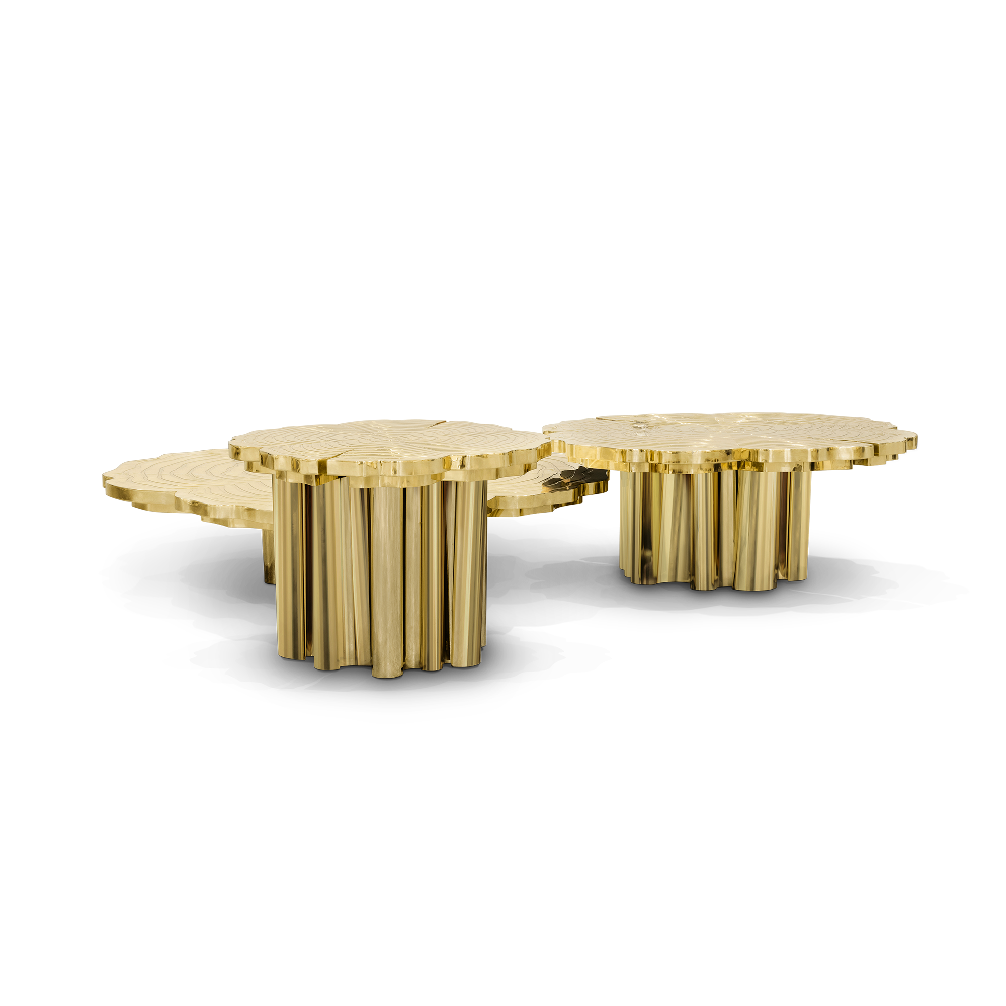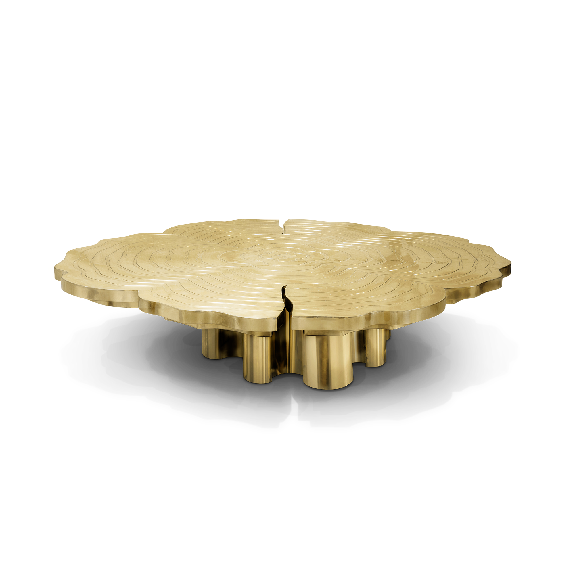 With one-of-a-kind design aesthetic and refined statement to the most influential minds, the Fortuna is a contemporary center table fit for any luxurious setting. Representing the essence of empowerment, sophistication, and mystics, the Fortuna features an exclusive gold brass surface for extravagant spaces. An elegant statement piece that incorporates the richest nature-inspired design, industrious welding techniques and a manually engraved top that emulates the outlines of log rings. This is a unique center table that embodies the fearless state mind of and the availability to customize the features to accommodate the most demanding client’s requirements.