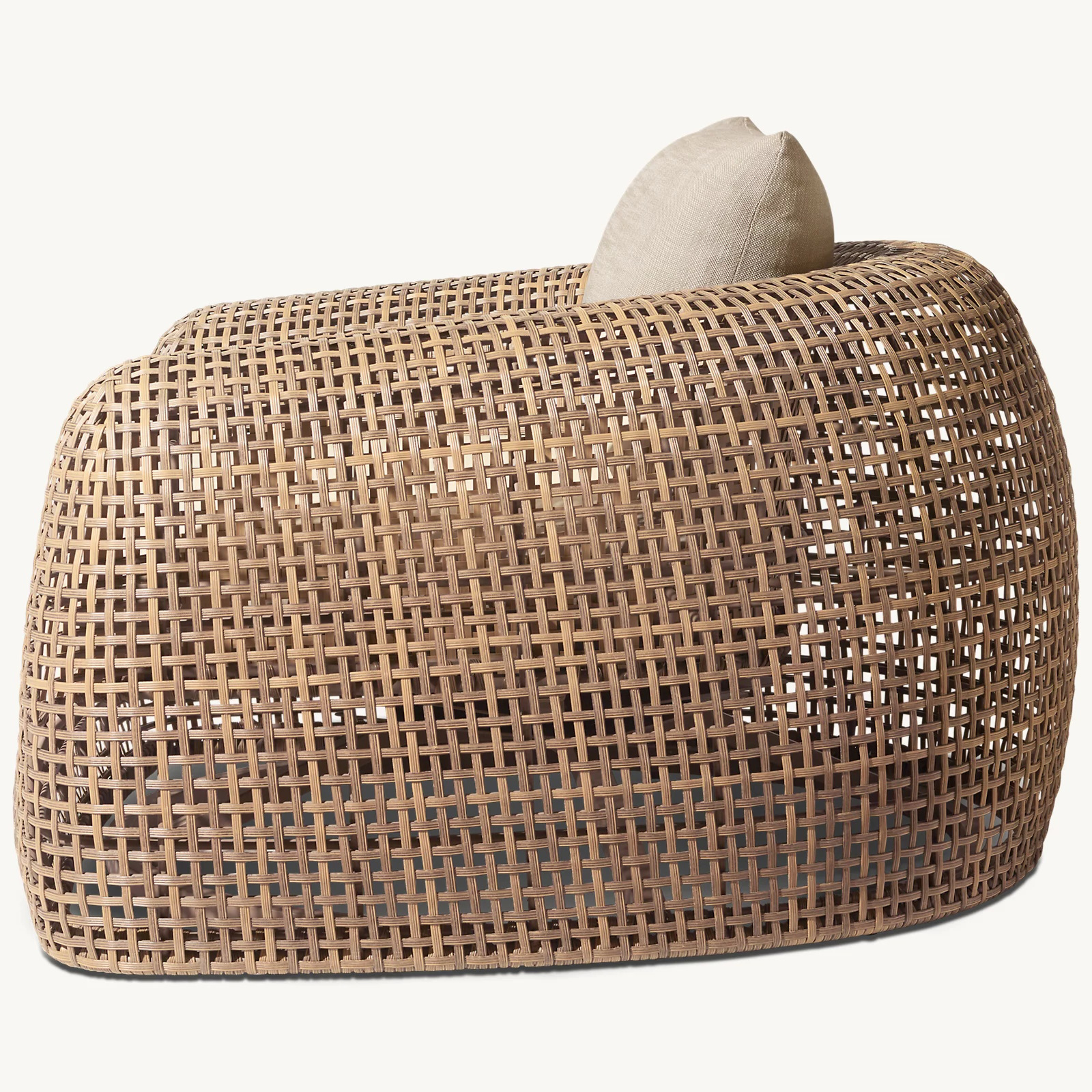 Crafted by skilled artisans, the Gemini collection features a handwoven lattice of all-weather resin wicker wrapped around a powdercoated aluminum frame