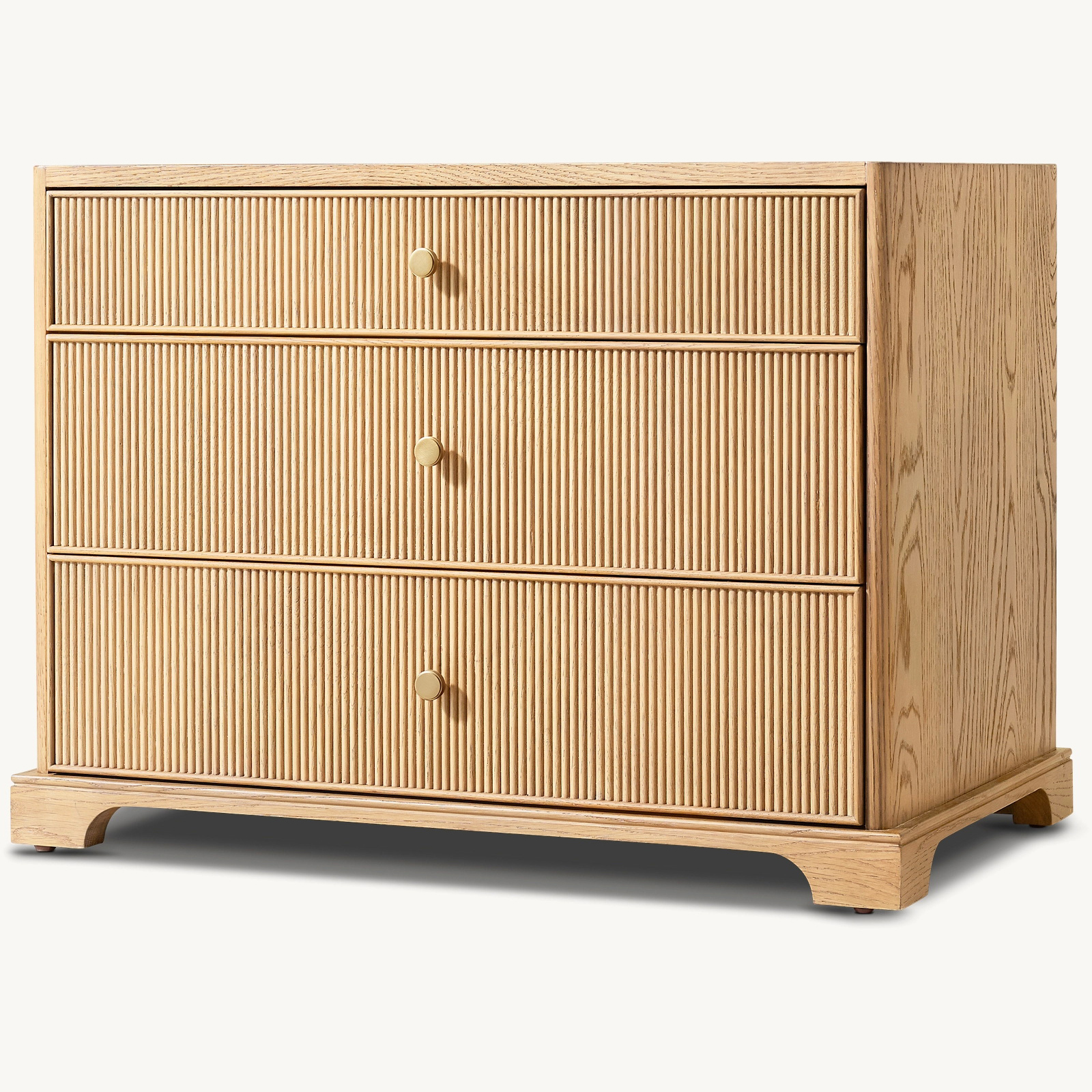 Finish is achieved through an intensive, multistep process in which oak is wire brushed to highlight its rich grain