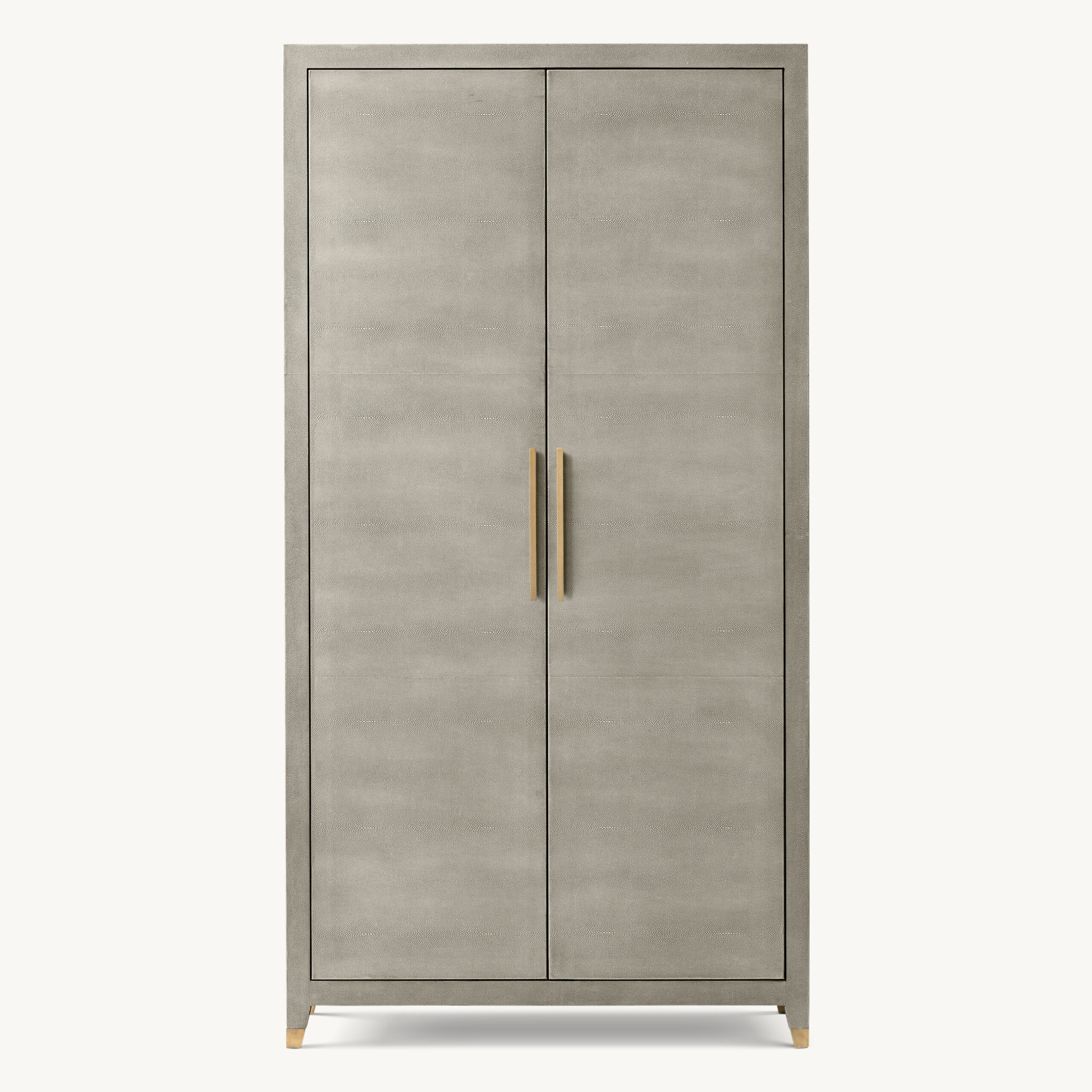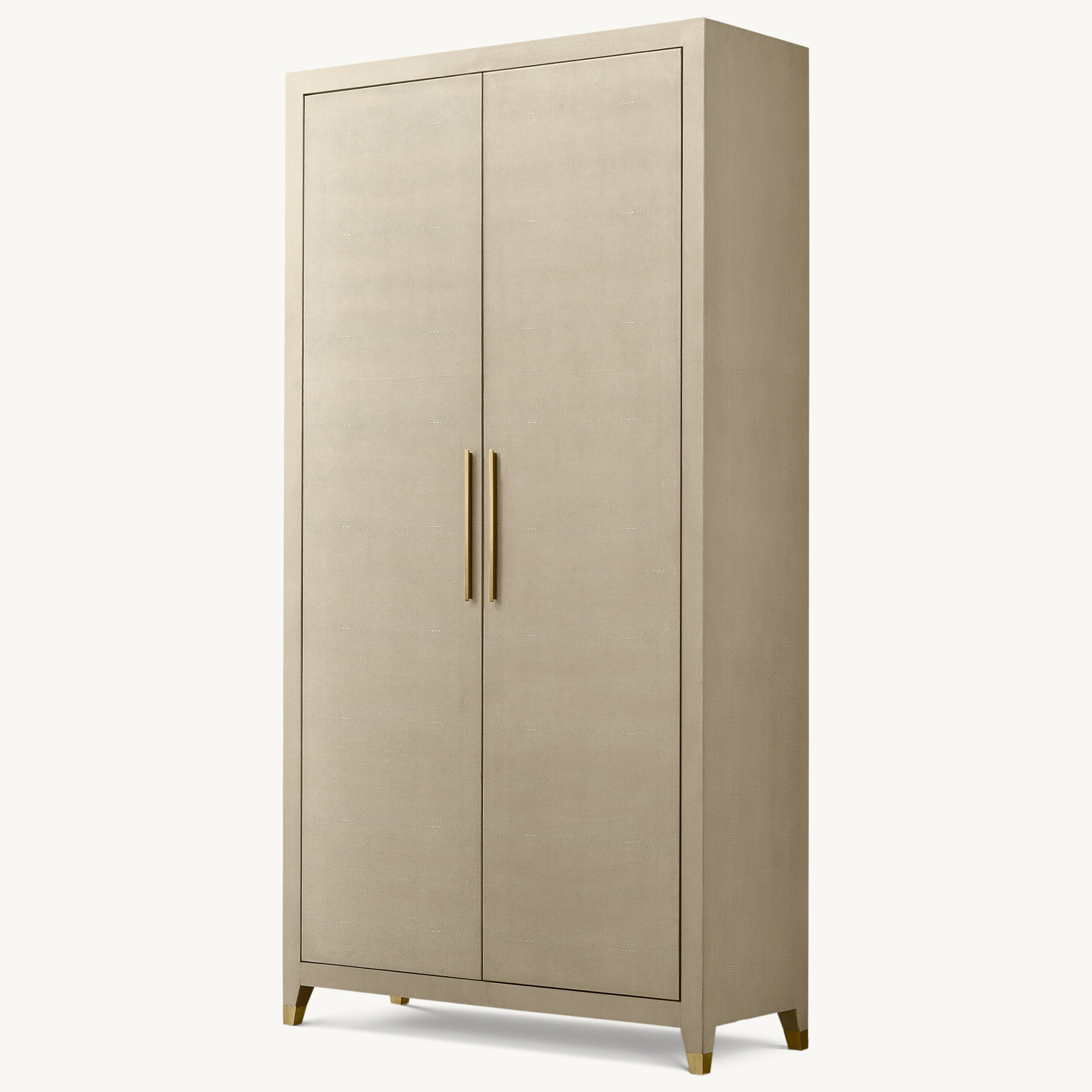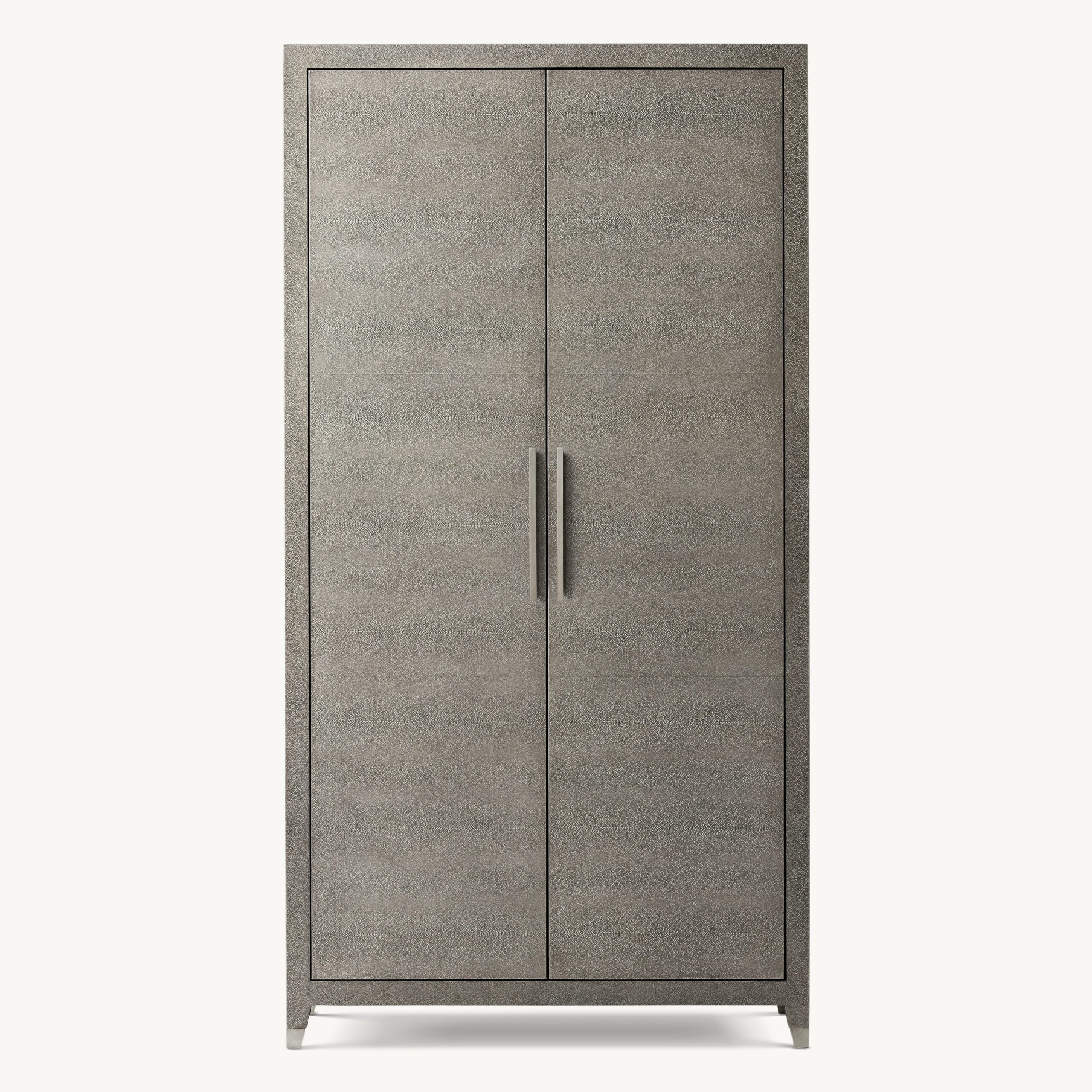 Design details include solid metal capped feet and meticulously pieced leather panels that reflect the look of classic shagreen