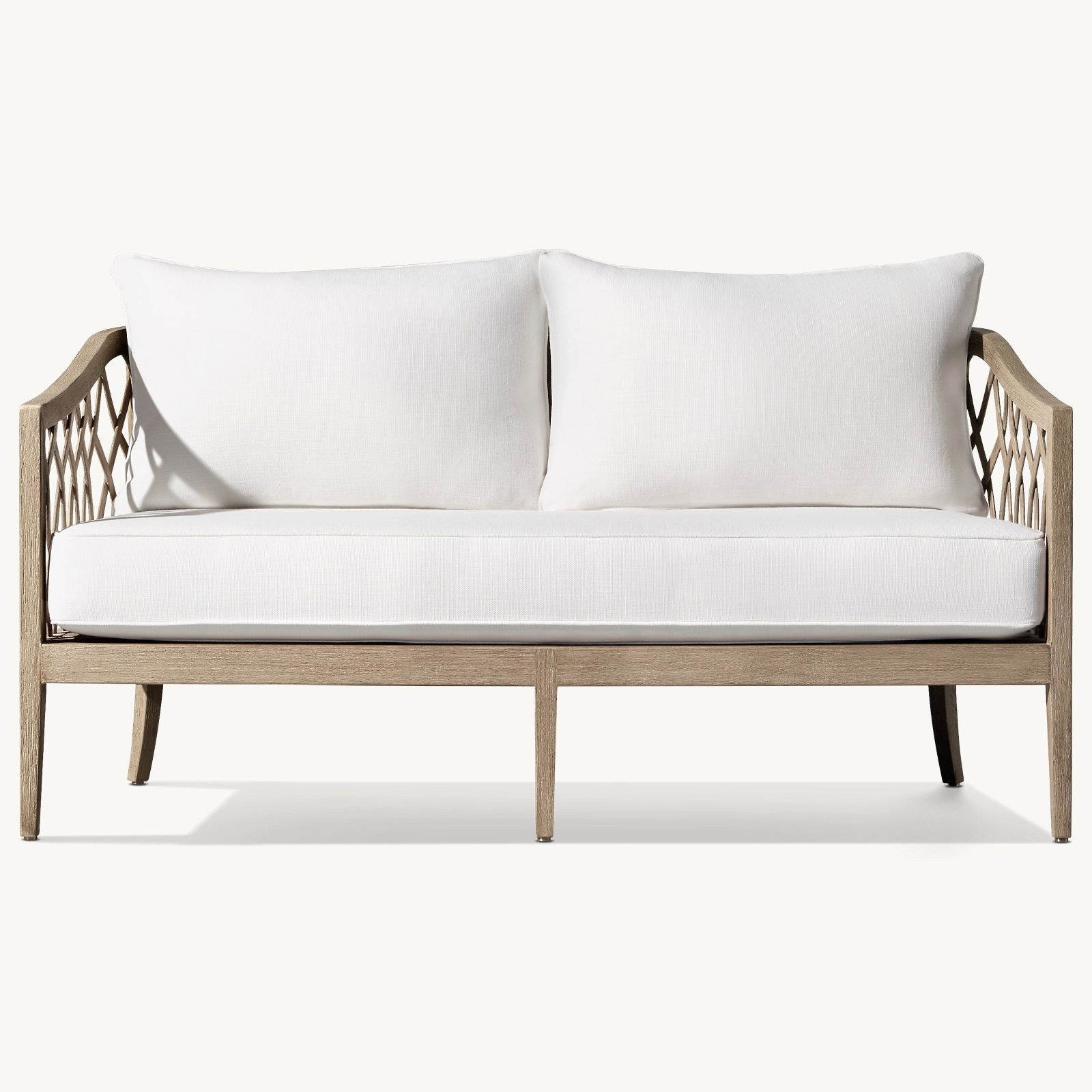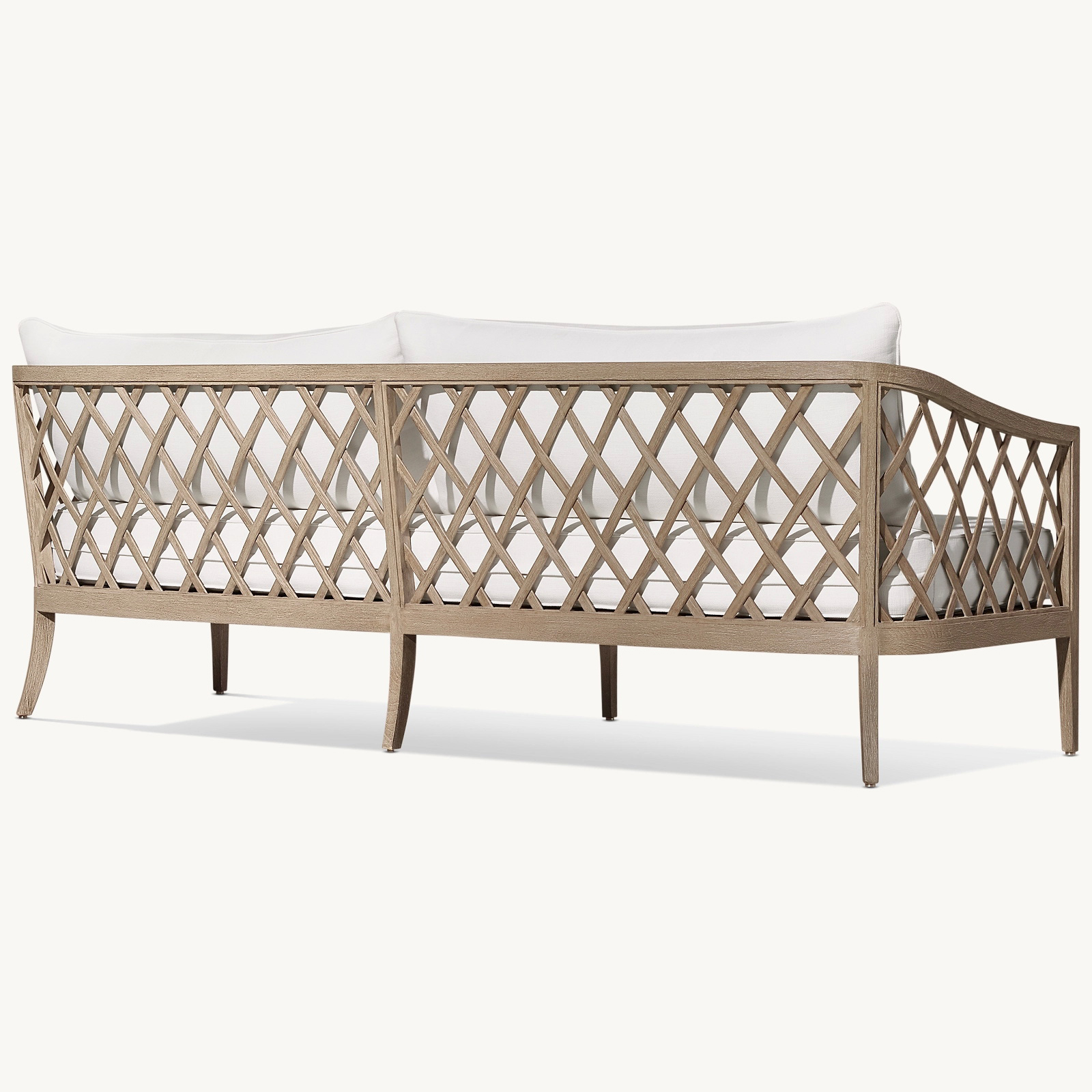 Handcrafted by Indonesian artisans from sustainably harvested premium solid teak, the Greystone collection features lattice frames and mortise-and-tenon joinery