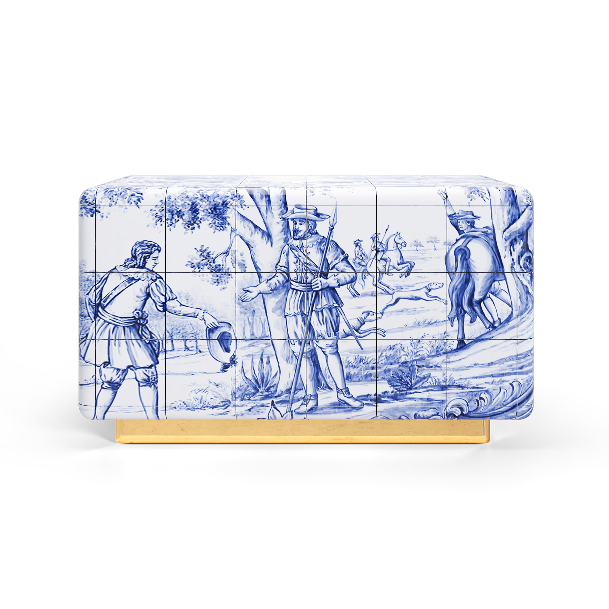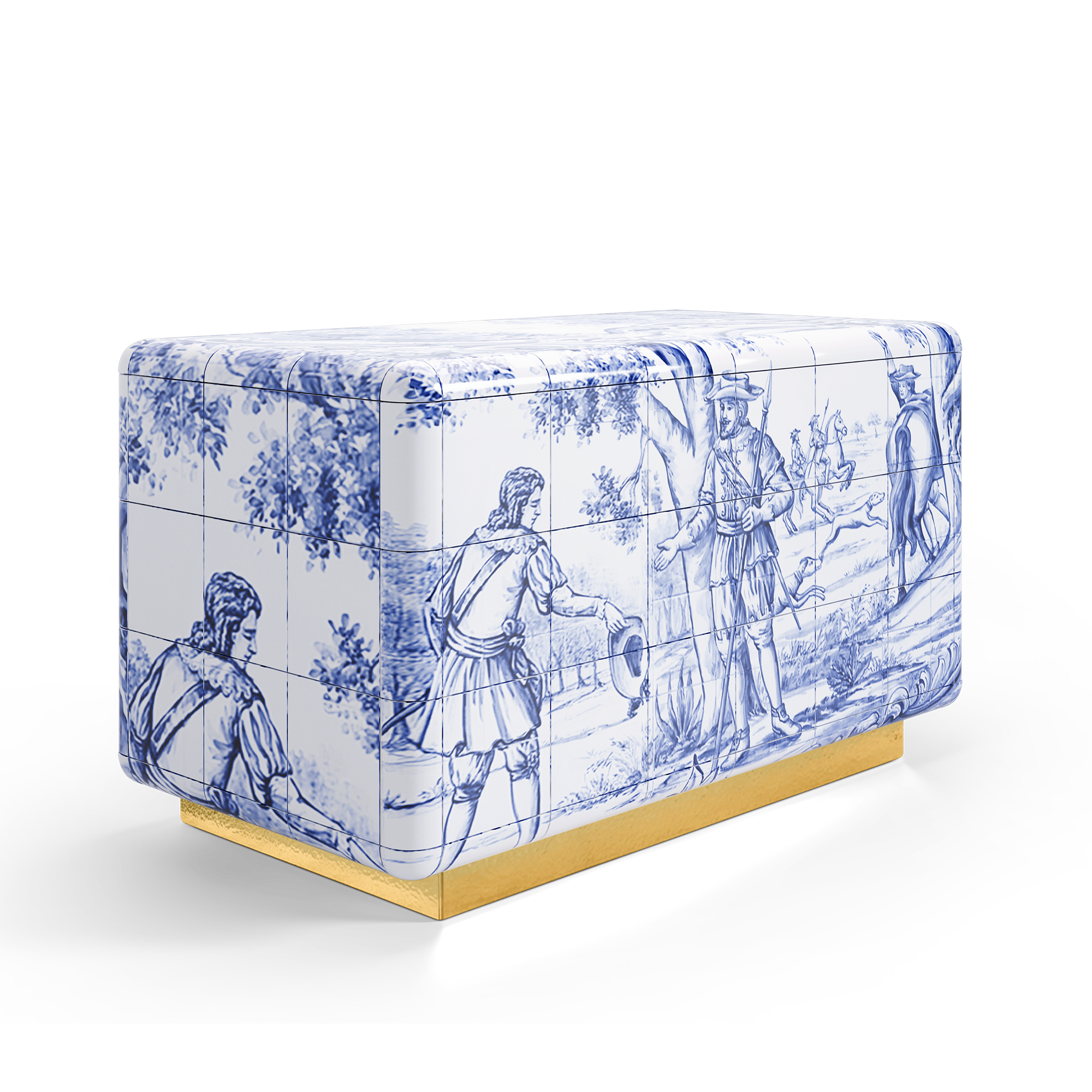 The Heritage Nightstand is influenced by the Azulejo, a landmark in Portuguese culture. Originating from the Arabic word zellige, this traditional hand painted tile that can be found all over the country, from churches, to houses and gardens and was often used to tell tales of Portuguese history. Superb for any graceful ambience, this unique nightstand references the importance of history, our ancestors and heritage, with a touch of blue or sepia glamour, for cold or warmer looks.