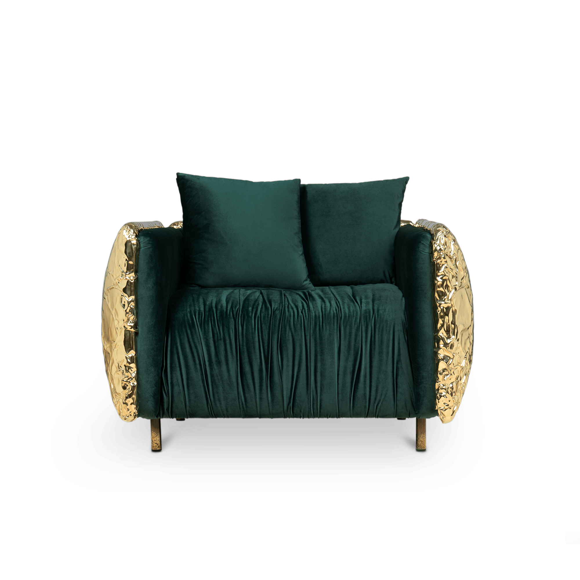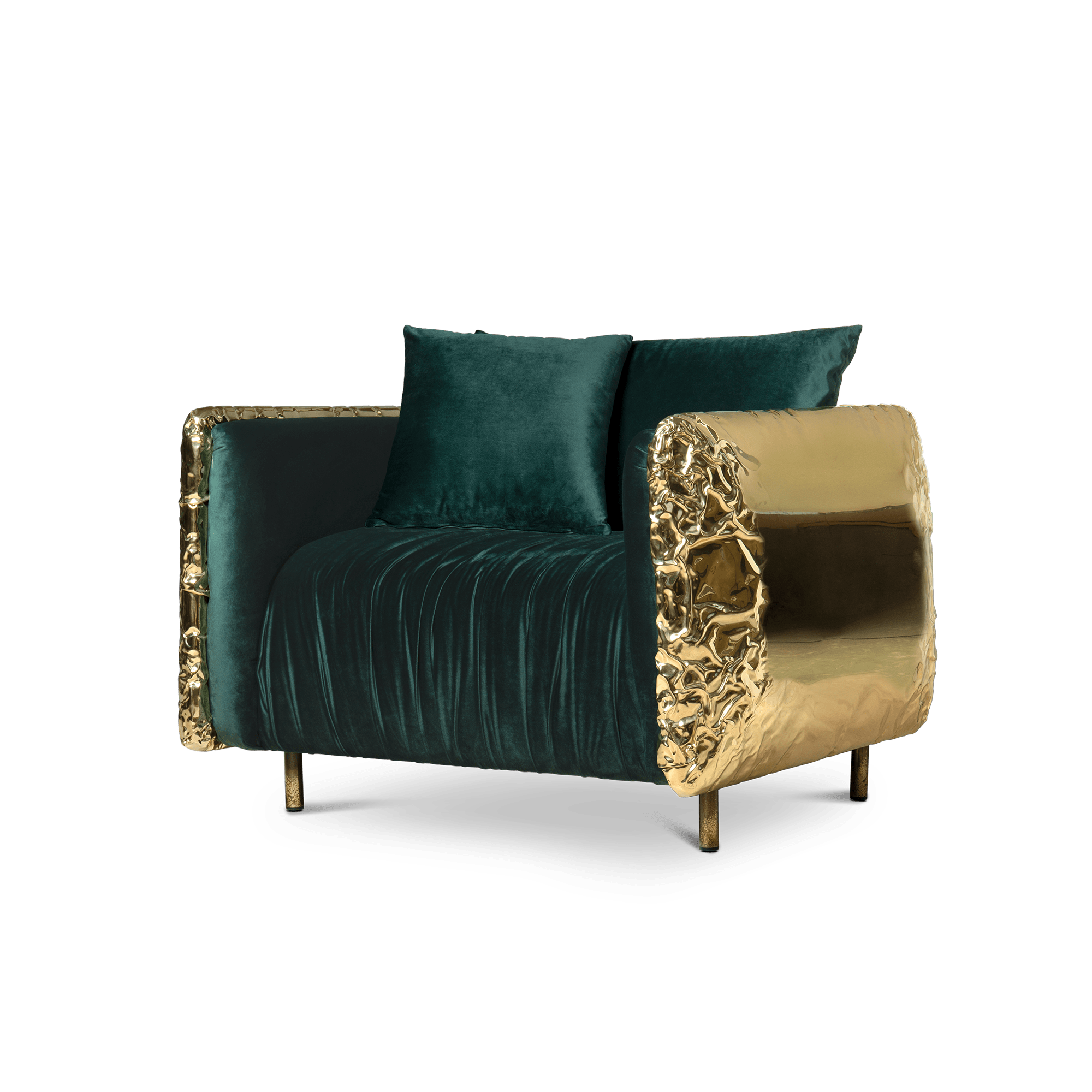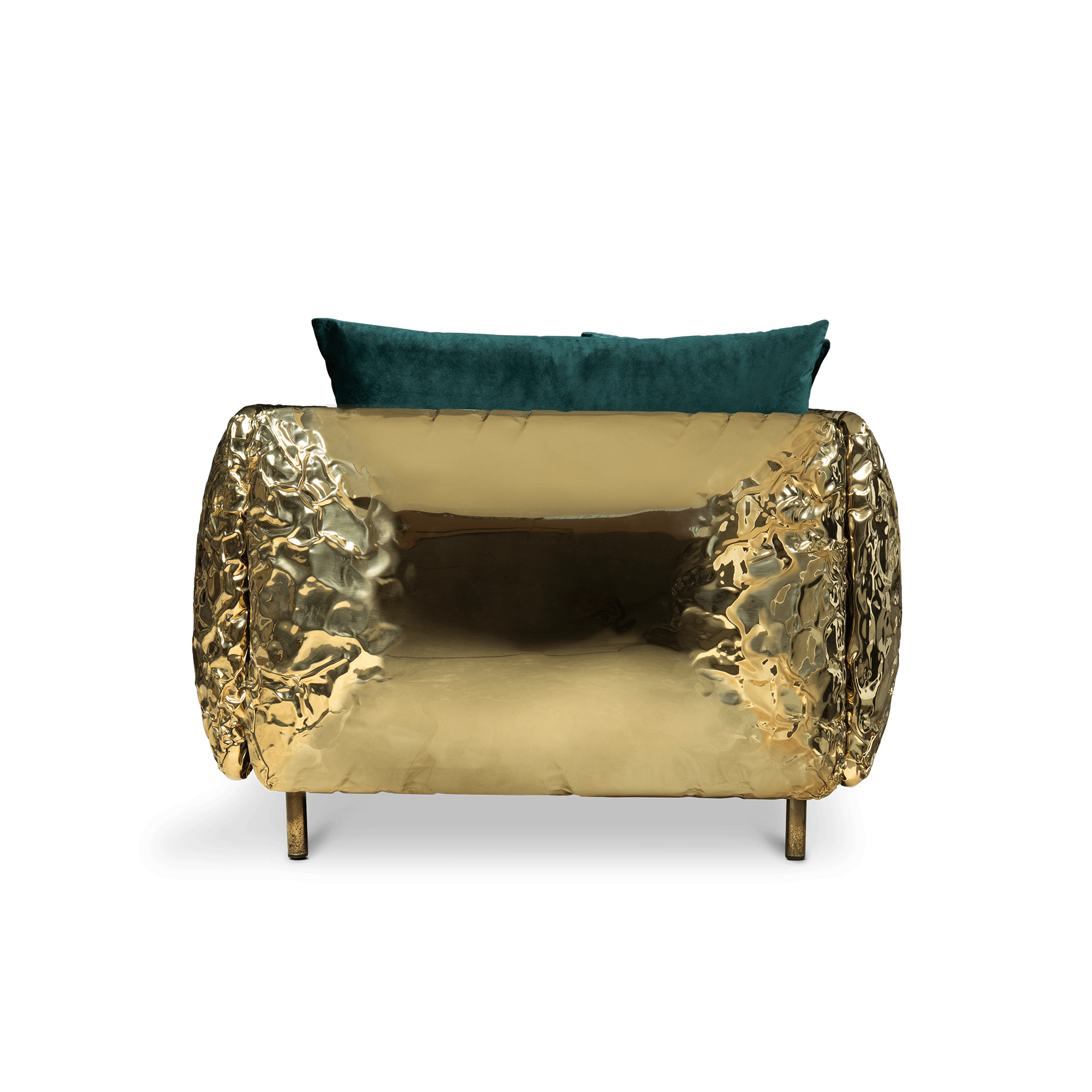 Imperfectio modern armchair is the expression of imperfect aesthetic, the appeal of authentic art that is truer to life. An accent armchair that praises artisanal work as the ultimate form of art that is quite intentionally imperfect. Through its unique existence and shapes, the modern armchair determines its history. The irregularities and flaws over the manual hammered brass expose the beauty of imperfection. Some parts are roughly asymmetrical at the surface yet comfortable and smooth in a peculiar way to excite a desire for complementing your living room.