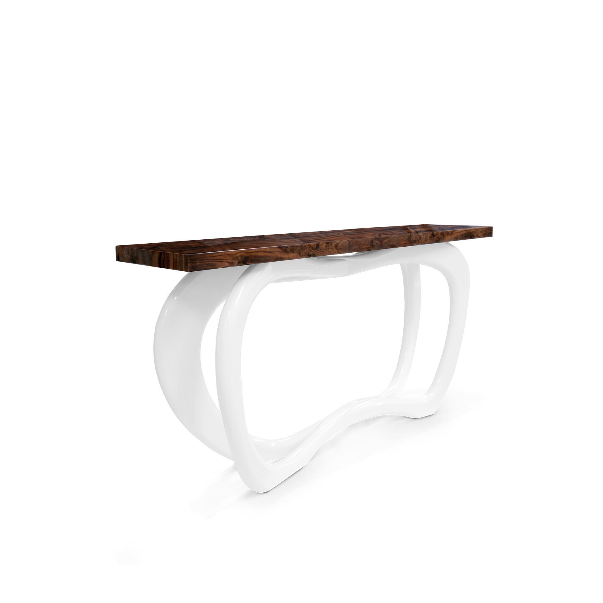 Boca do Lobo’s furniture exhales style, grace and luxury and this is certainly the case for Infinity console, a fascinating and exclusive piece, proven to be impressive and eye-catching through its sinuous and elegant lines. Infinity holds a shimmering aura that gets a classy touch to any living area. Stunning in either modern or classic entrance halls and a great addition to any living room decoration, this prodigious piece has a striking geometric mosaic wood veneer top and a copper leaf base finished with high gloss varnish.
