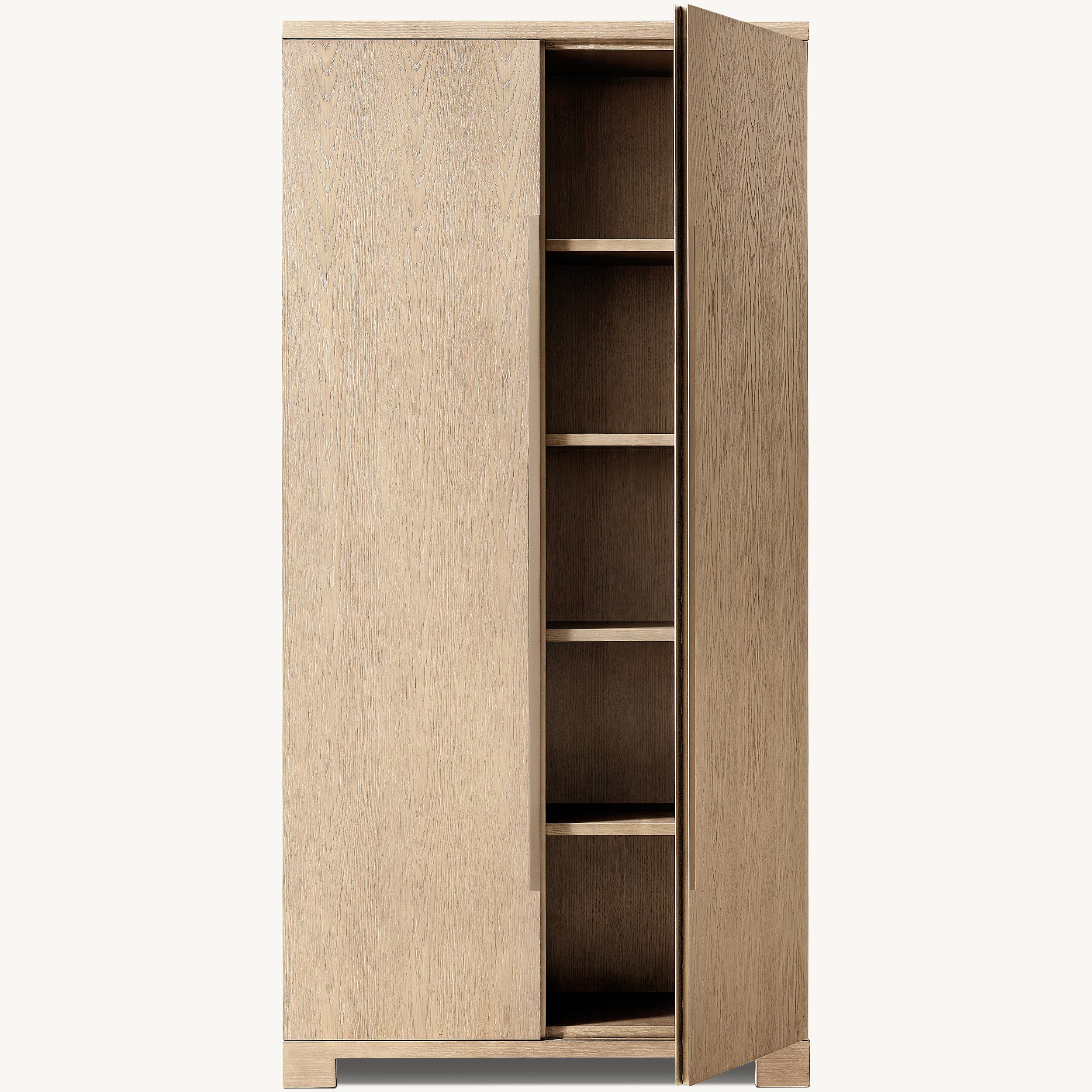 Cerused finish is achieved through an intensive, multistep process in which oak is wire brushed to highlight its distinctive cathedral cut grain