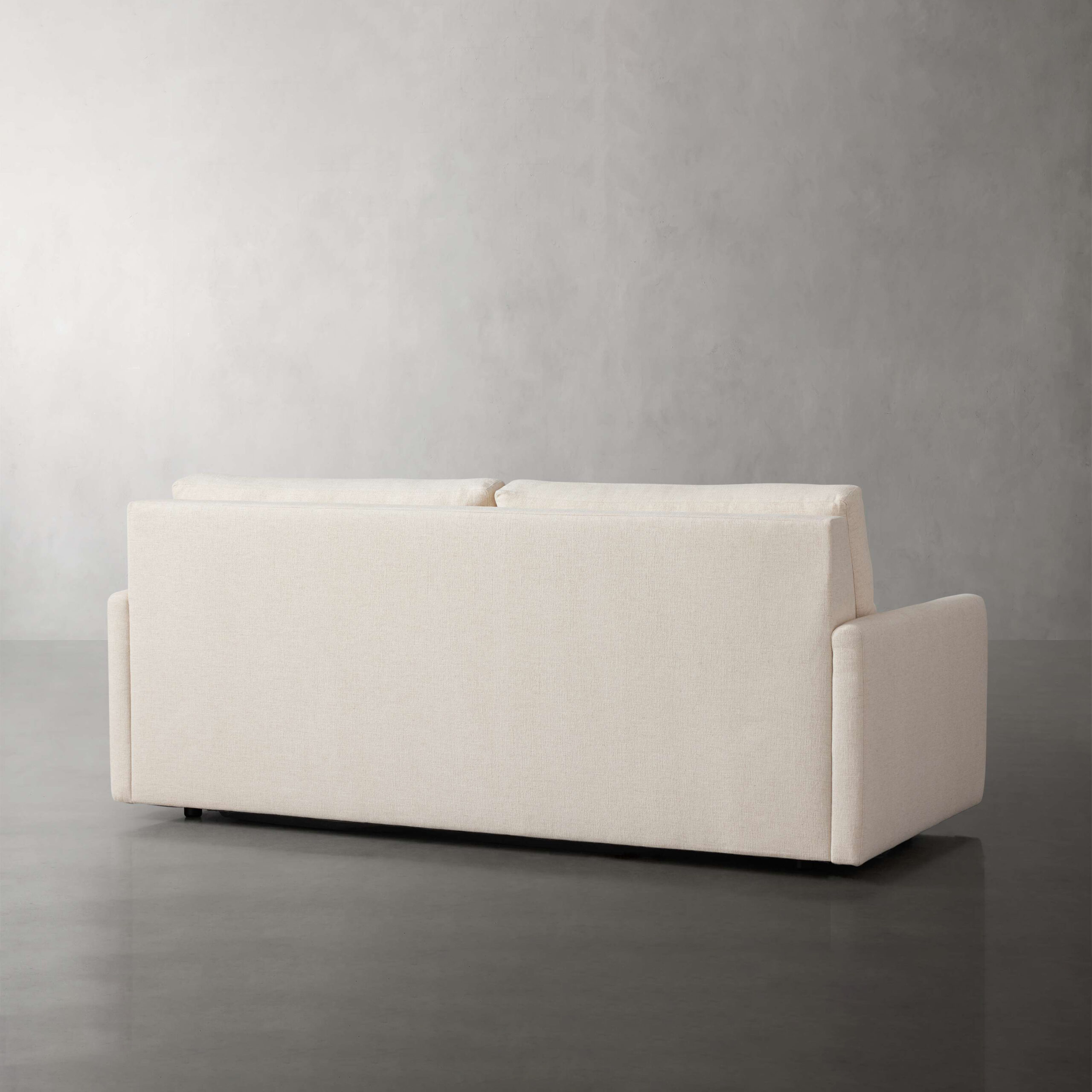 Extended length of the sofa and sleeper is 86″. When opened, it takes up 9″ less floor space than a conventional sleeper.