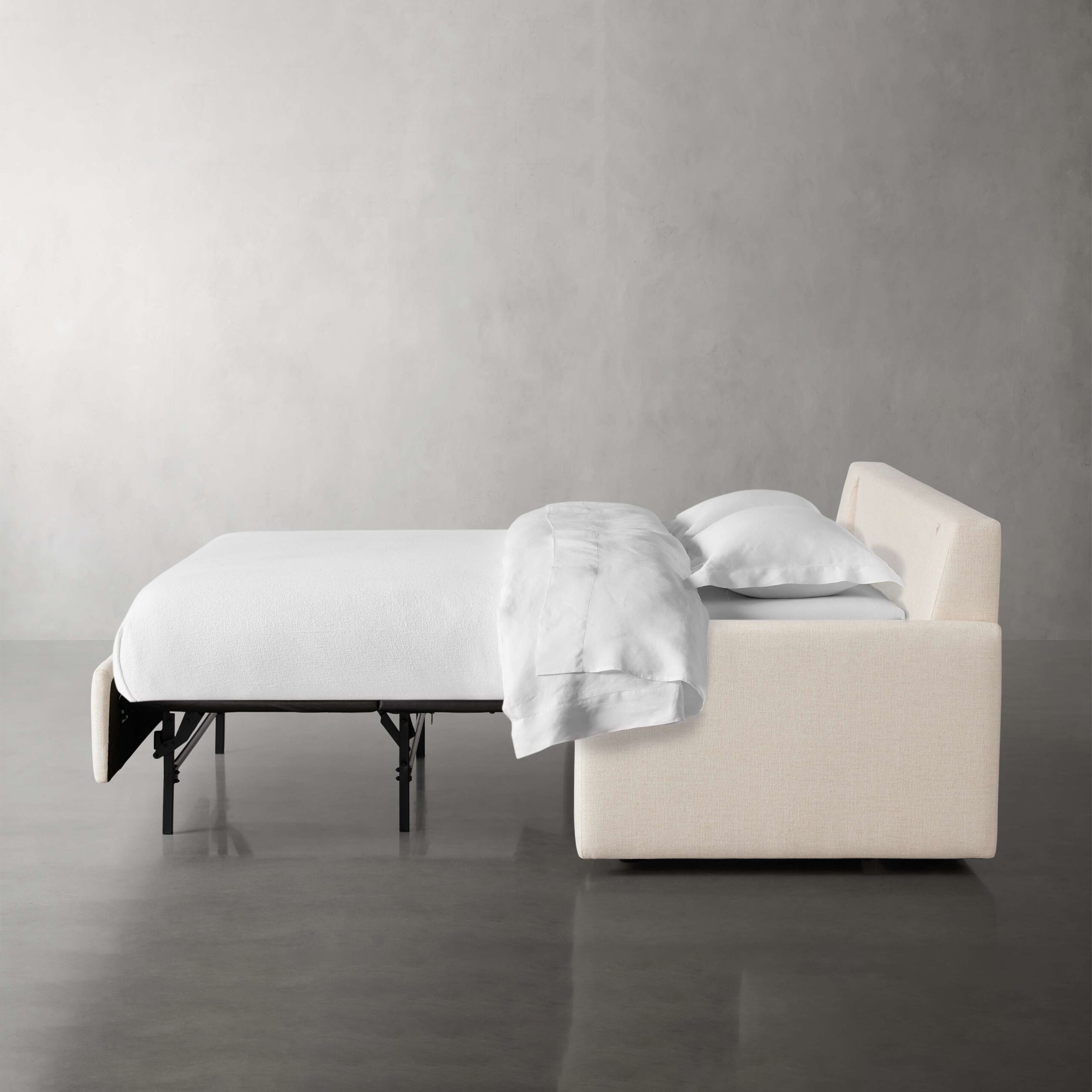 Our luxury sleeper sofa features a patented, easy-to-use pull-out mechanism. Click to see how easy it is to open and close here.