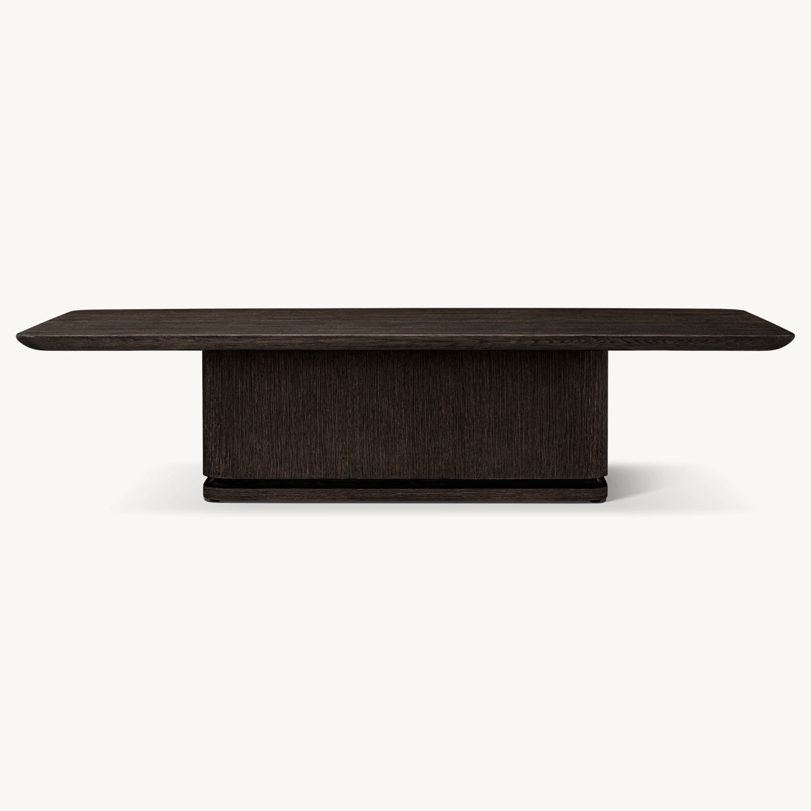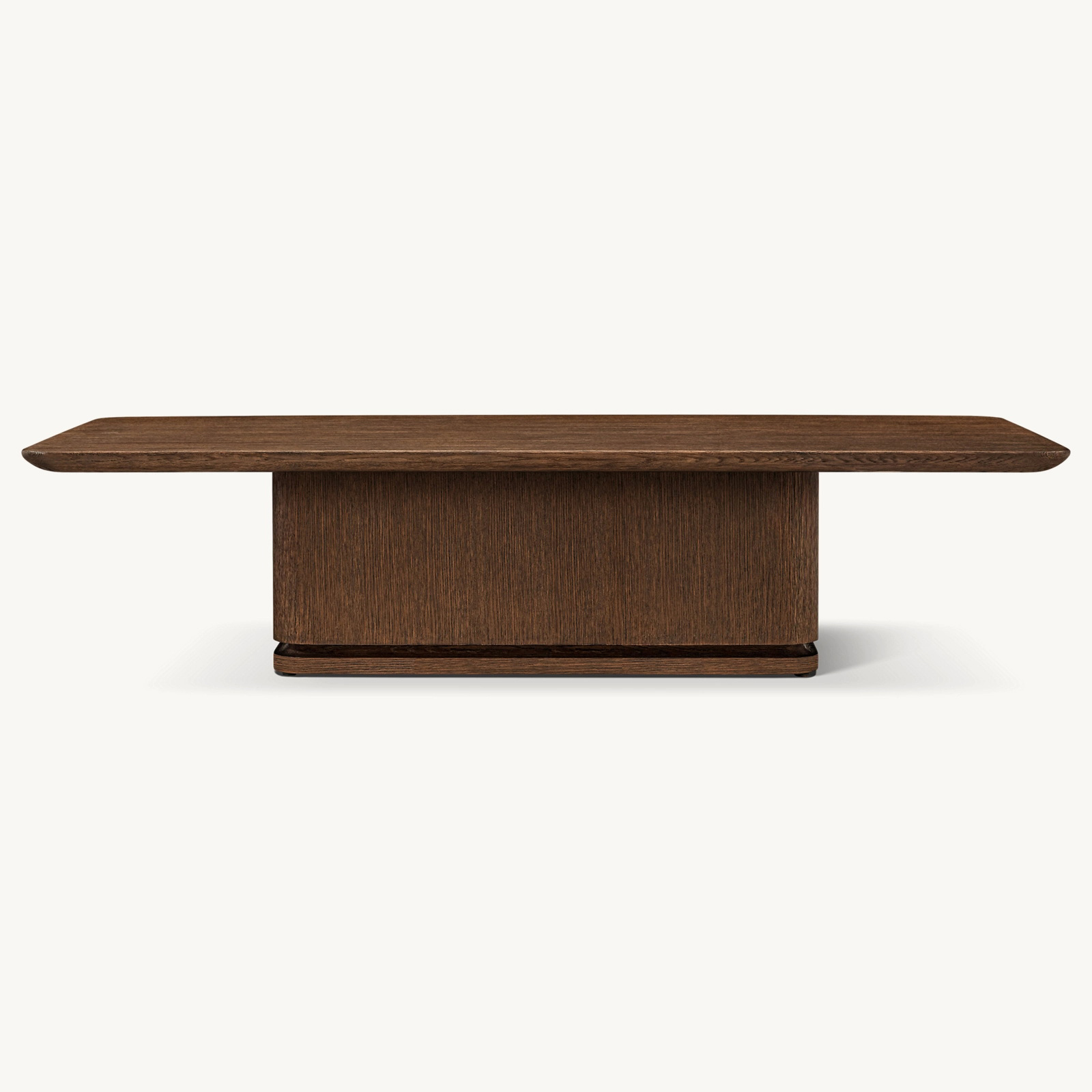 Finish is achieved through an intensive, multistep process in which oak is wire brushed to highlight its rich grain