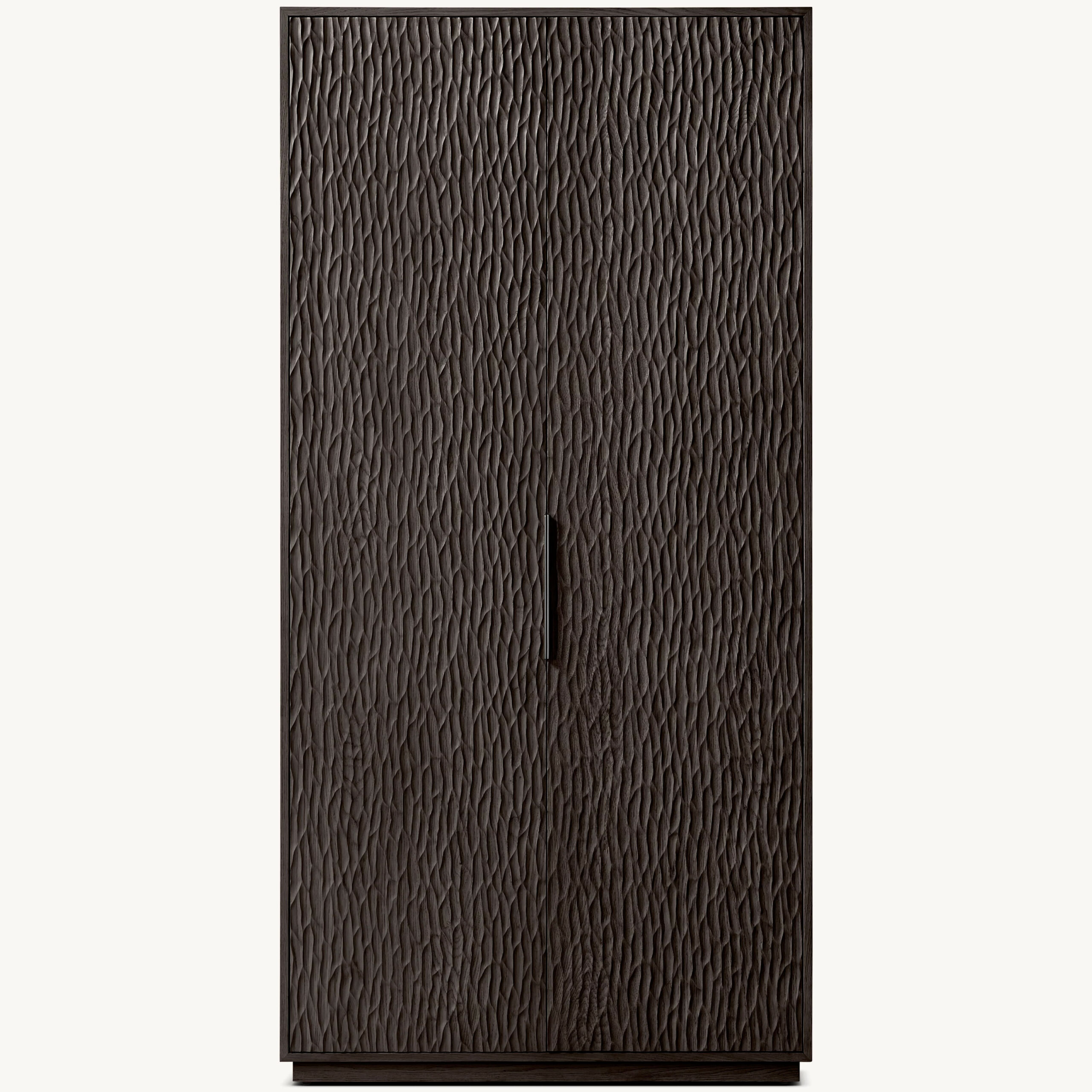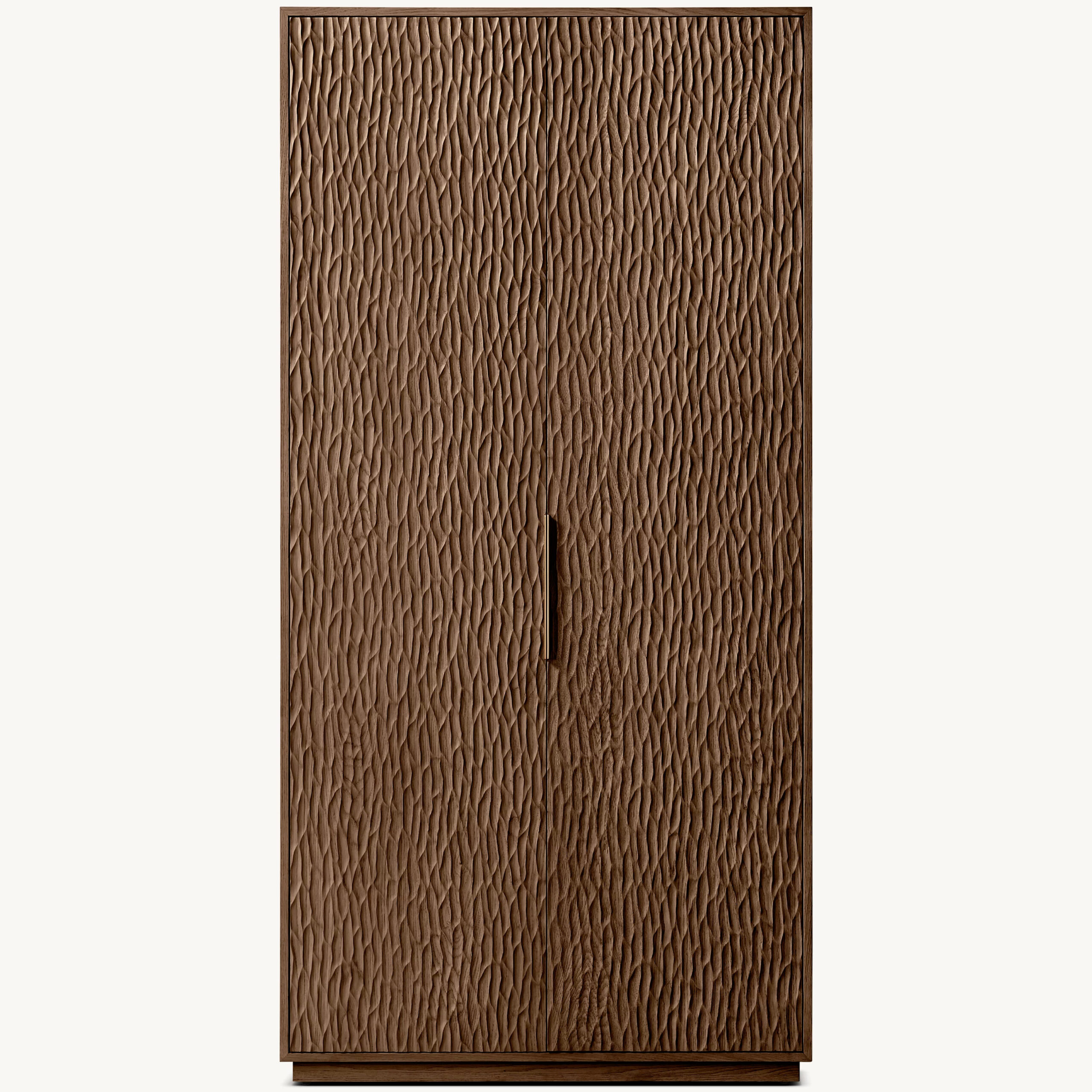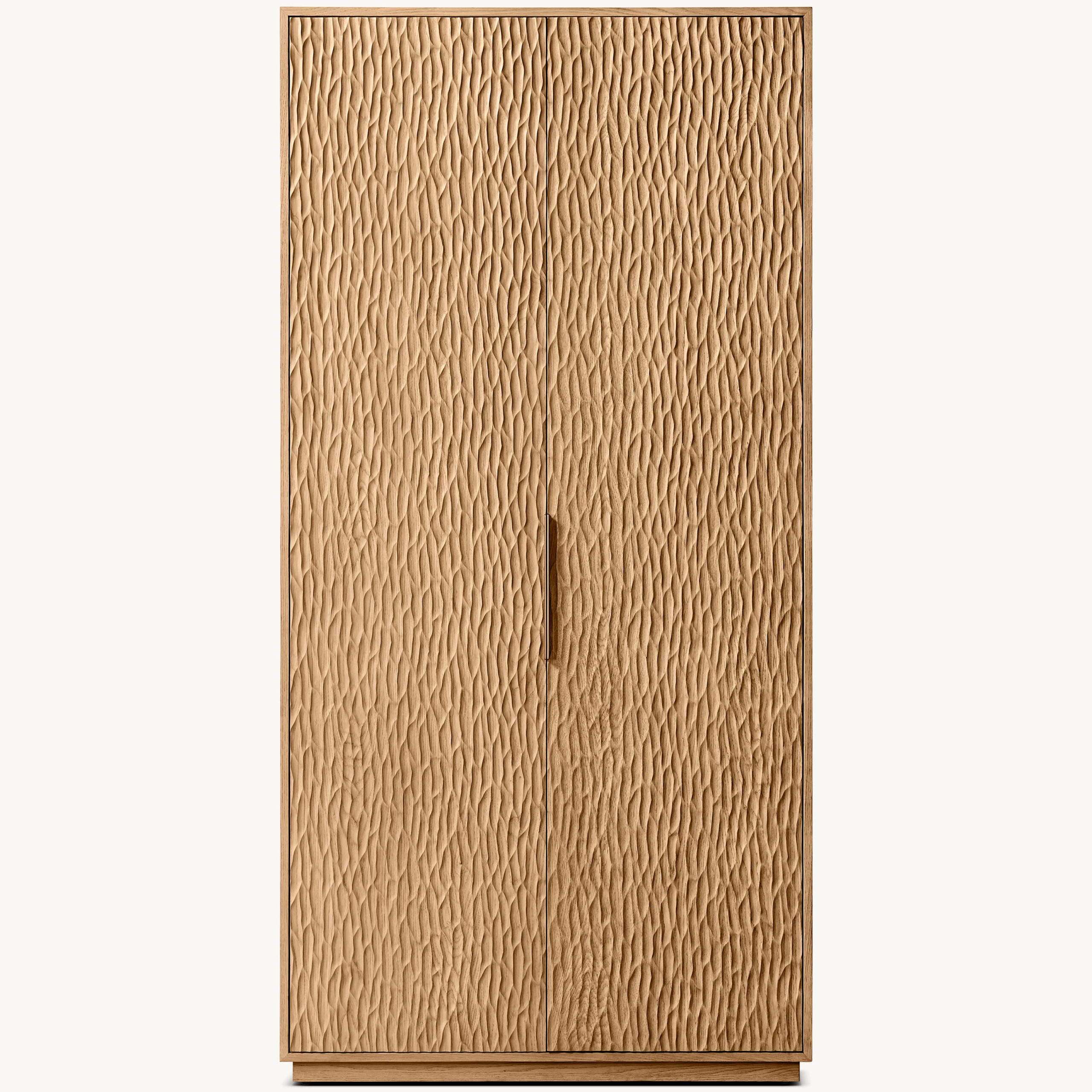 Oak door fronts feature a deeply textured, chiseled surface in a meticulously crafted pattern
