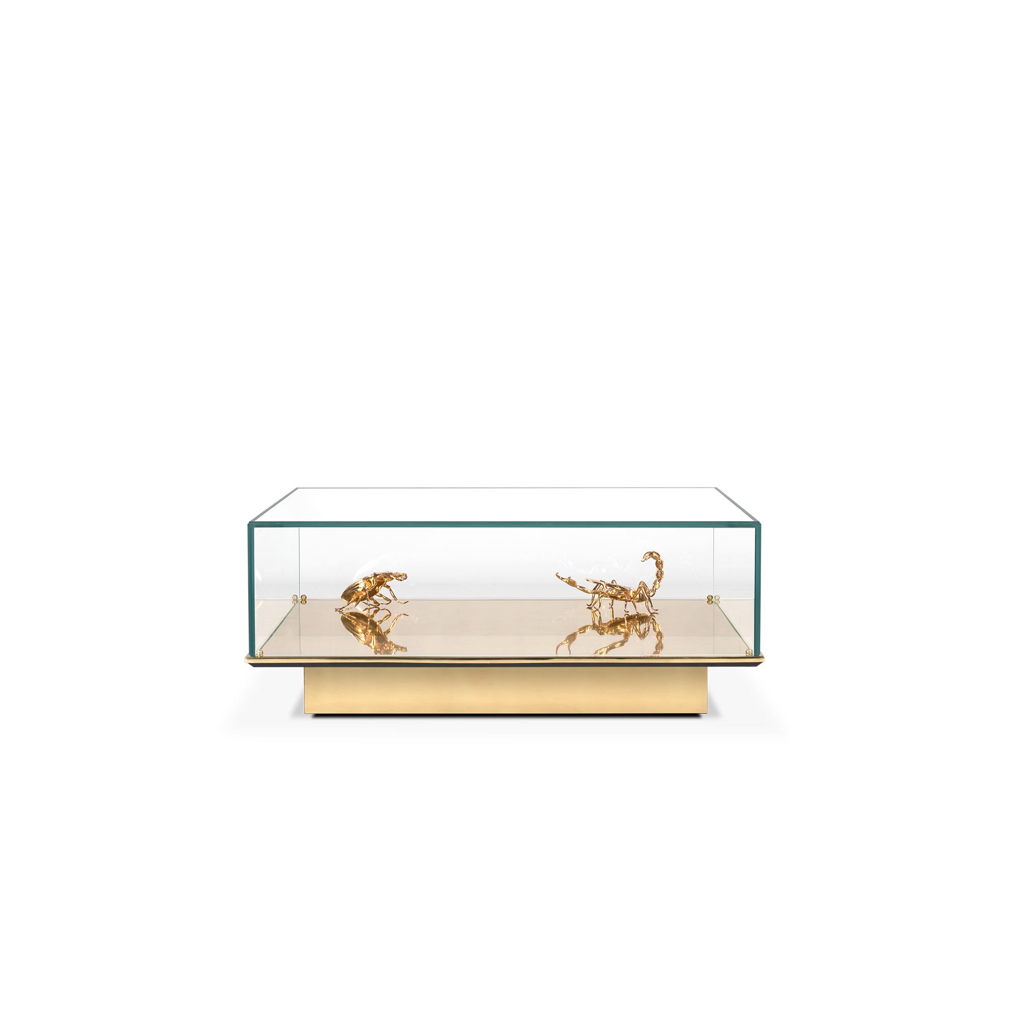 Table 1: Gold Plated Brass, Glass. Decorative elements: 1x Pollock Beatle 2x Scorpion – Gold Plated Brass.