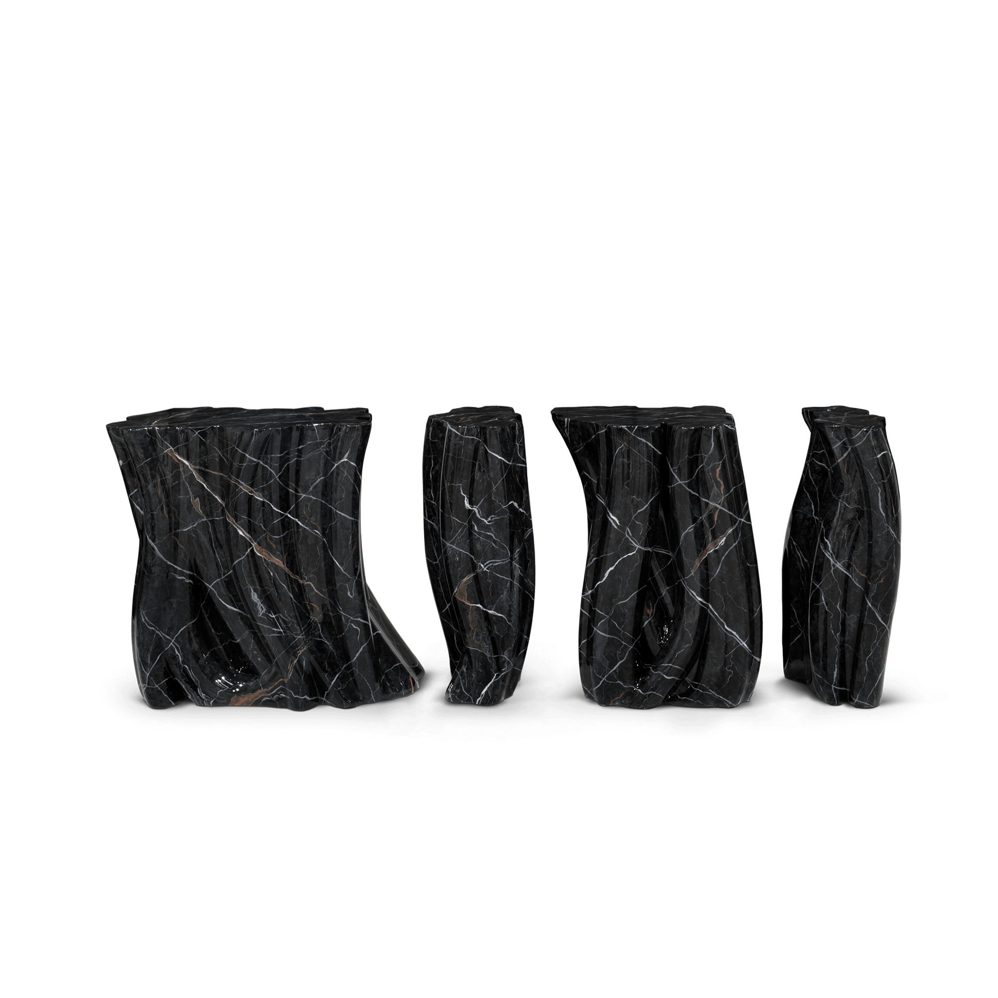 A demonstration of both imagination and strong design skills, the Monochrome console table is a remarkable piece that stands out in any room or setting. Perfect for contemporary homes, this console embraces delicate craftsmanship and embodies leading-edge design, through its daring curvy shapes and dark tones.Carefully built from resin, the Monochrome is composed of three separate modules, embellished with handpainted faux-marble as a result of advanced experimentations, and finished with a high gloss varnish coat. An avant-garde console that conveys a seductive and fearless attitude due to its unique and challenging design.