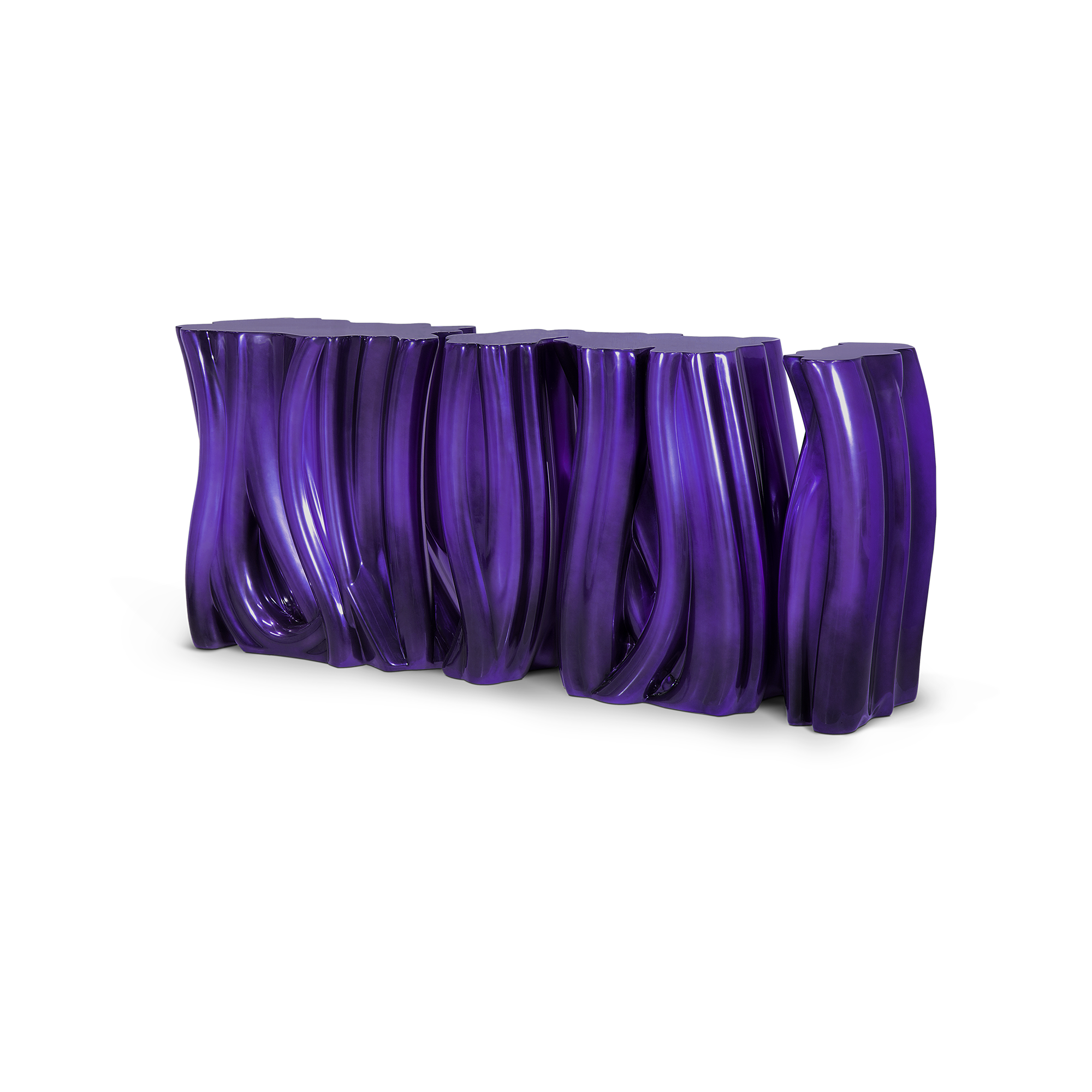 Carefully built from resin, the Monochrome is composed by three separate modules, featuring a unique and challenging design. Available in audacious purple or blue lacquer finish with a high gloss varnish coat, the avant-garde console conveys a seductive and fearless attitude.