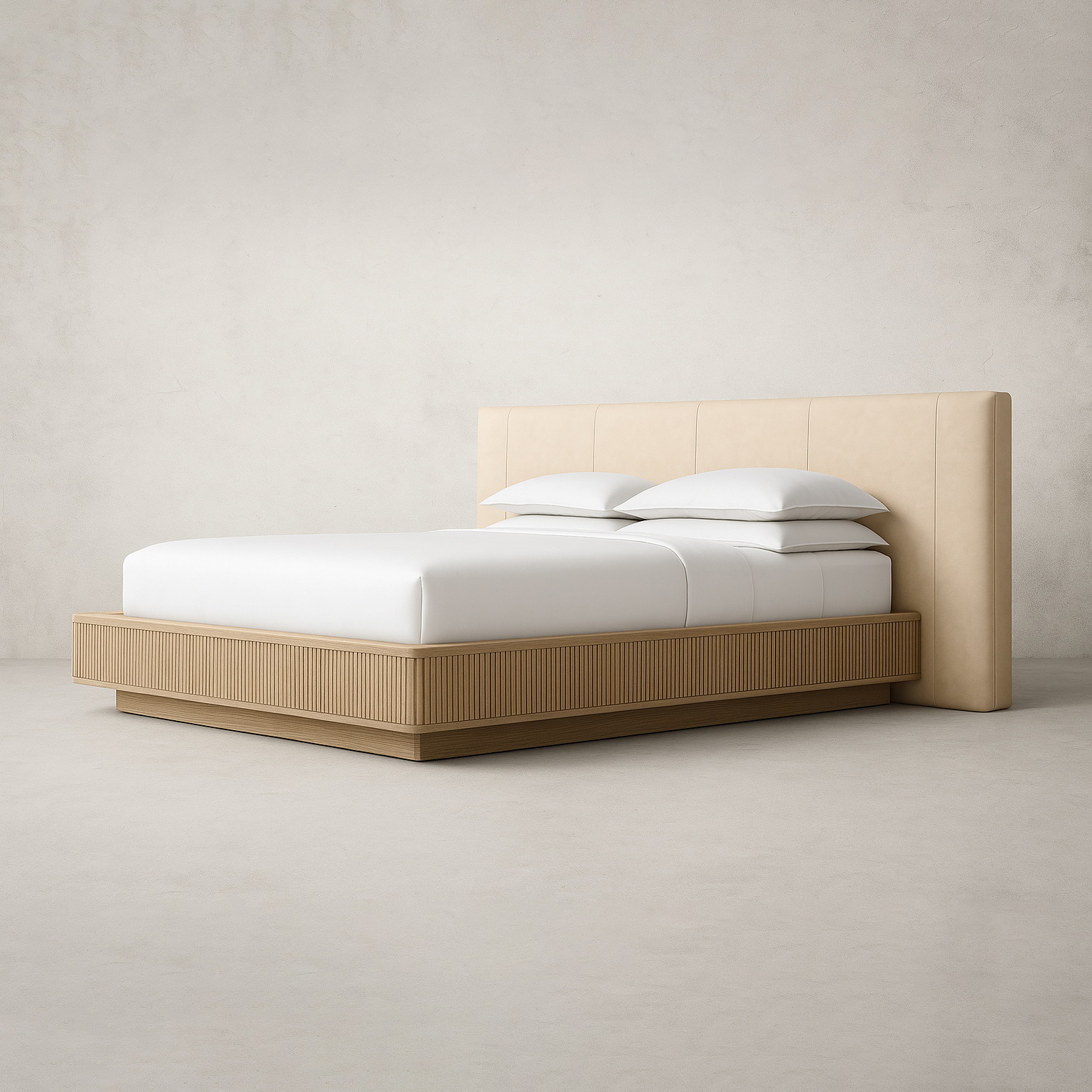 Cord cutout in plinth base on back side of headboard for wire management