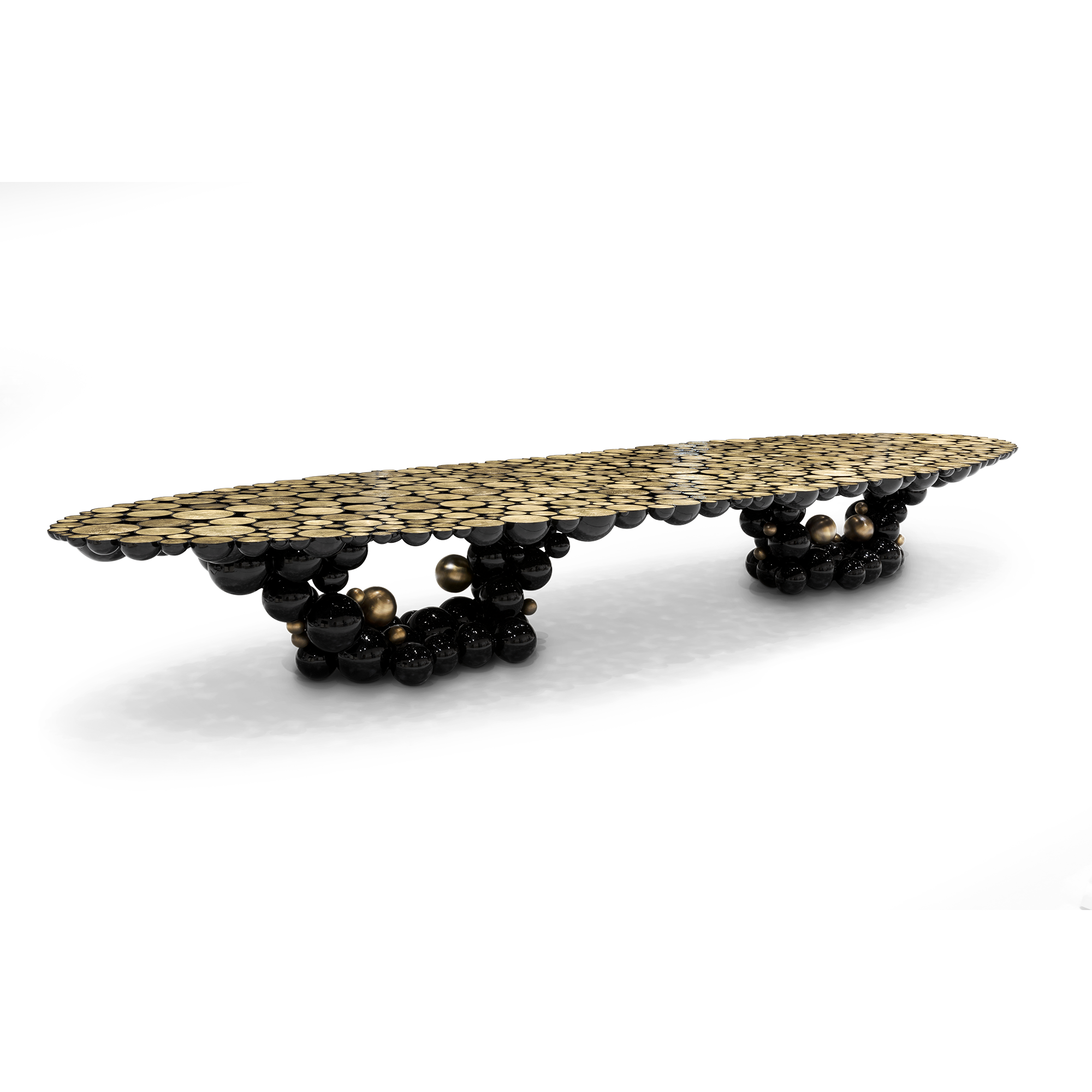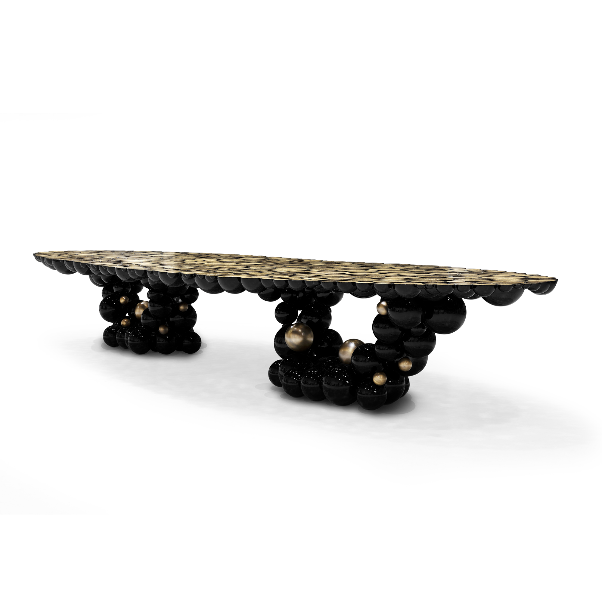 The Newton dining table is a testament to defying the laws of physics. Crafted with the ancient art of casting metal, where molten metal transforms into spheres and semi-spheres, this table transcends the ordinary. A contemporary masterpiece that embraces its cultural legacy while propelling towards the future, the Newton dining table stays at the forefront of the design scene. It’s not just a table; it’s a genuine expression of exclusivity and the pinnacle of high collectable craftsmanship. Elevate your dining experience with this exceptional piece of art.
