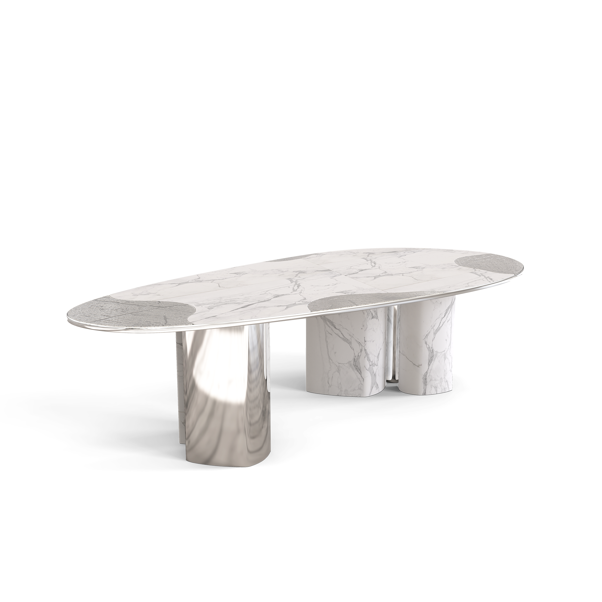 Introducing the Ophelia dining tables, a piece of furniture that lives up to its name. Derived from the Greek word ‘opheleo’, which means ‘she helps’, Ophelia is designed to help you take your interior aesthetics to new heights. This beautifully crafted dining table isn’t just about functionality; it’s a design companion that combines modern design with the natural beauty of marble and brass. Its versatile design ensures that it’s not just a table, but a multifunctional addition that elevates any dining room.