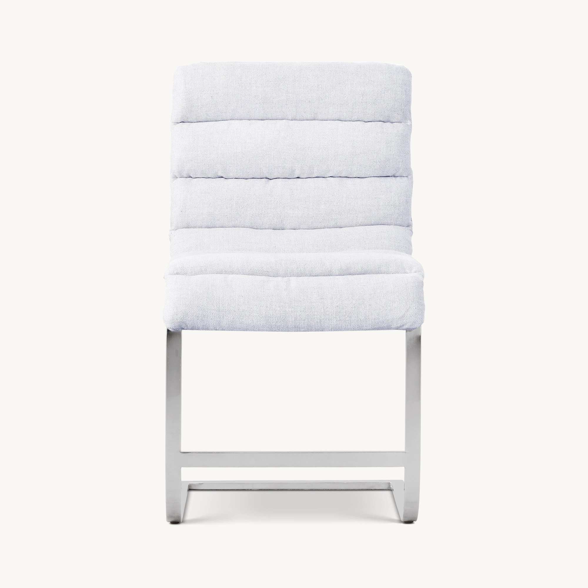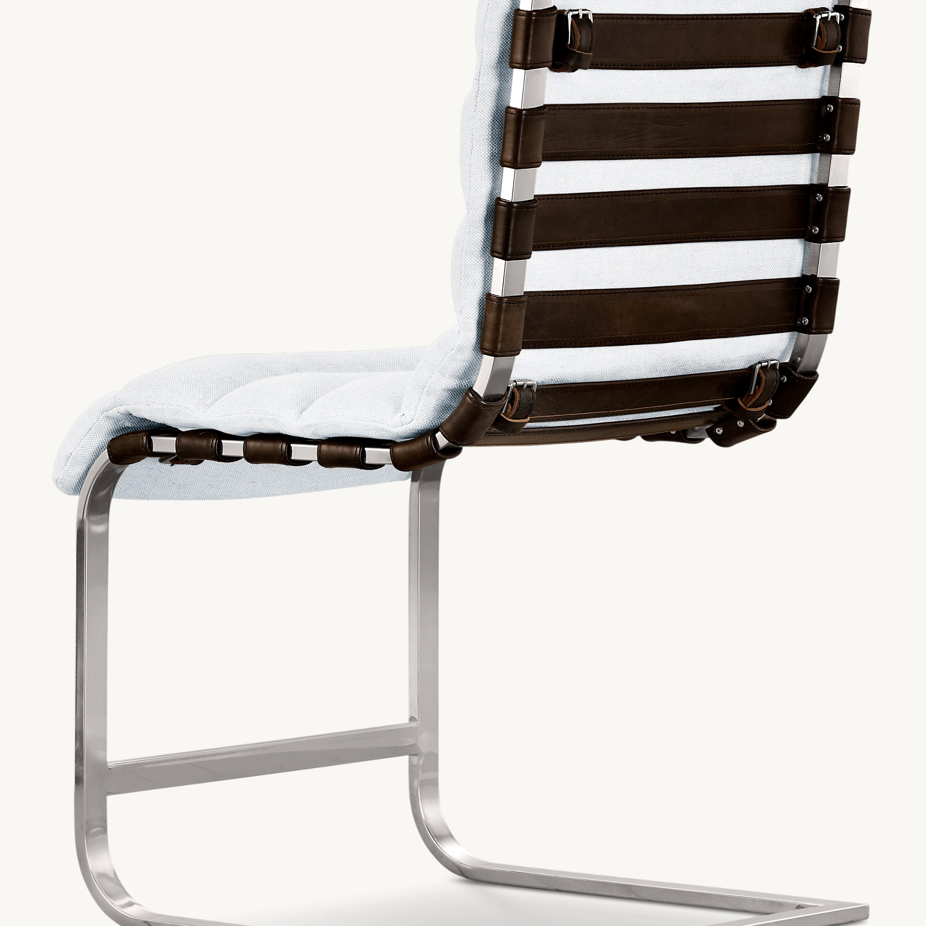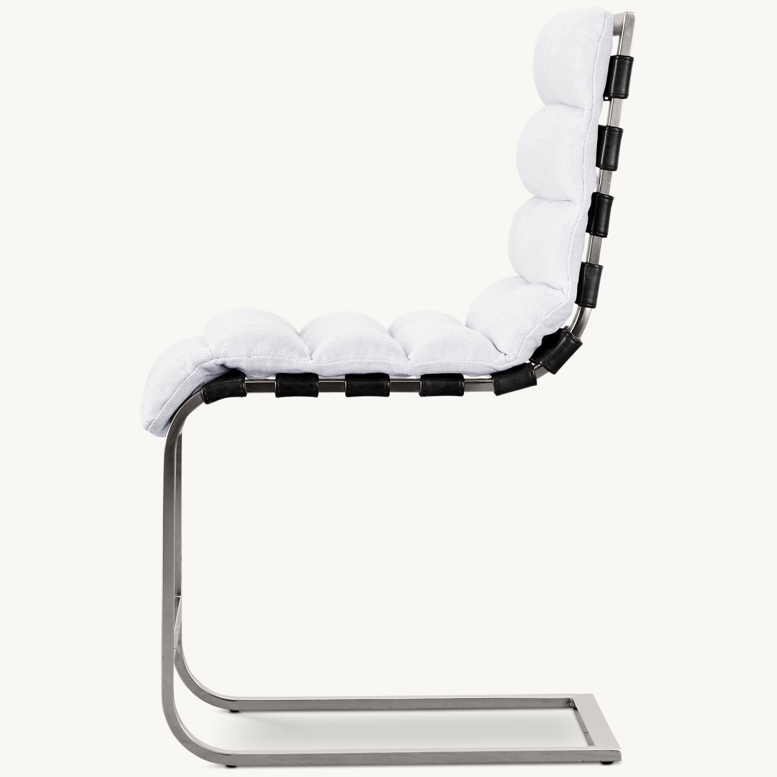 Channel-stitched, upholstered seat cushion suspended by straps of Burnham Glove leather