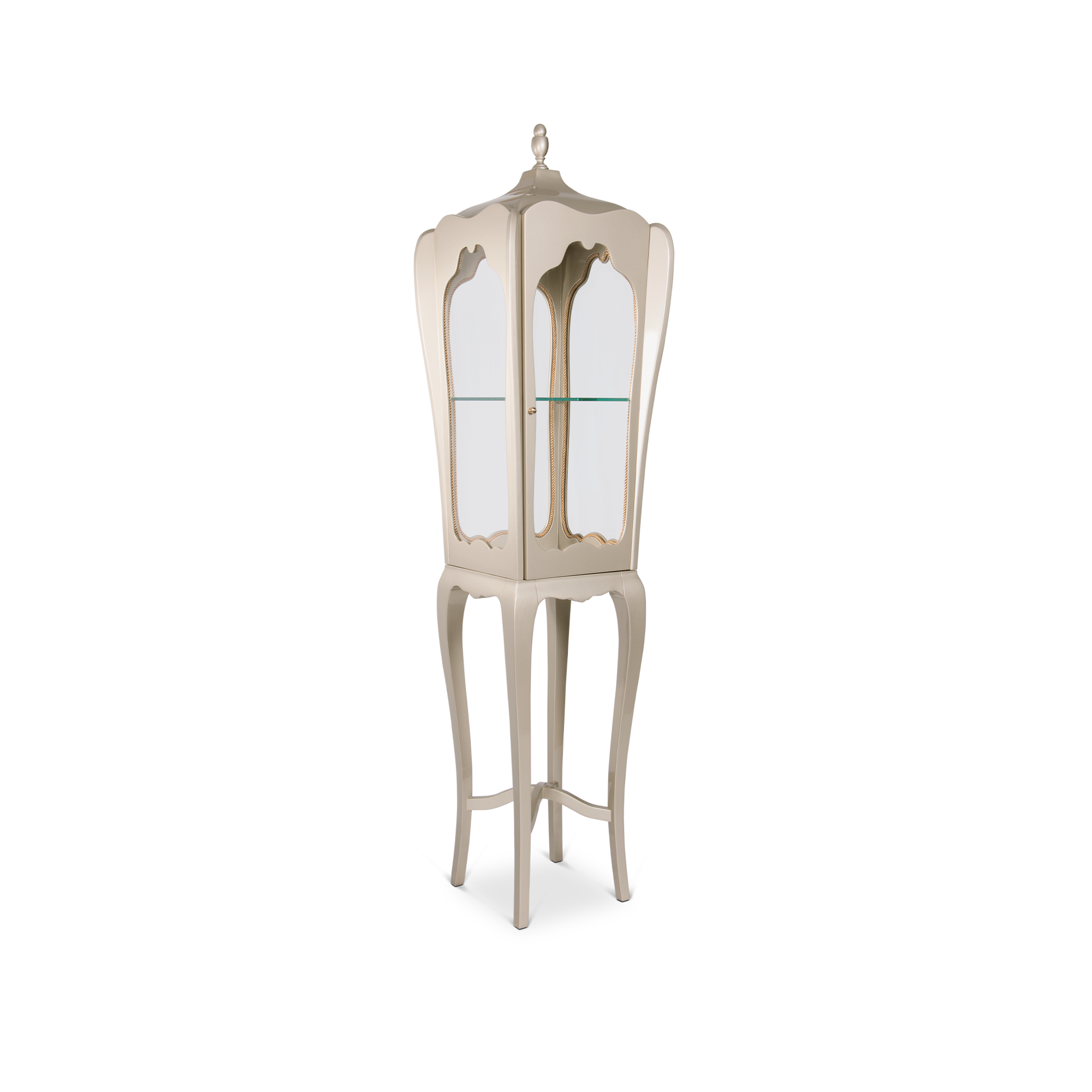 A reinterpretation of 17th-century French Style glass display cases of countryside Chateaux, the Palatino Slim Display Cabinet is an elegant storage piece whose lines easily capture the imagination and holds the best things in life.