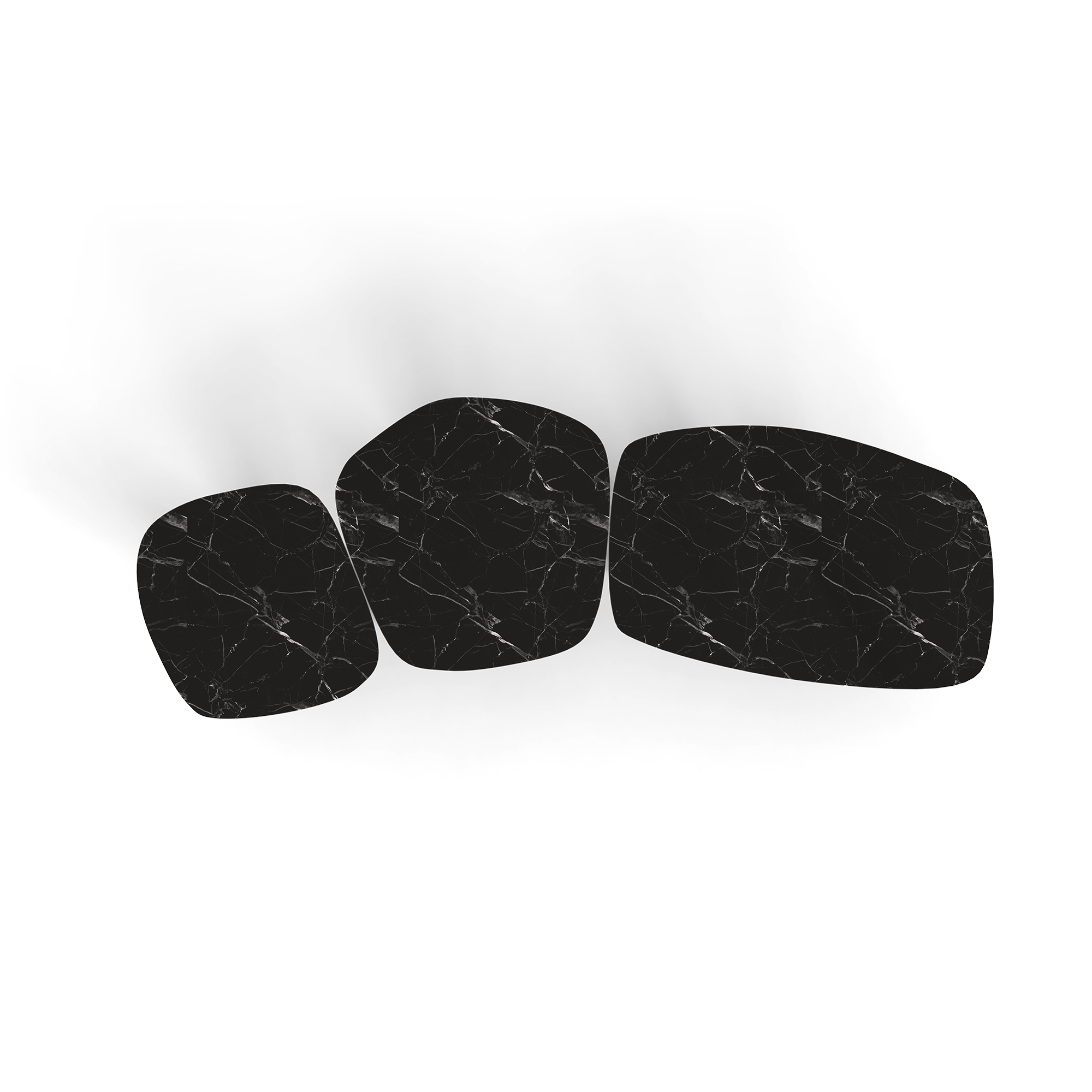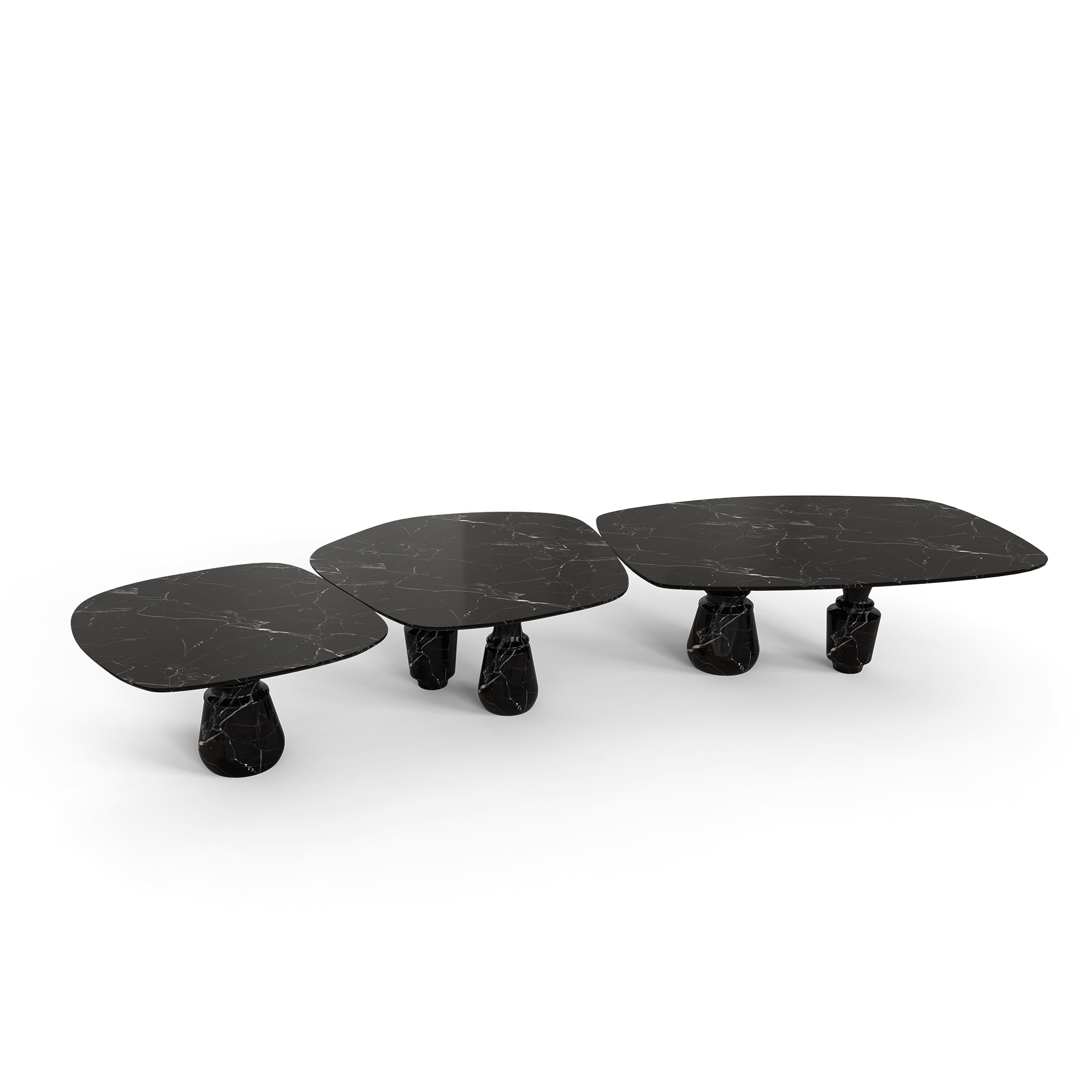 Composed of three independent pieces in black Nero Marquina marble, detailed pedestal bases in turned marble.