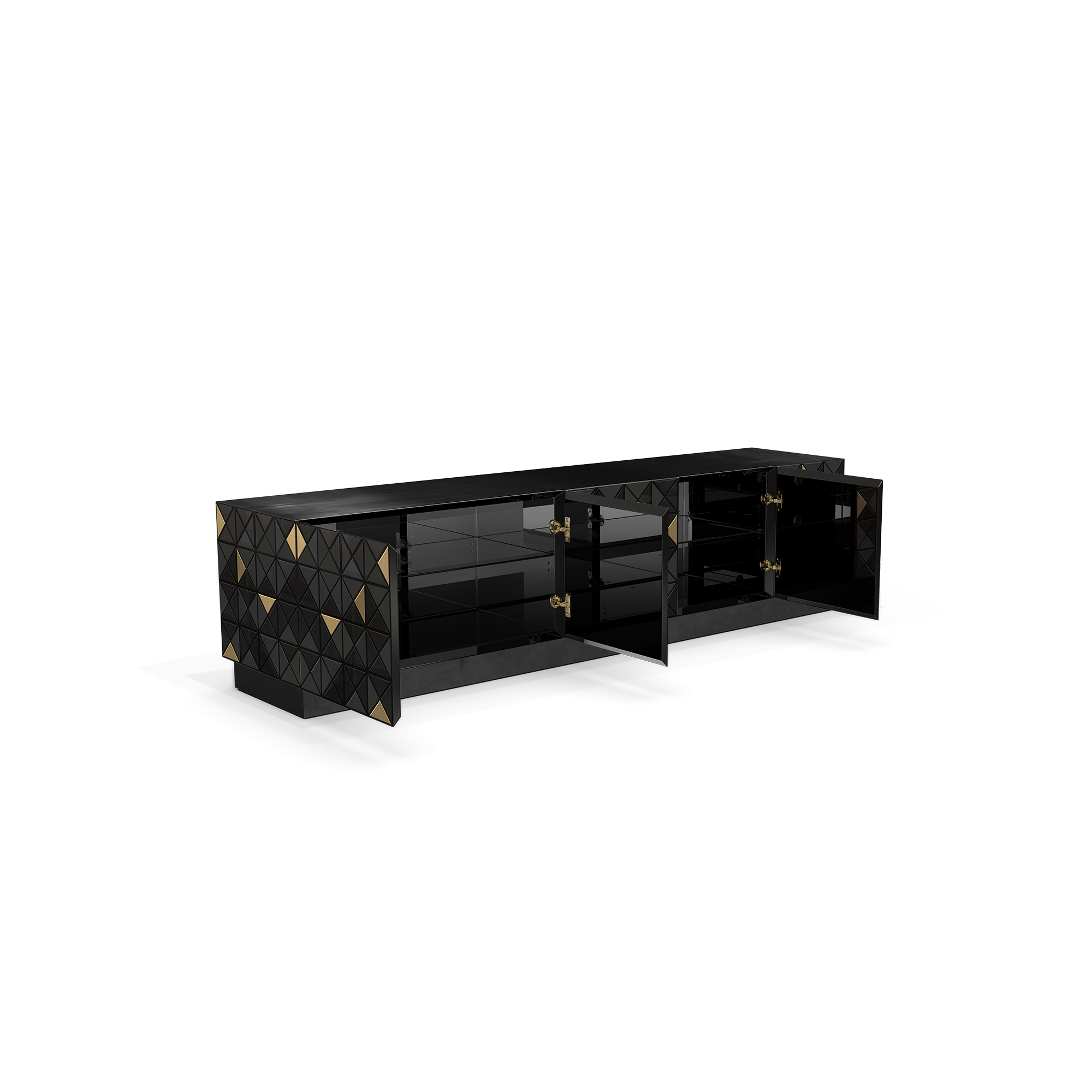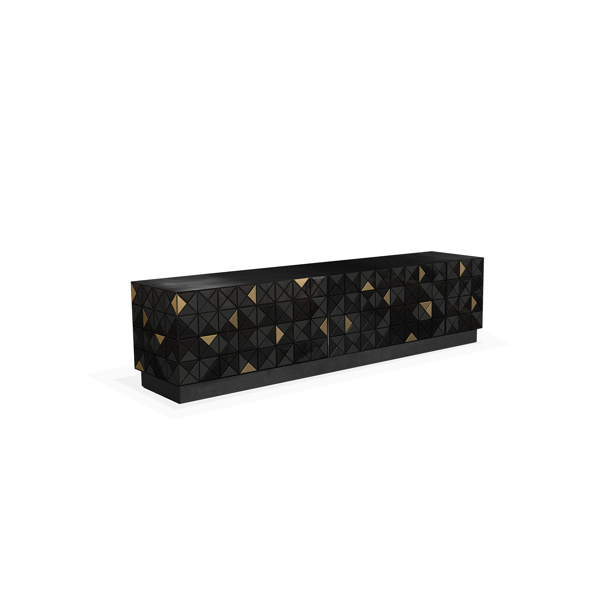 Iconic and unparalleled, the Pixel TV Cabinet introduces a groundbreaking work of pioneering design. This piece embodies the dedication and artistry of its creators, employing a variety of traditional production techniques to craft an avant-garde furniture piece that aligns with the digital age. Its playful character is evident in both shape and colour palette, challenging conventional design norms with the finest craftsmanship. Constructed with 1088 triangles, the upper part of the Pixel TV Cabinet plays with perception, combining exceptional materials with a black metal composition to give the cabinet a unique and striking design, making it a perfect addition to modern living spaces.