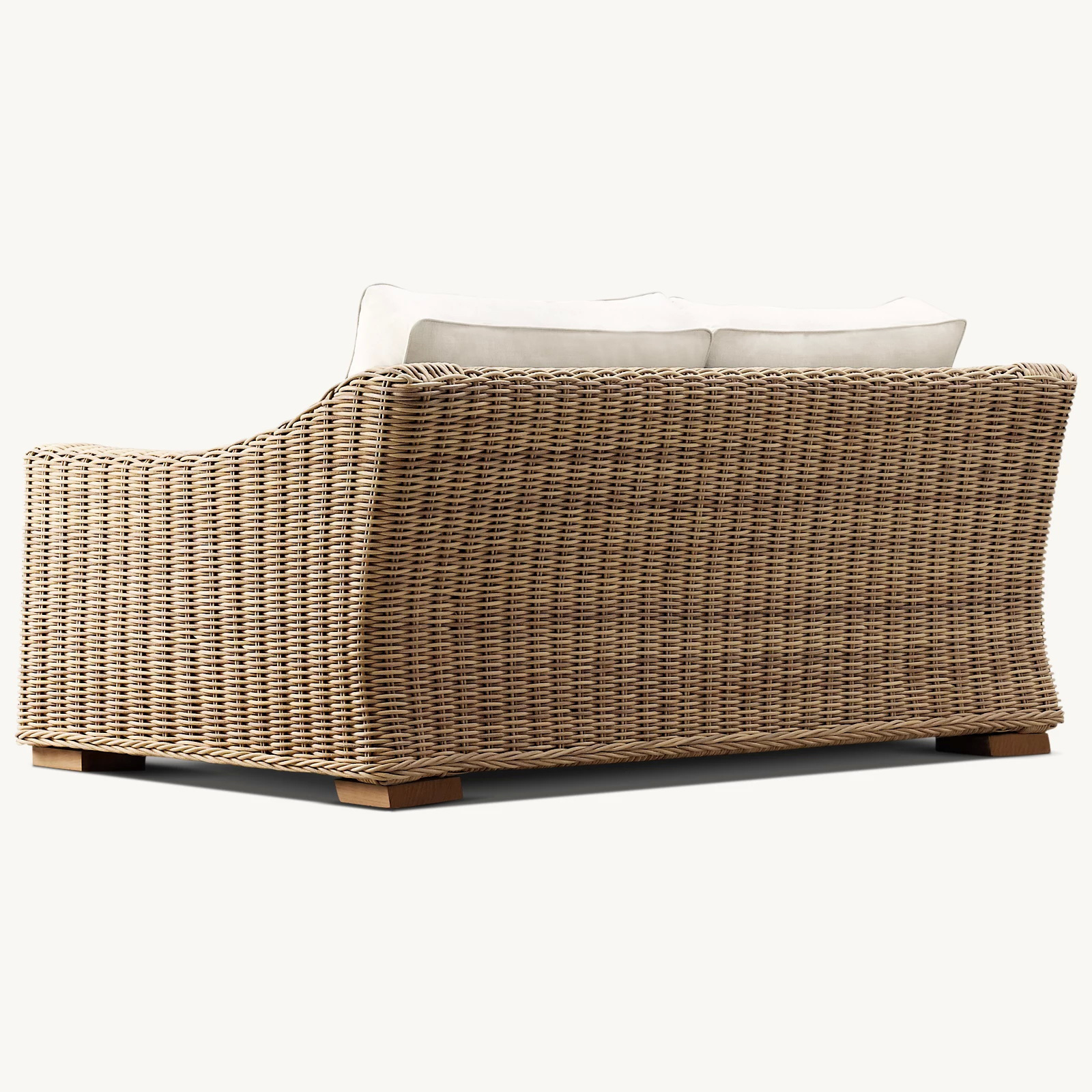 Crafted by skilled artisans, the Provence collection features handwoven all-weather resin wicker wrapped around a powdercoated aluminum frame. The feet are constructed of premium solid teak in a weathered finish.