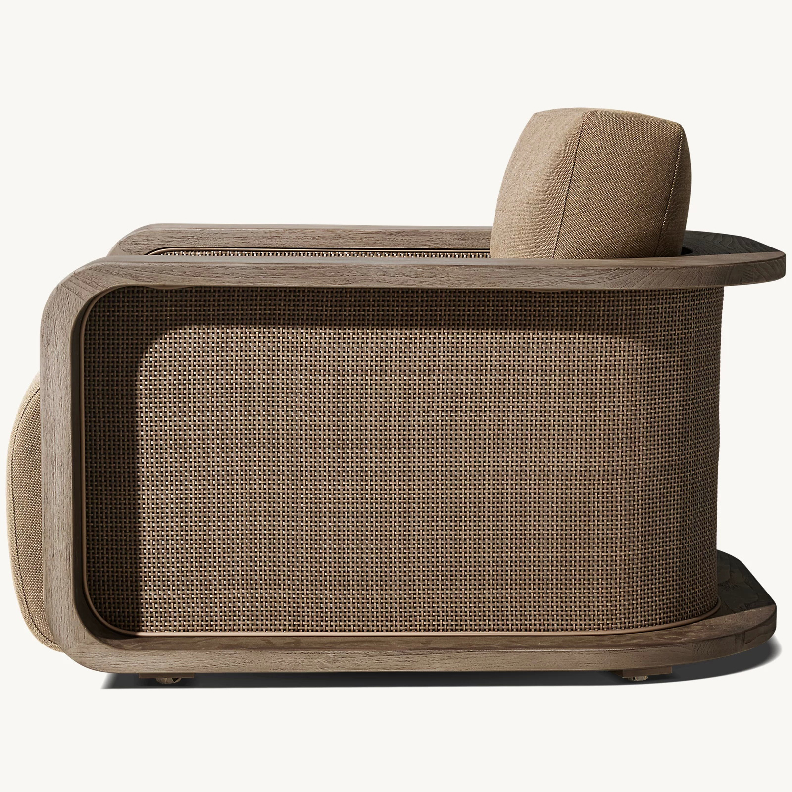 Handcrafted by Indonesian artisans from sustainably harvested premium solid teak, the Santiago collection features all-weather cane panels and a mix of traditional and modern teak joinery methods