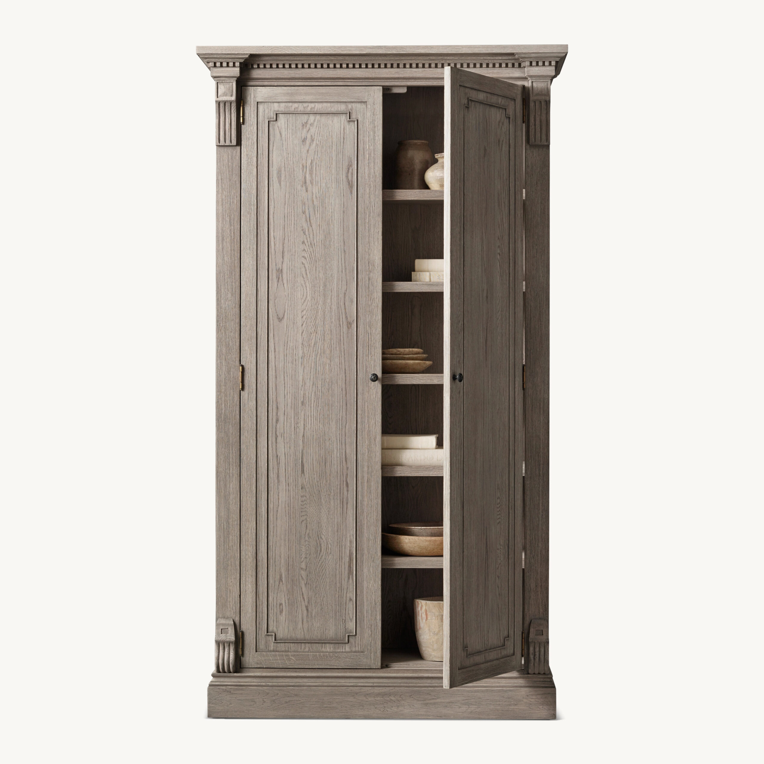 Antiqued Grey Oak finish features a textured, sandblasted surface; other finish options feature a smooth surface