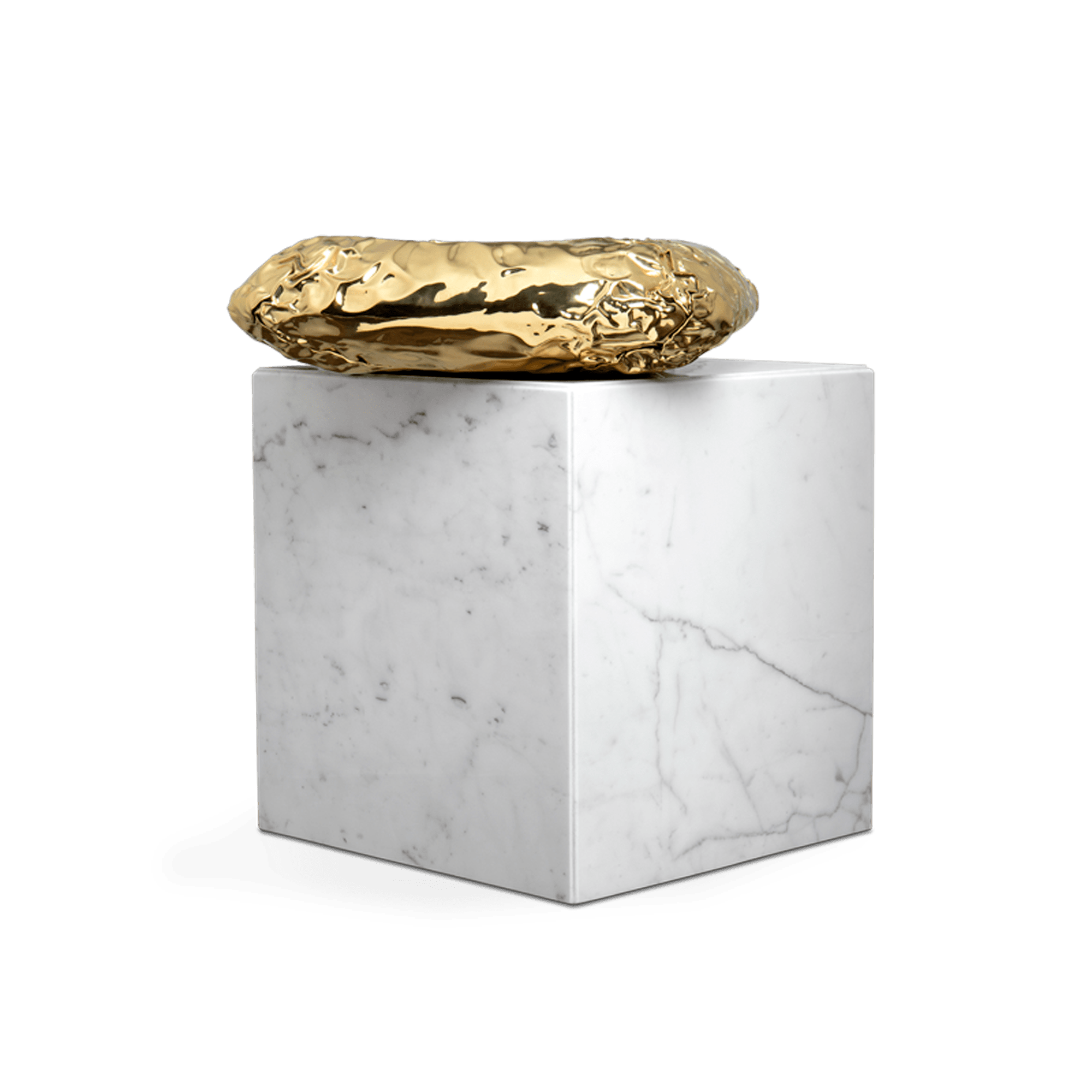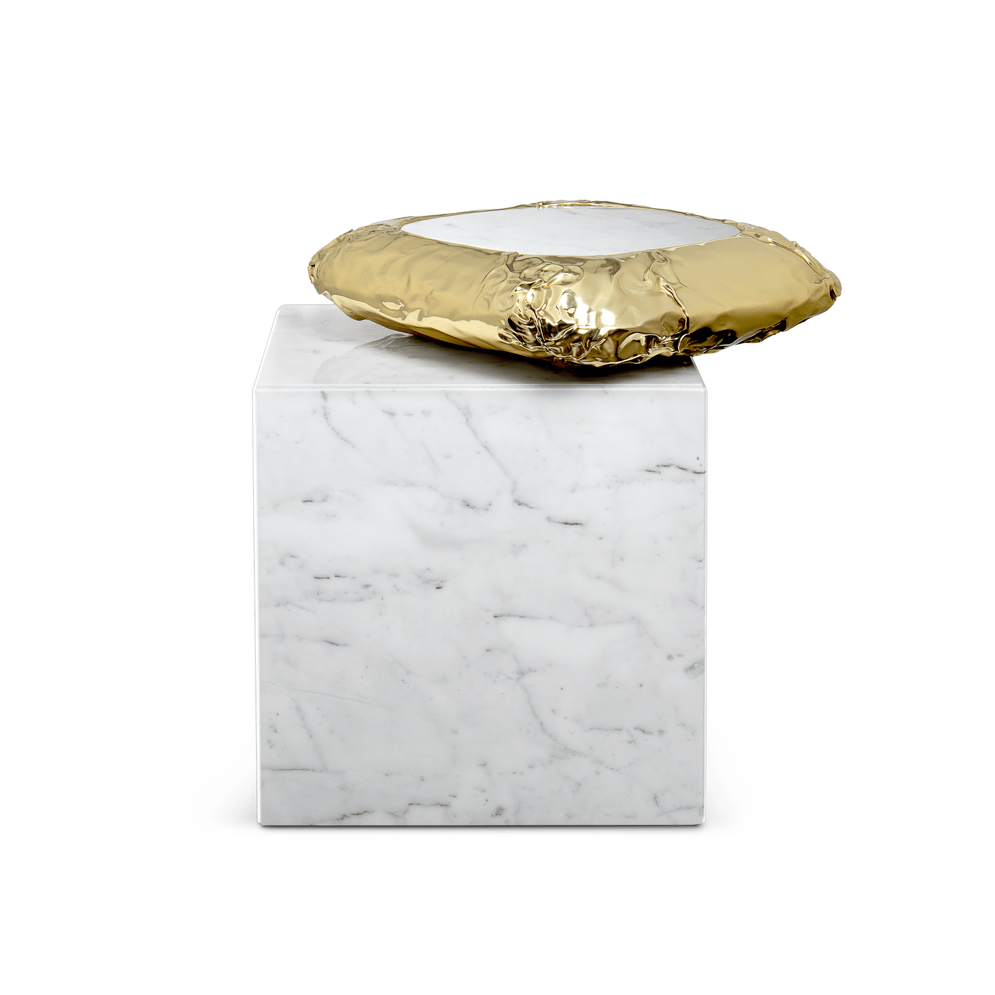 Finding inspiration in the prehistoric monument Stonehenge, positioned asymmetrically and composed by a striking variety of finishes and materials – brass and marble. This coffee table promises to elevate your living space to the next level. The metallic hues make an elegant contrast while beautifully combine and pay tribute to the Neolithic and Bronze Age.