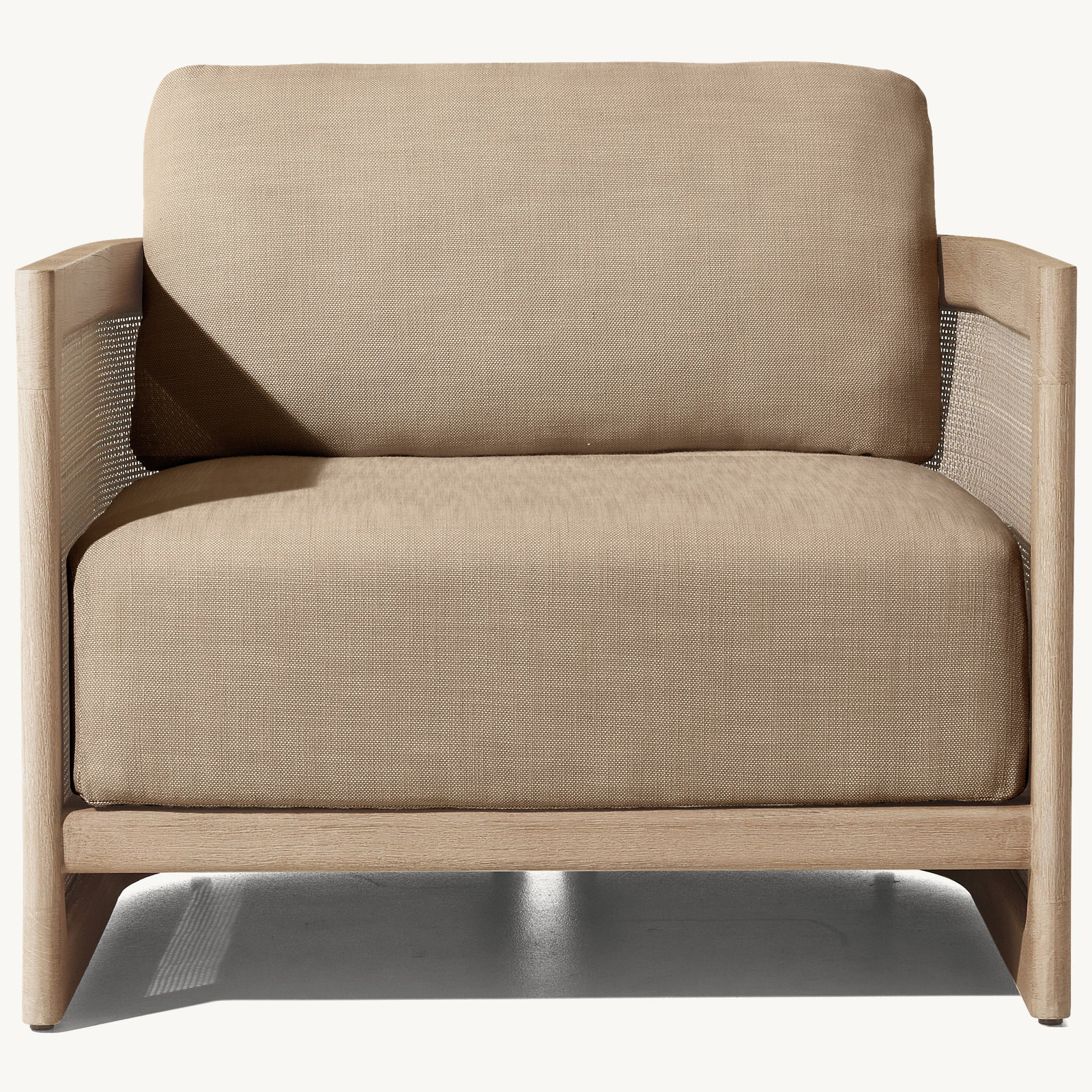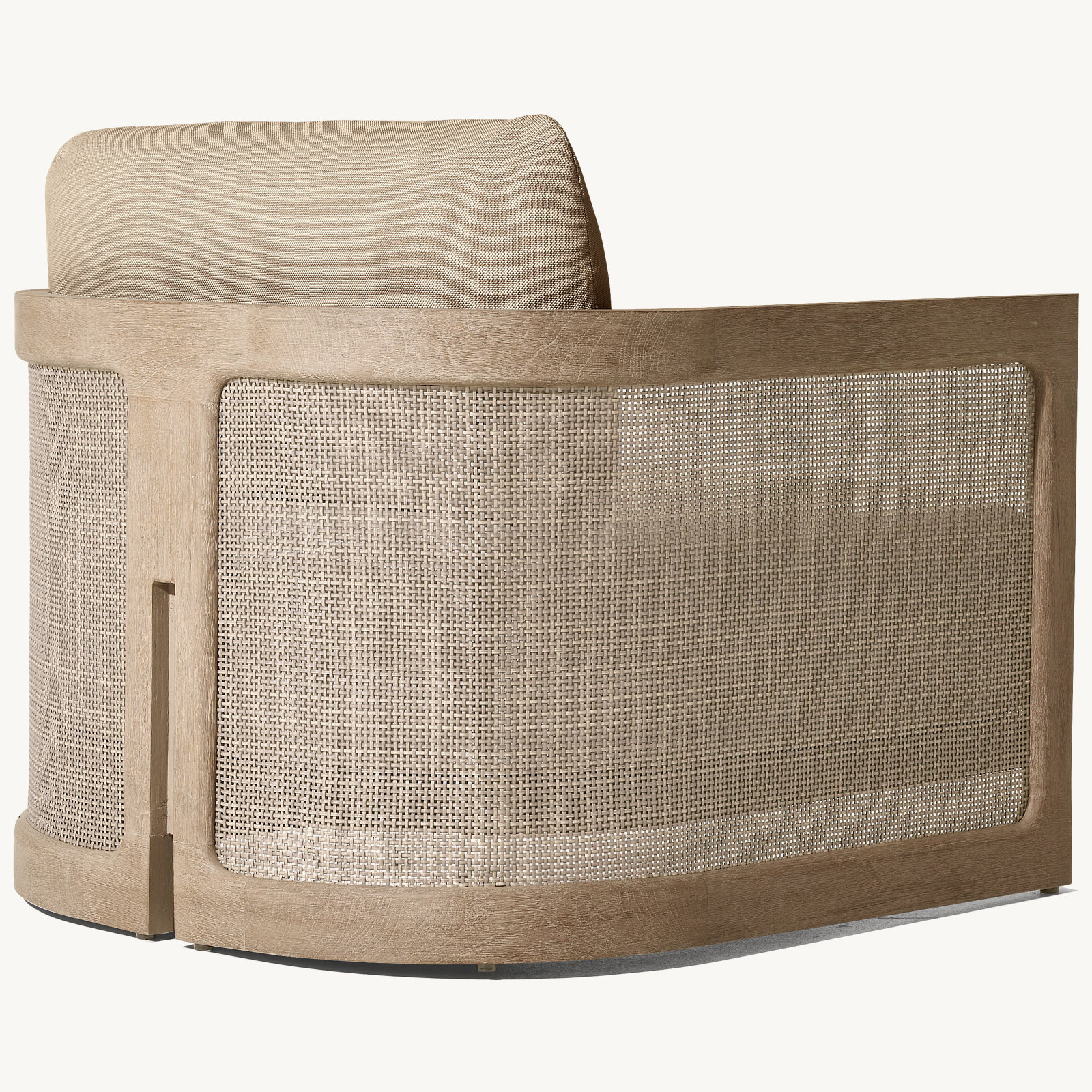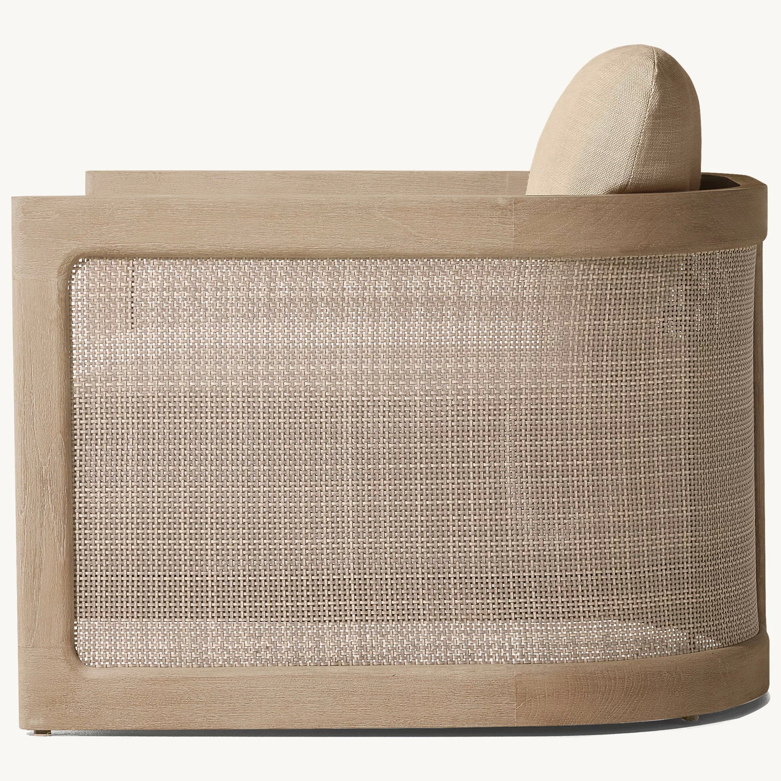Handcrafted by Indonesian artisans from sustainably harvested premium solid teak, the Trieste collection features all-weather cane panels and mortise-and-tenon joinery