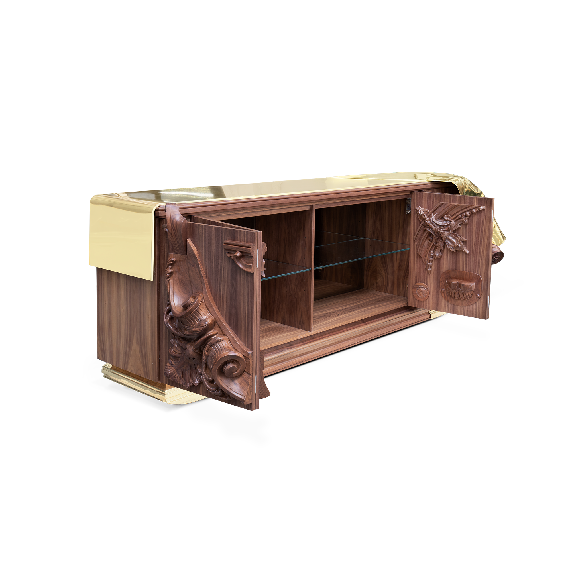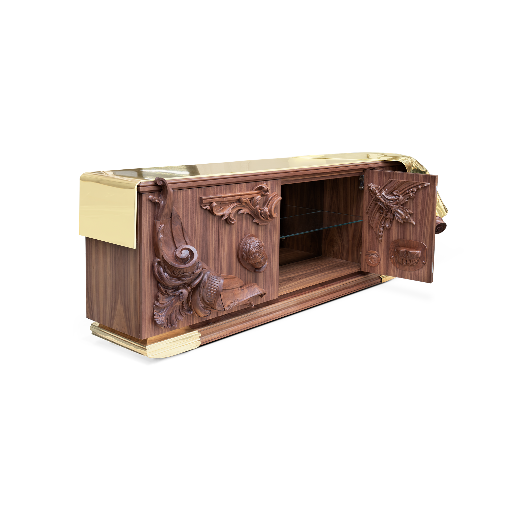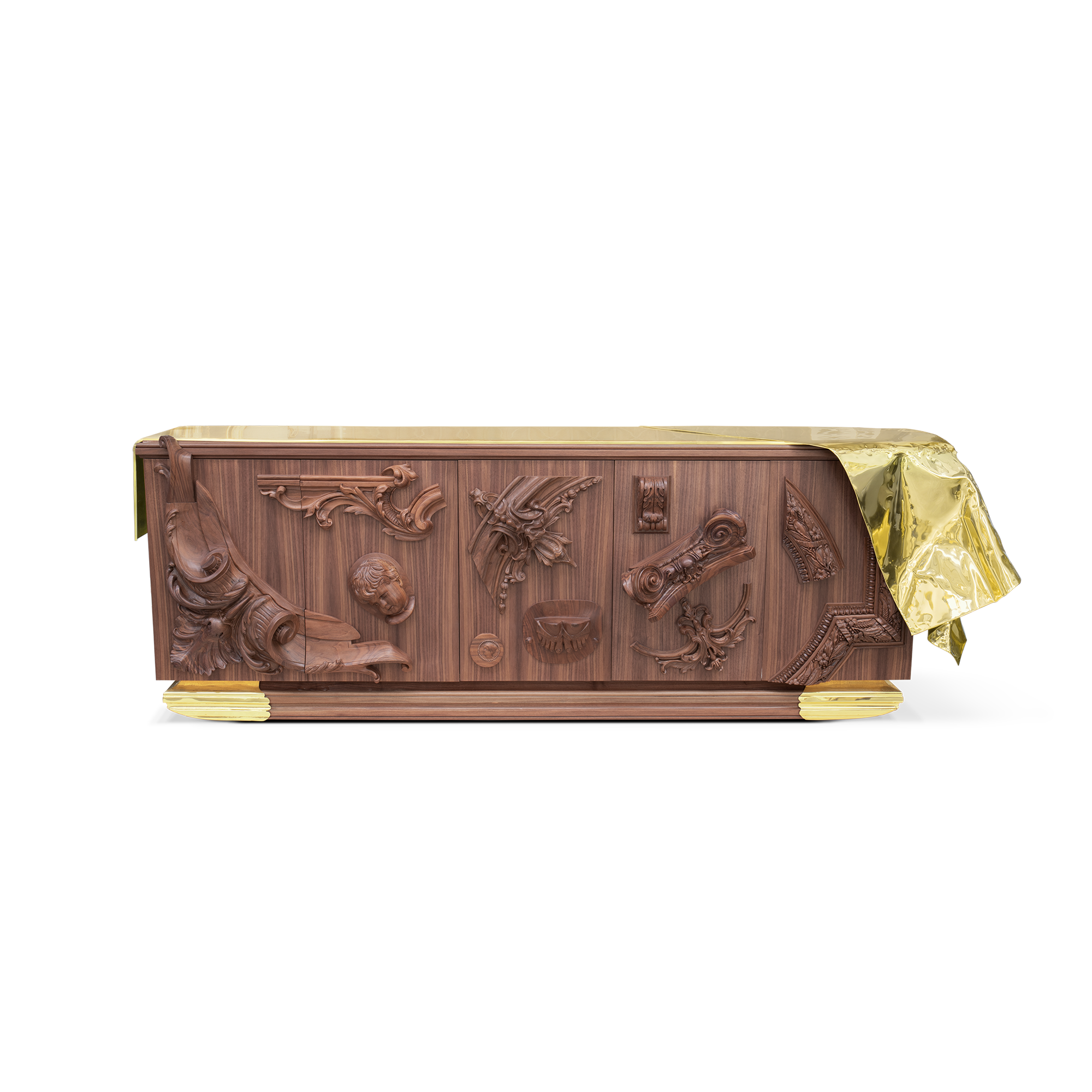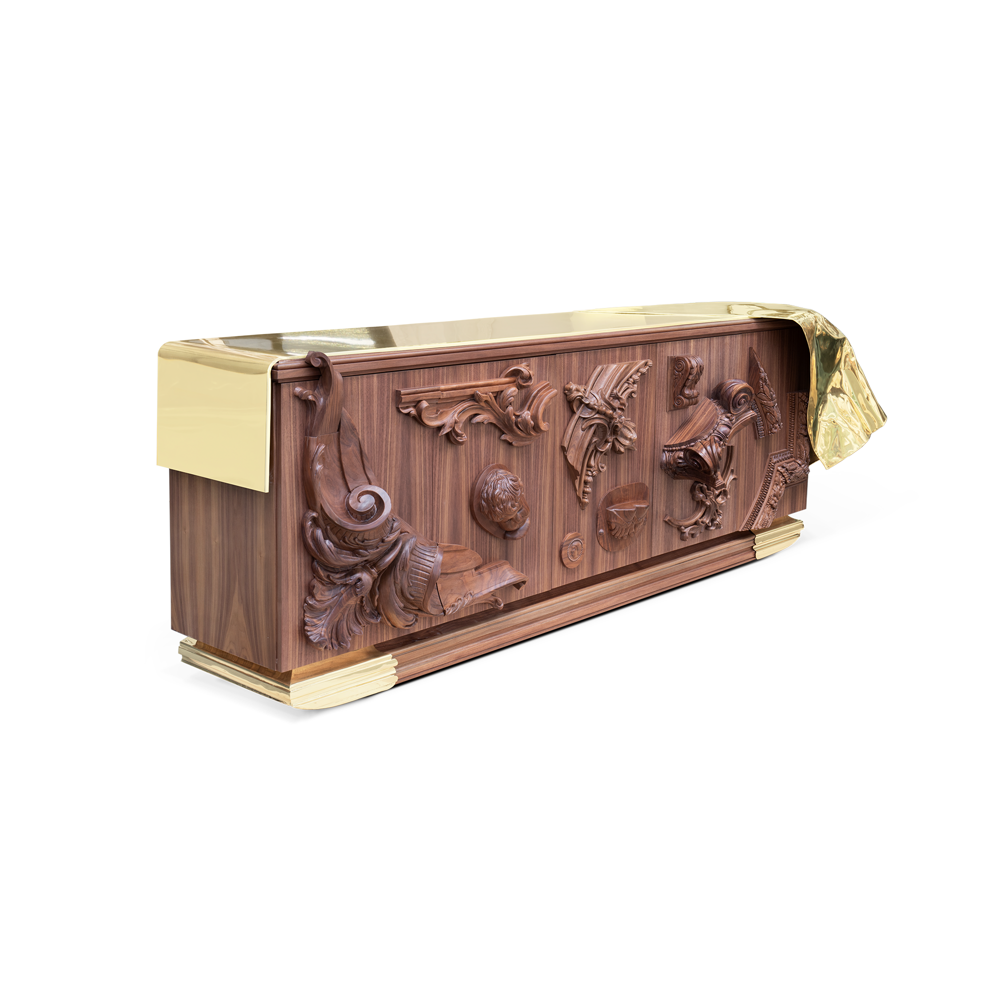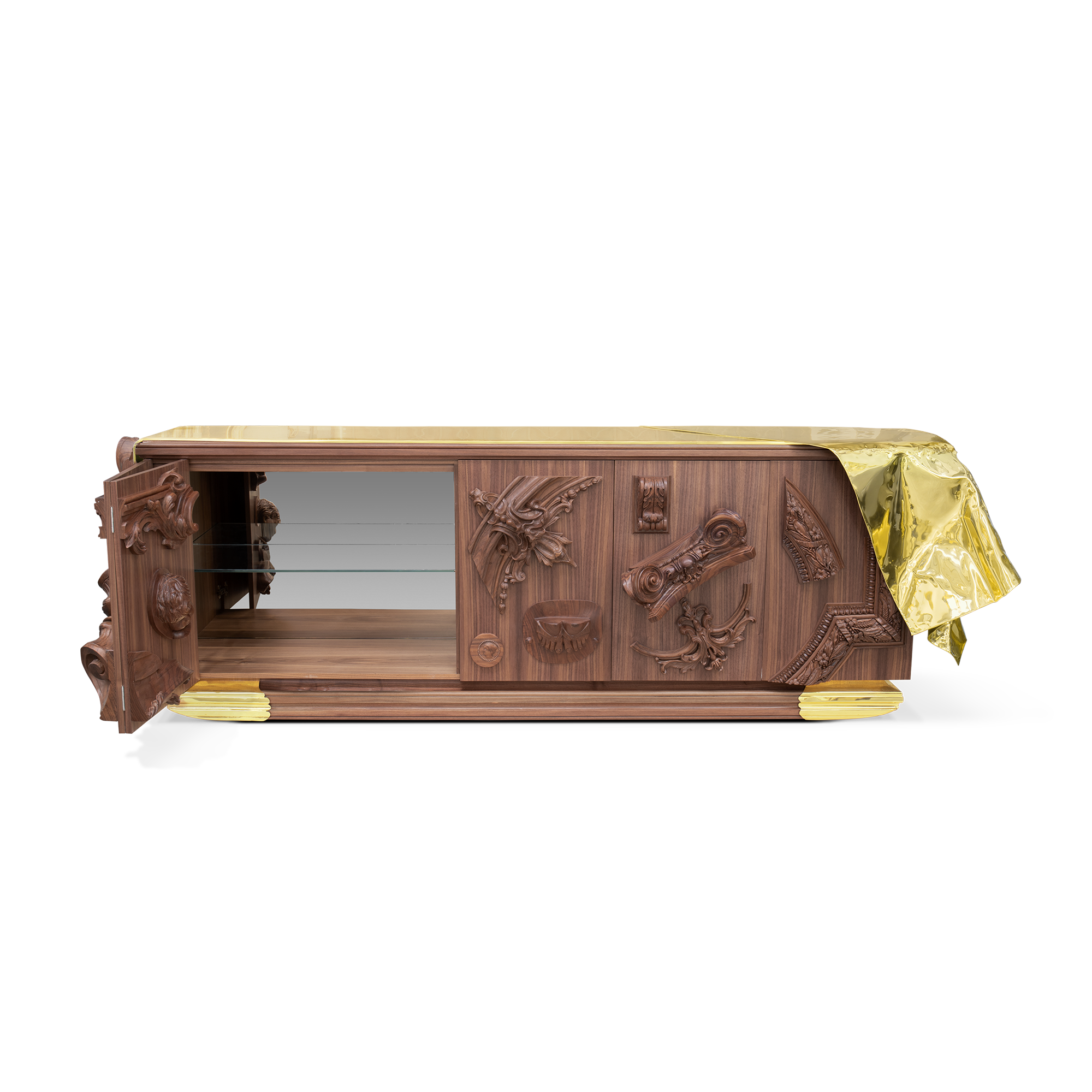 The statement sideboard was conceived to enrich any living space, a masterpiece that carries centuries of history and finest craftsmanship into a contemporary design. Inspired by the French Court’s greatness and splendour of the XVII century, it depicts the architectural and artistic landmarks of the age, alongside, it pays tribute to an era of great thinkers. Known for his ideals of a free and liberal society, Voltaire has become synonymous with the ‘Enlightenment’ due to the philosopher’s extraordinary wit, and his deist beliefs, not by faith, but rather by reason.